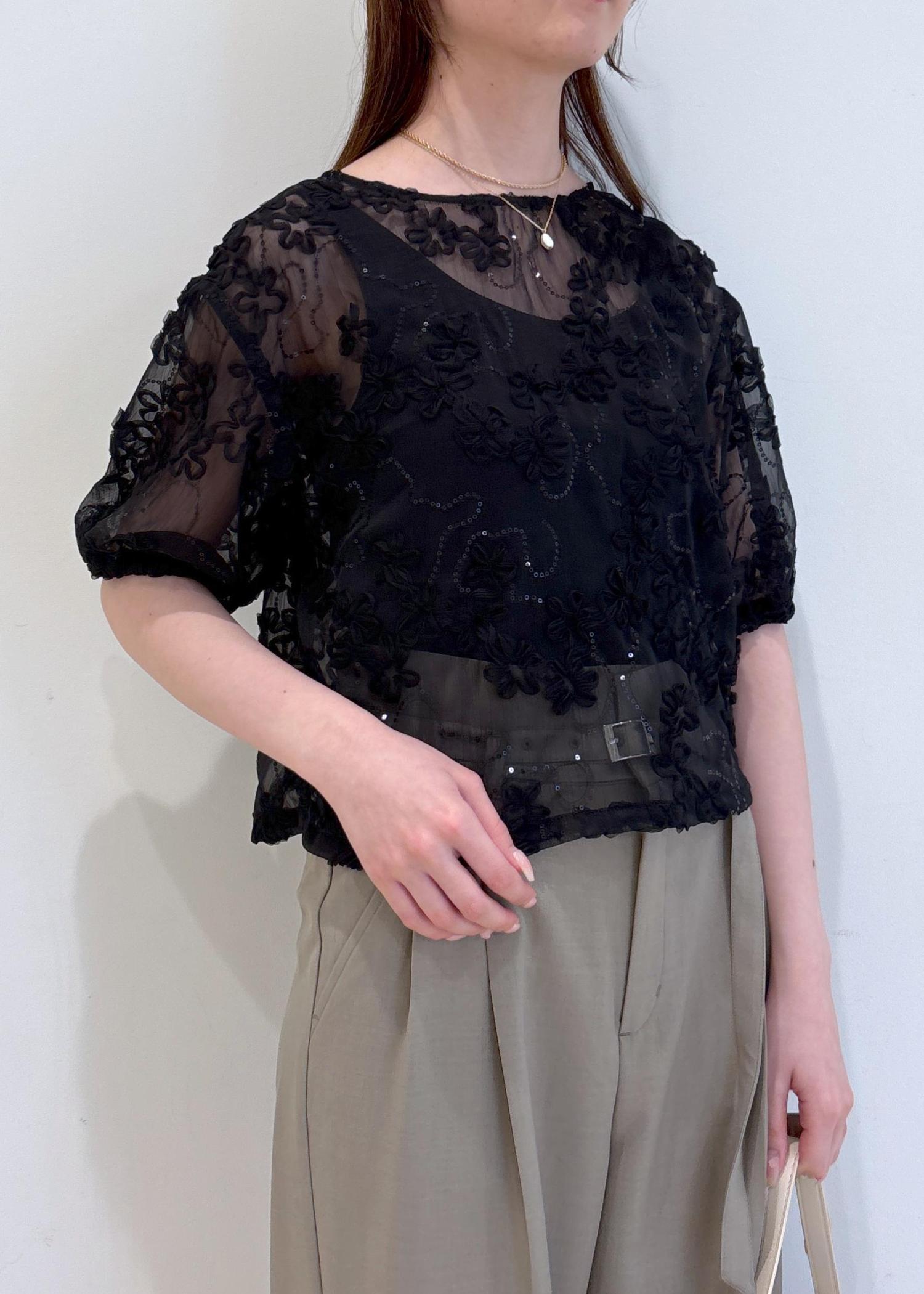 アウトレットVISコード刺繍シアープルオーバーブラック / F¥4,612レビューフラワーモチーフの刺繍とスパンコールで1枚で華やかなトップスです。