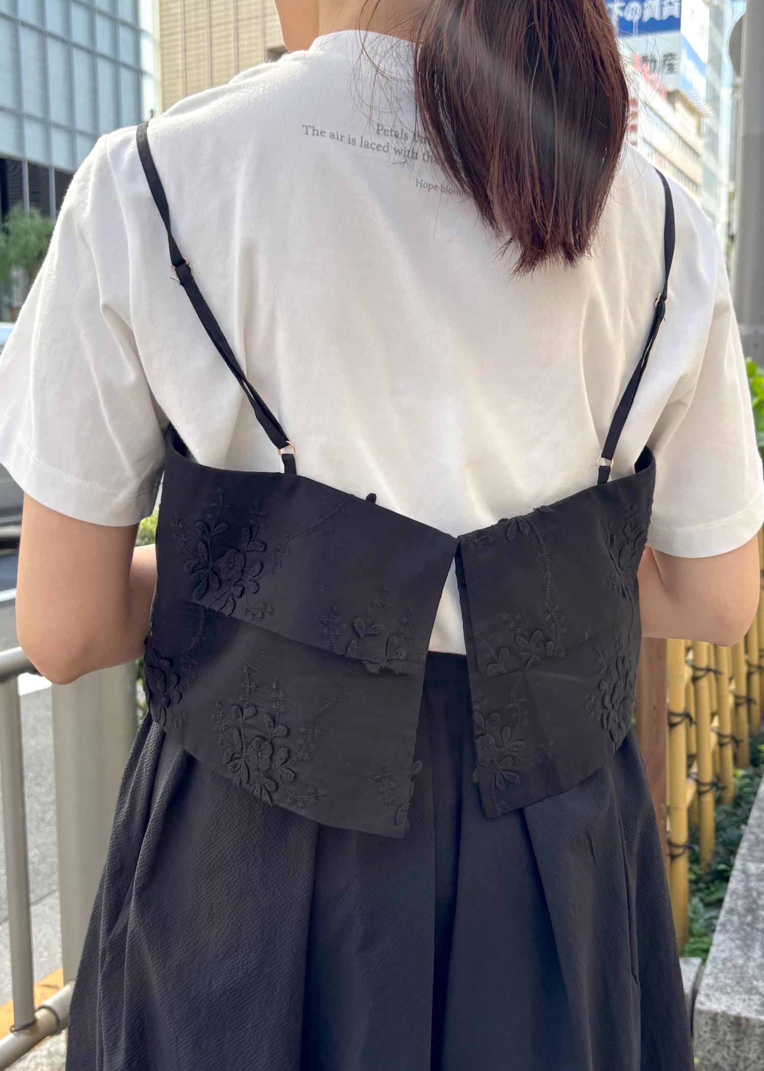 アウトレットVIS立体フラワービスチェブラック / F¥2,470レビューショート丈で、ロング丈のボトムスとの相性が抜群のビスチェ。