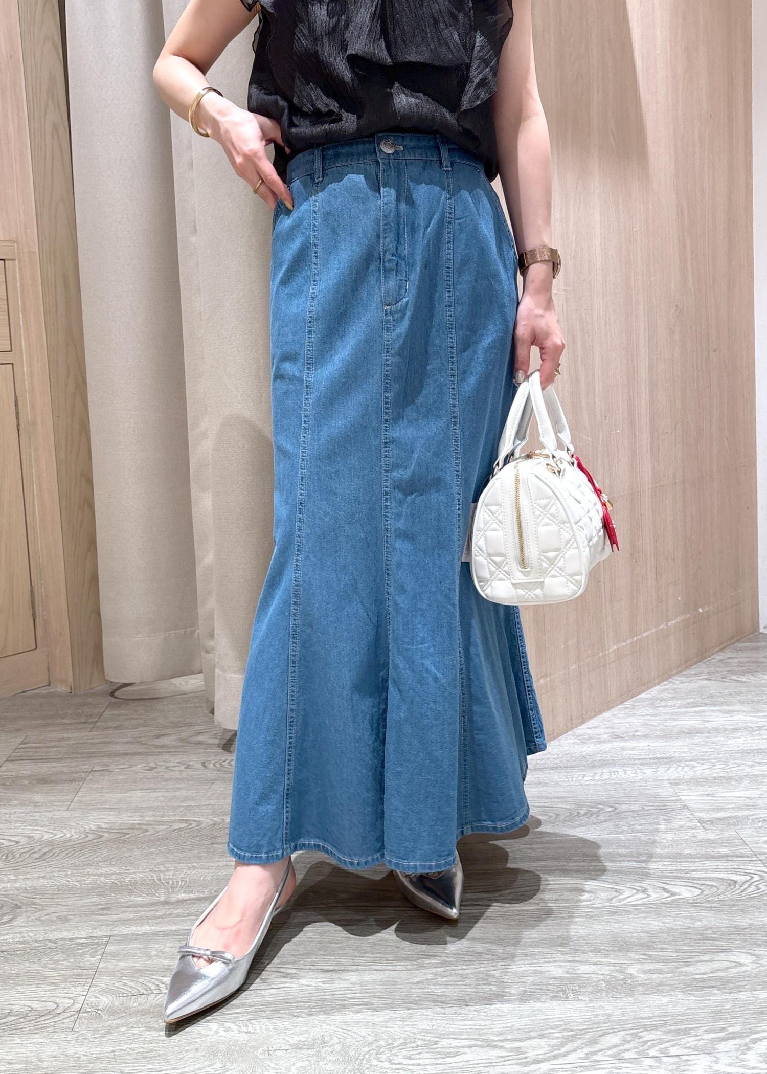 アウトレットVISライトデニムマーメイドスカートブルー / S¥3,164レビュー普段通りのサイズ選びでピッタリでした。