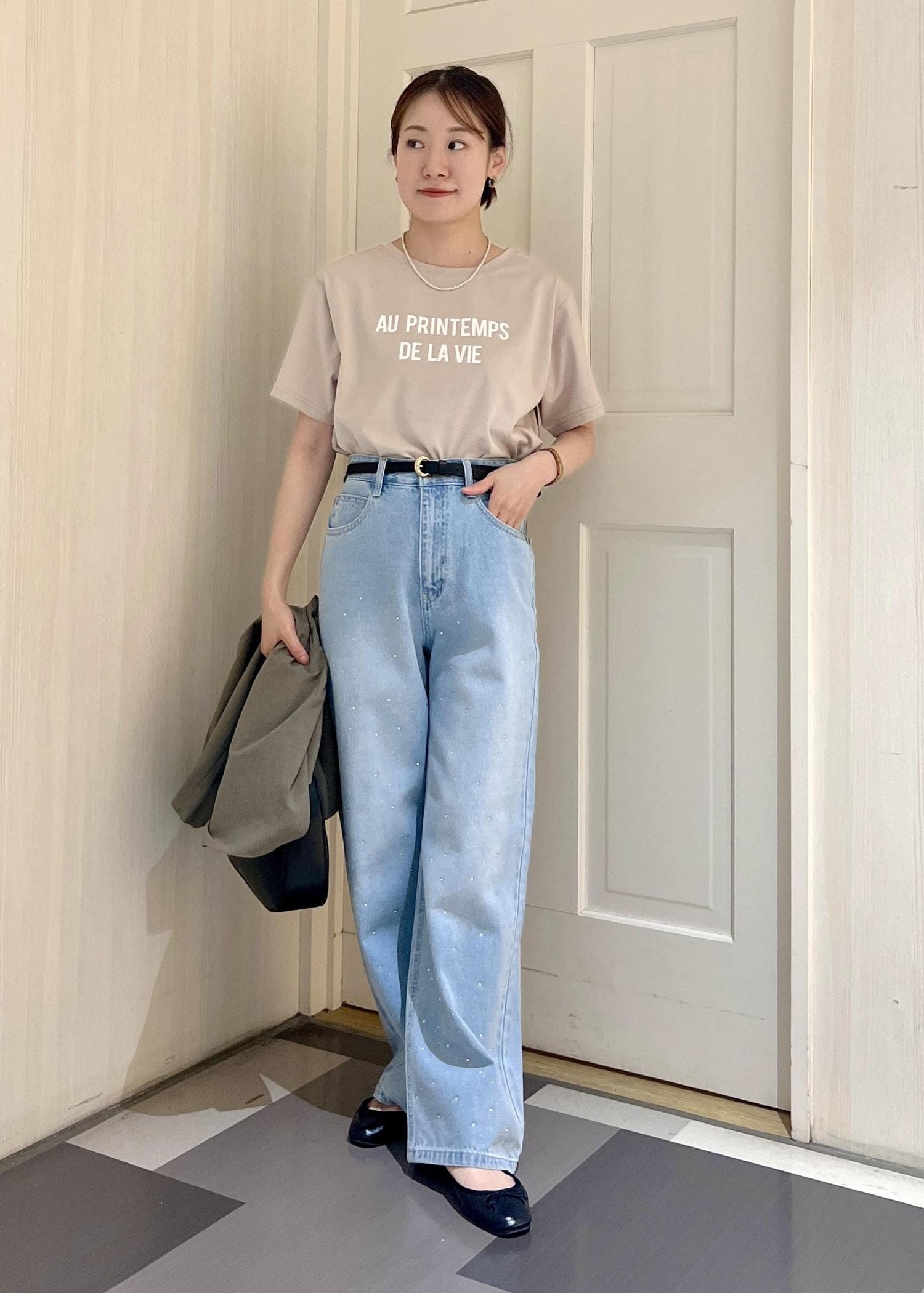 柔らかいデニム素材で、細かいビジューが女性らしい1本です。 -