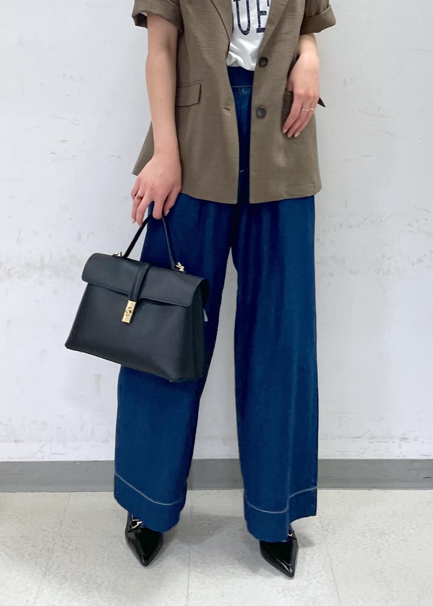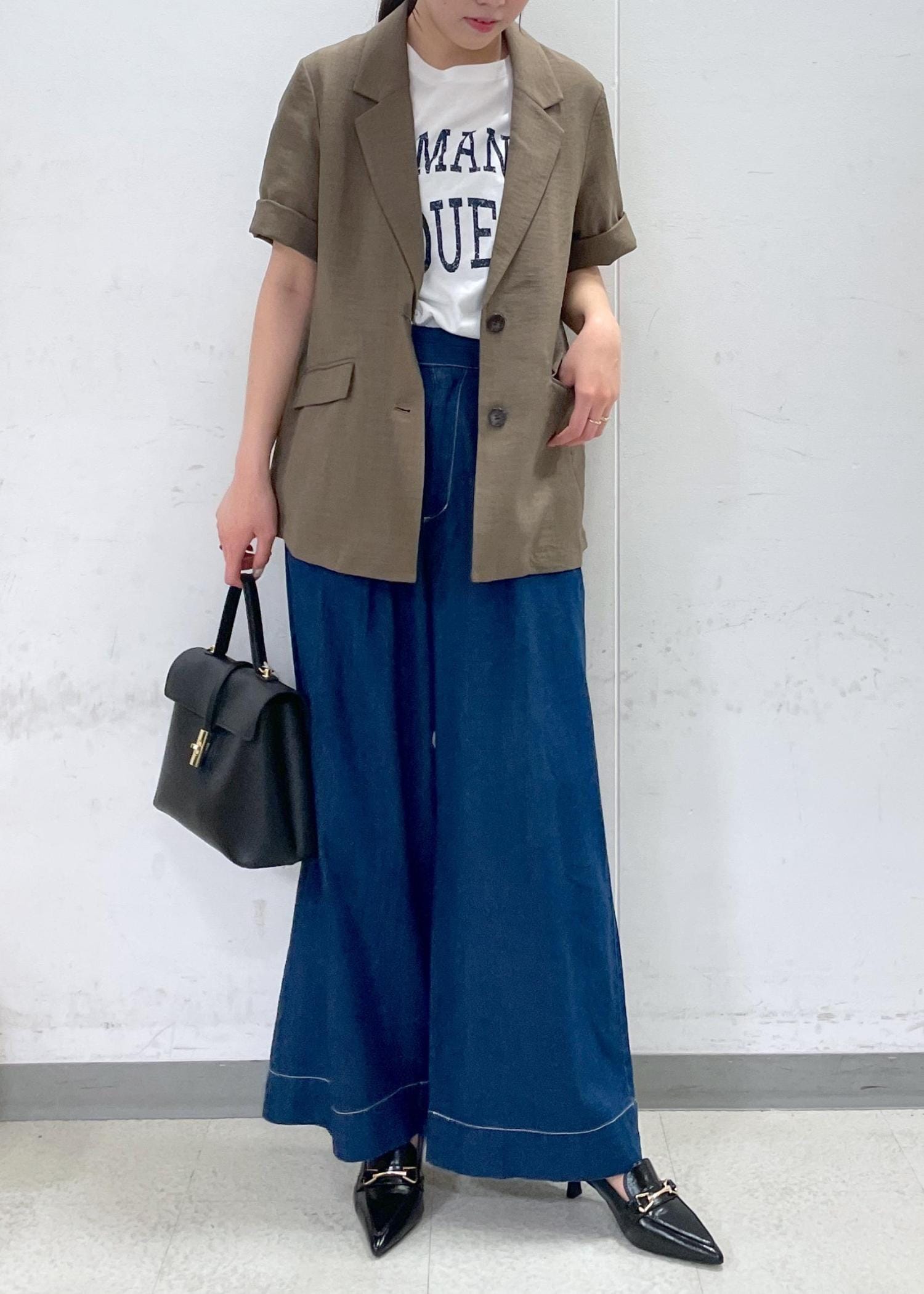 少しなで肩の私は肩が落ち気味ですが、裾を折って着ると大丈夫でした!!