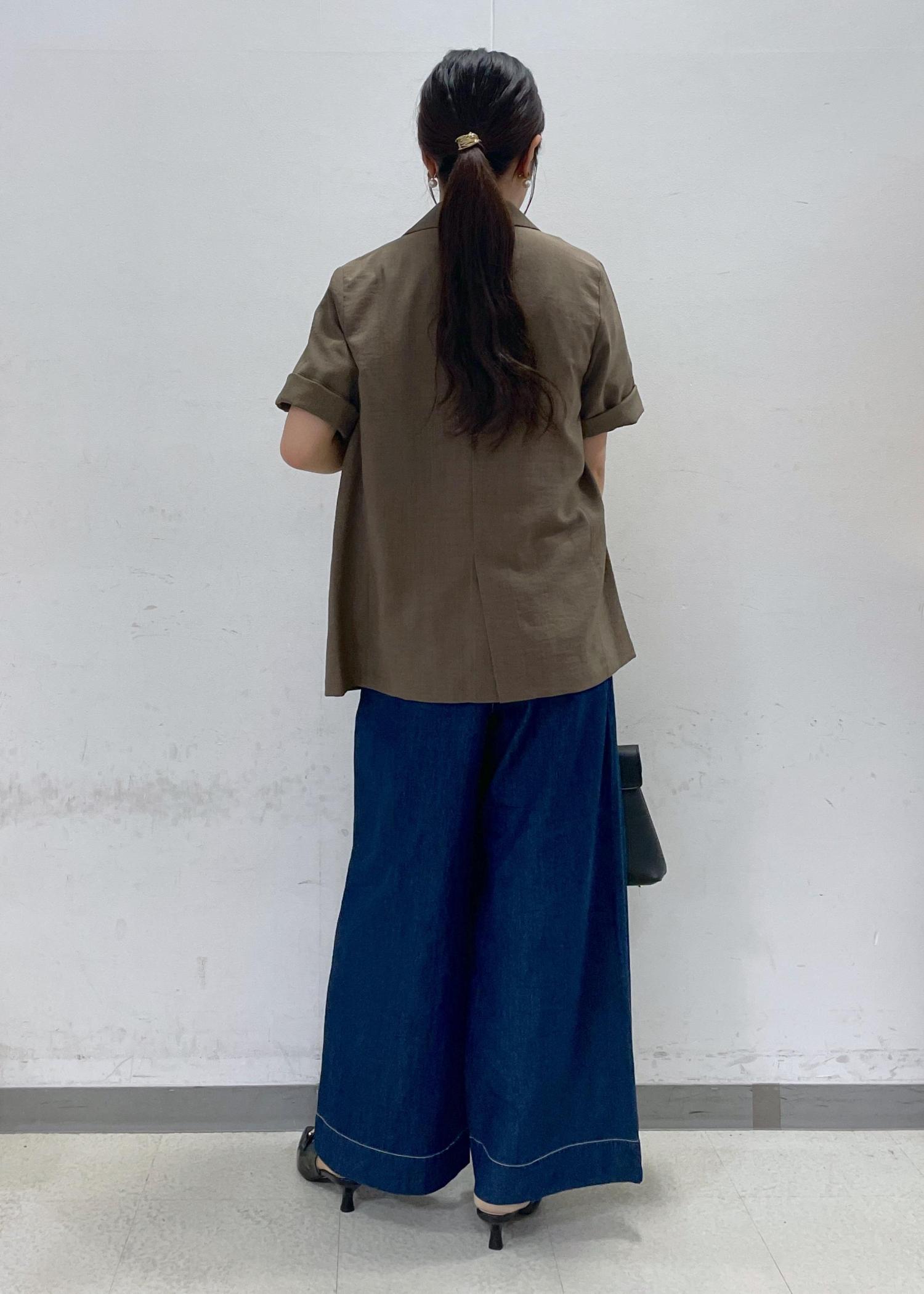 VIS【美easy】ハーフスリーブジャケット/セットアップ対応・洗えるカーキ系 / M¥7,909レビュー167cmでMサイズ着用。