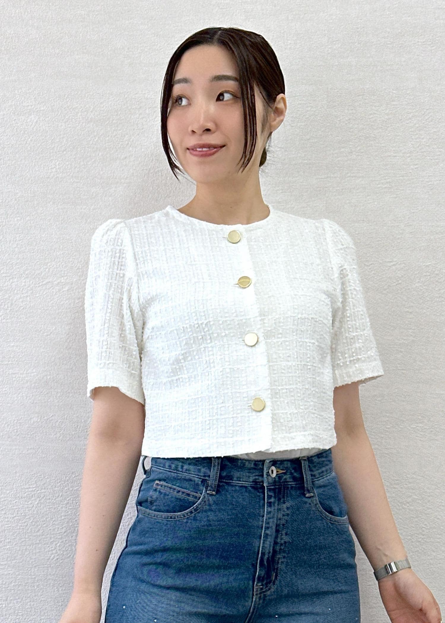 トレンドの短丈ジャケットでスタイルアップが叶います。