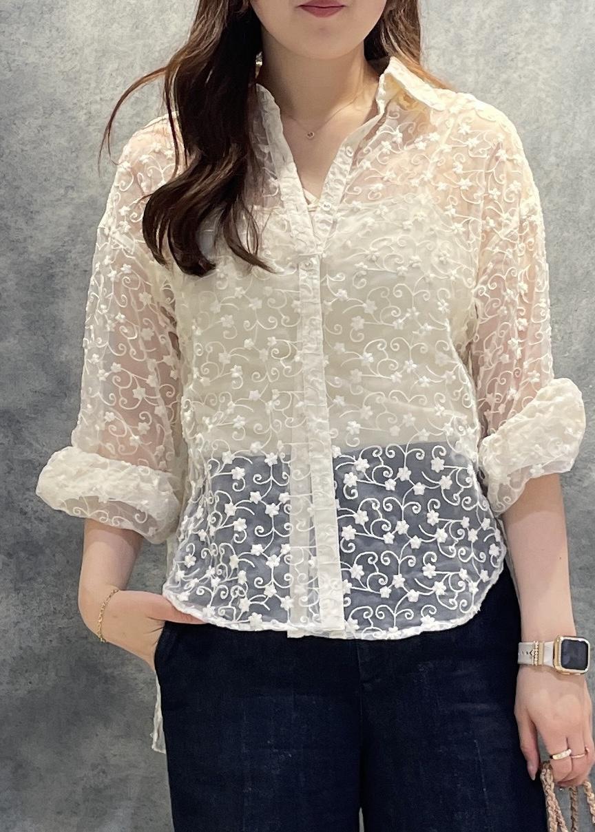アウトレットVIS【洗える】アソートシアーシャツ(フラワー刺繍&無地)オフホワイト / F¥2,745レビューサラッとした素材で