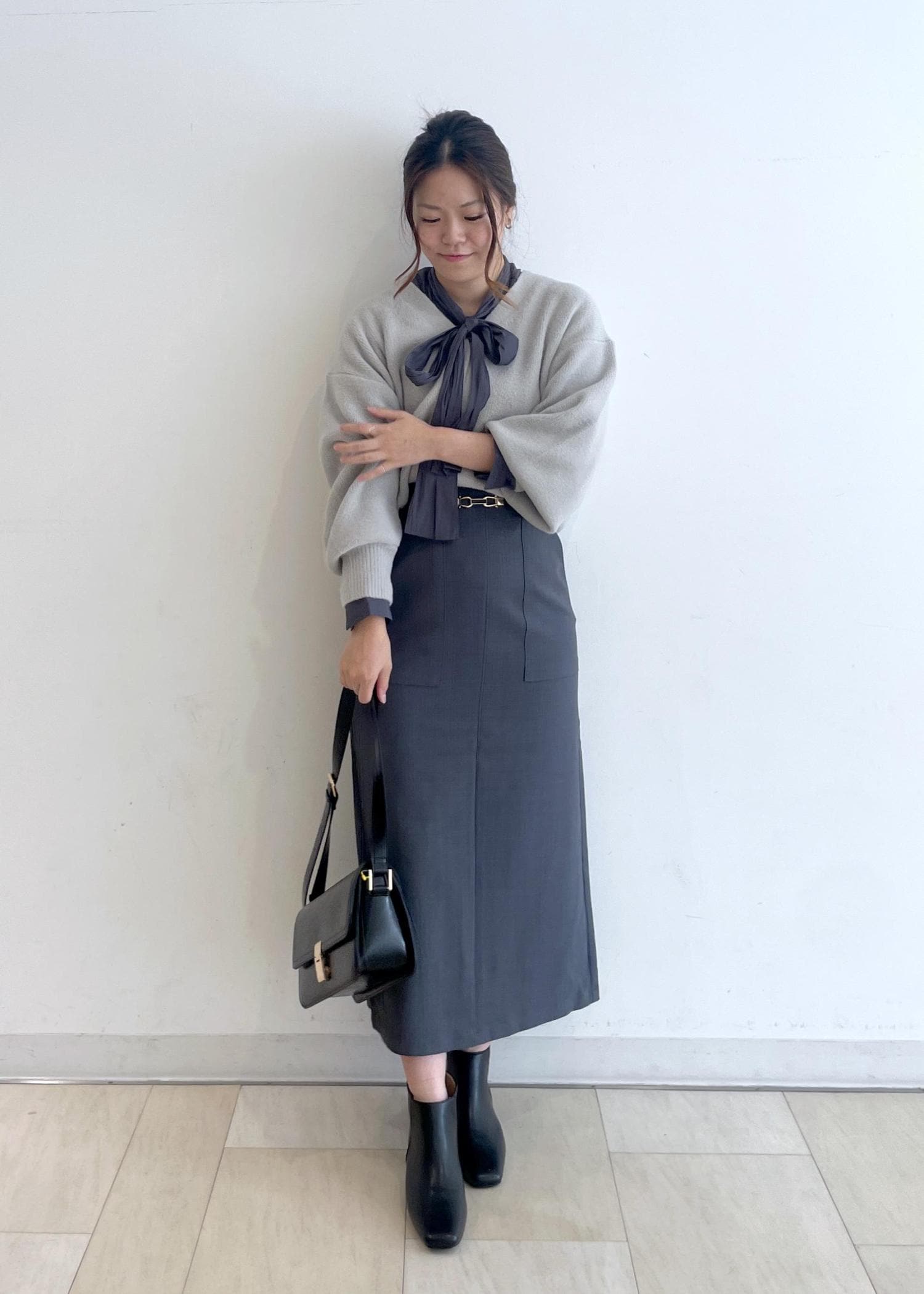 絞らず着るとカジュアル感が抑えられるのでオフィスカジュアルにもオススメです◎ -