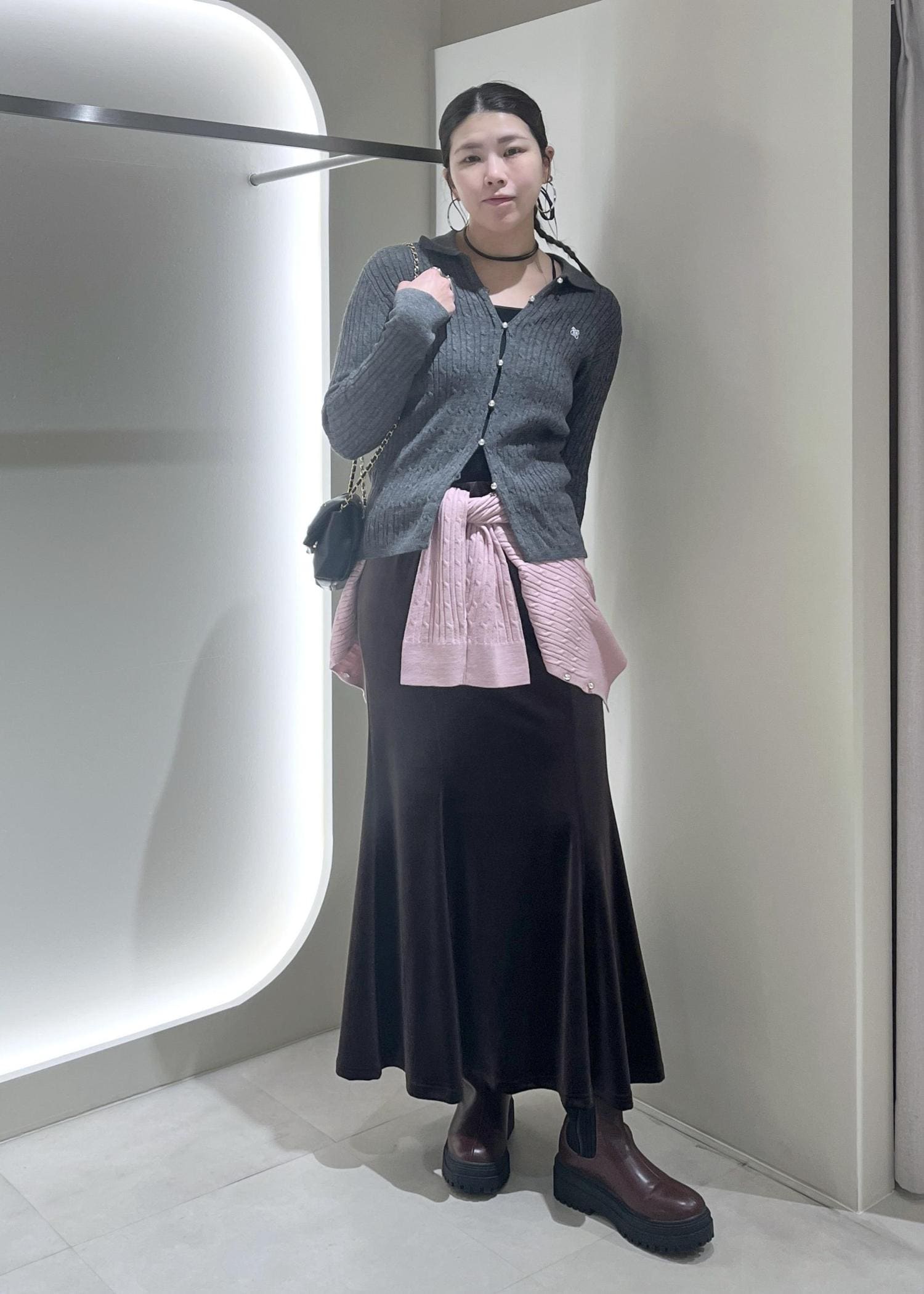 さらっとした素材感とマーメードシルエットで骨ストでも履きやすい!!171cm/ Lサイズでふくらはぎが隠れるサイズ感です。 -