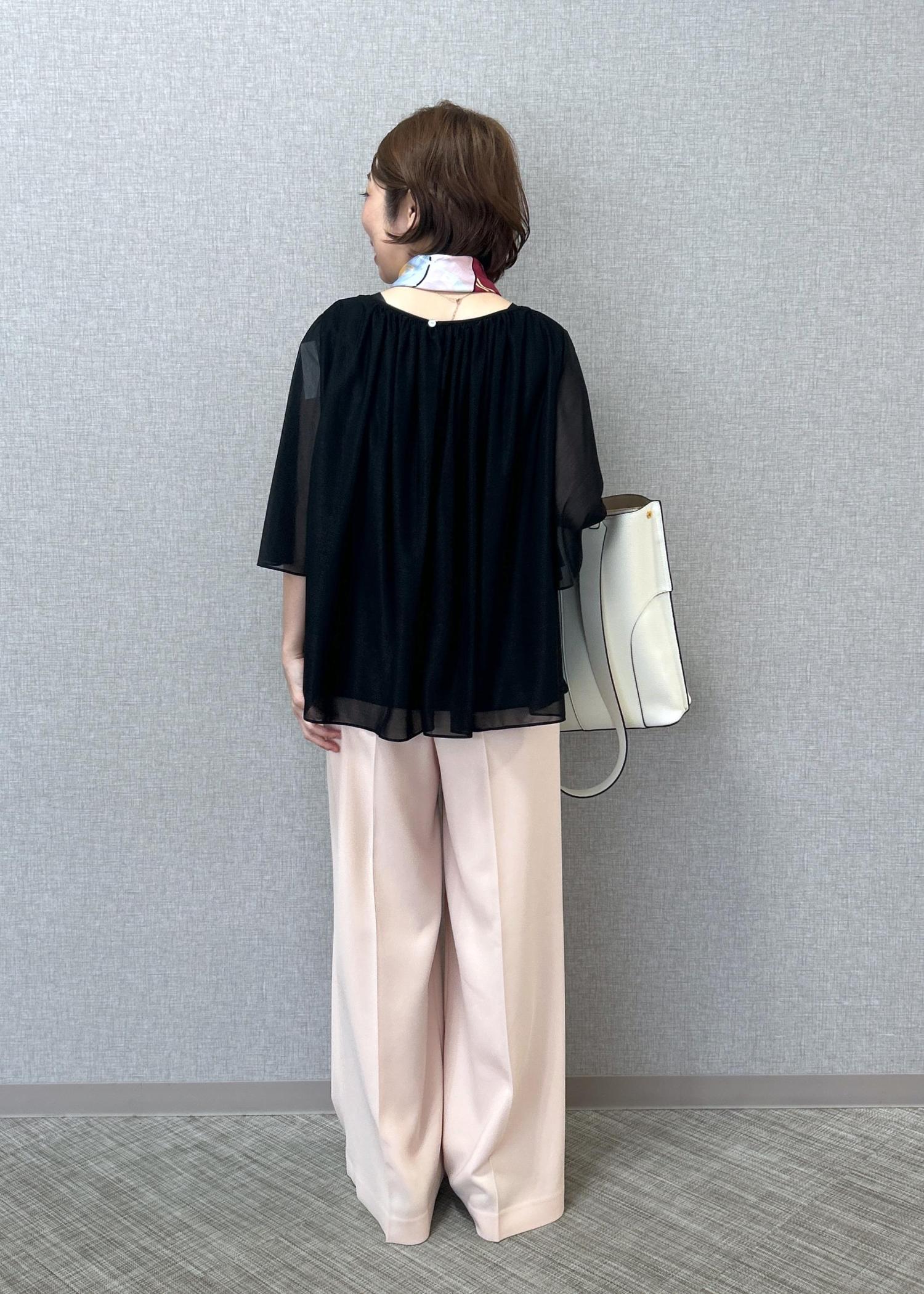 アウトレットROPÉ【洗える】ブライトネスヤーンギャザーブラウス/セットアップ対応ブラック / F¥12,320レビュー着丈はヒップにかかるくらいの長さです。