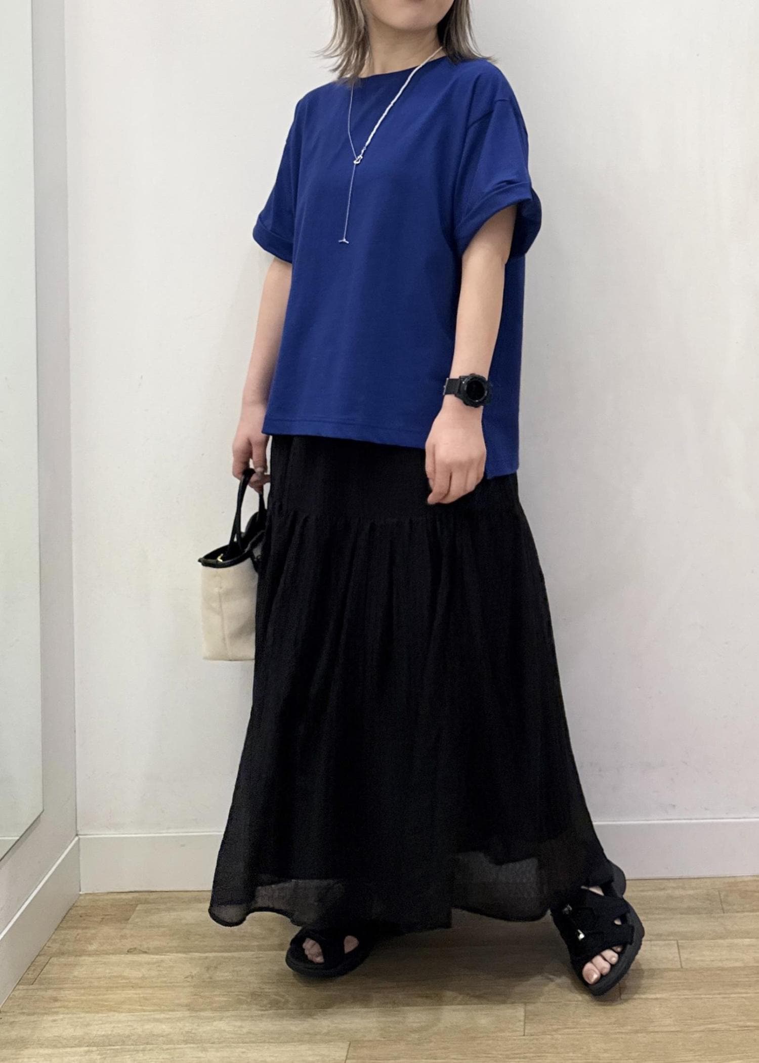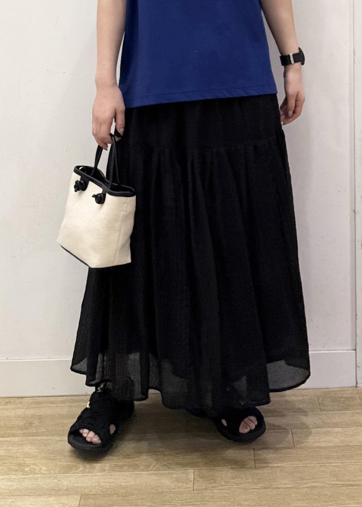 ふんわりとしたシルエットで、動くたびにフワッと揺れるシアーの軽い素材感のスカートです。 -