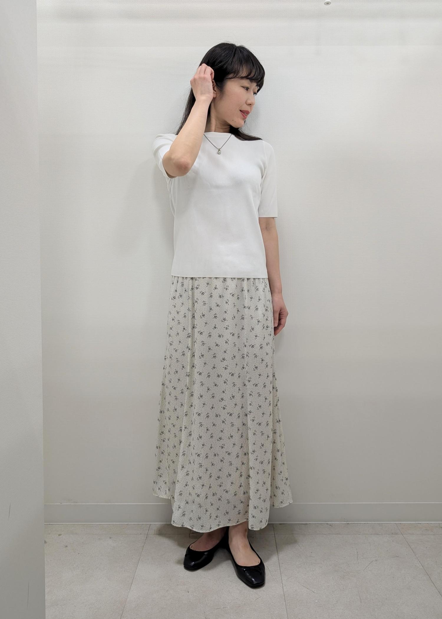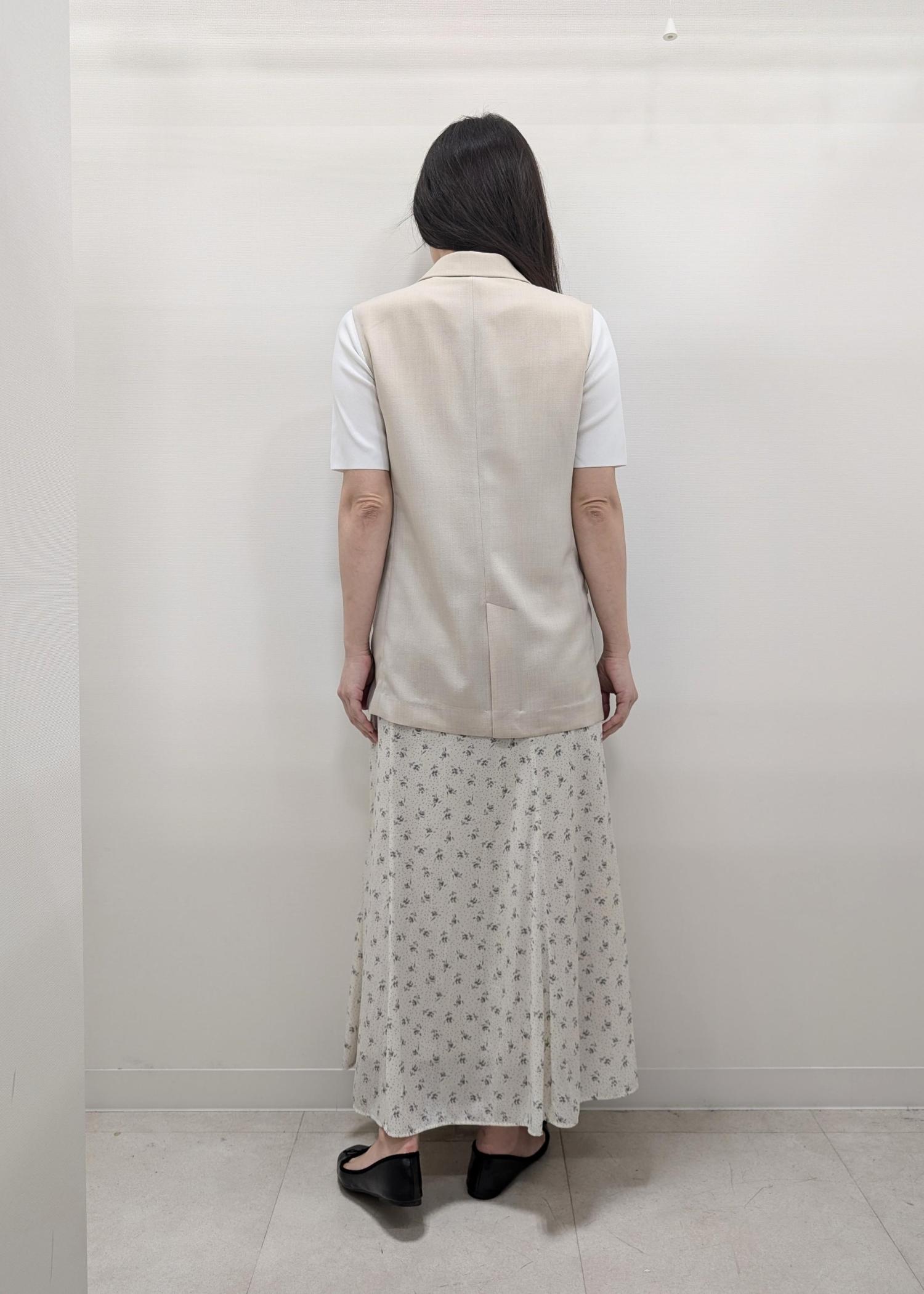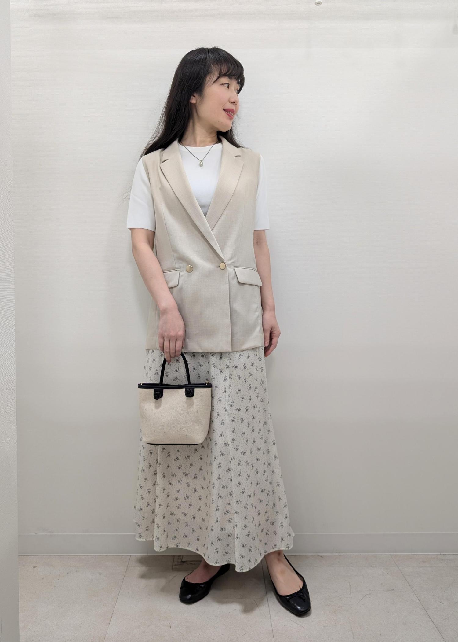 トレンドのジレに合わせてスカートもスッキリしたシルエットのものを選びました。