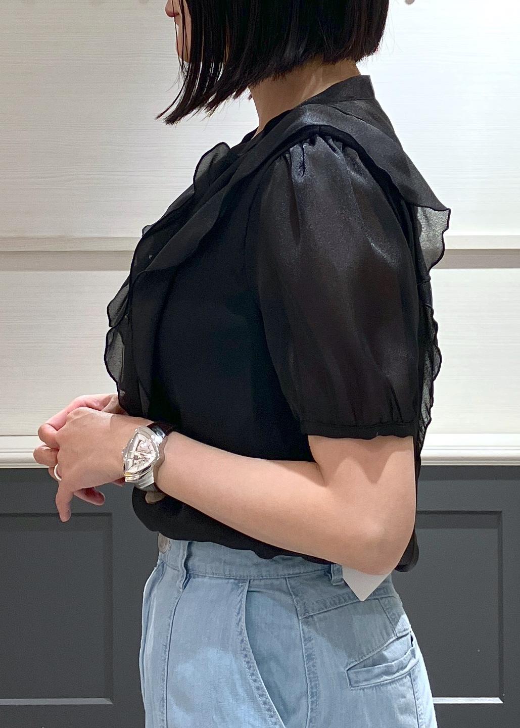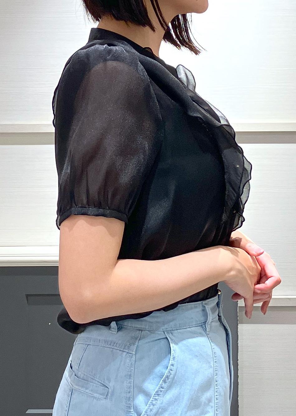 アウトレットVIS【洗える】シアーラッフルフリル半袖ブラウスブラック / F¥4,391レビュー骨格ストレートで二の腕が気になる体型ですが、二の腕カバーしっかりしてくれてパフスリーブも腕をほっそり見せてくれました♪
