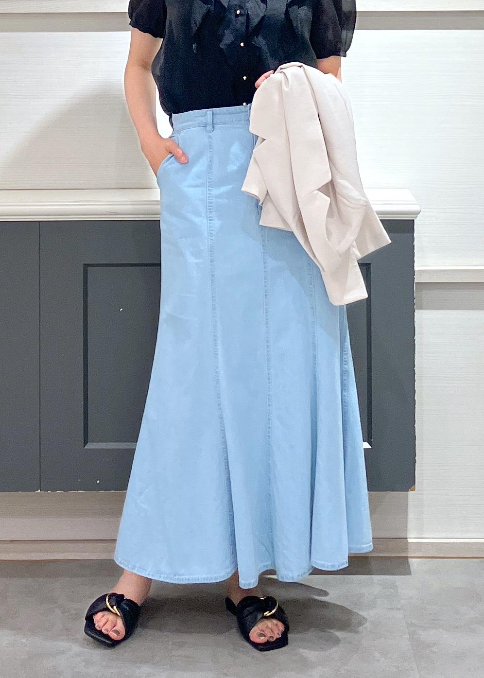 アウトレットVISライトデニムマーメイドスカートサックス / M¥3,164レビュー身長168センチで足首にかかる着丈です!