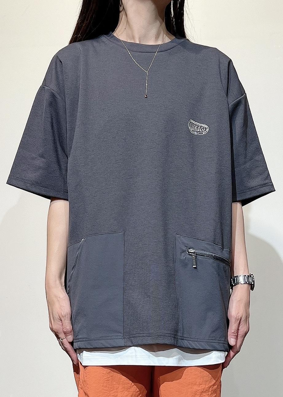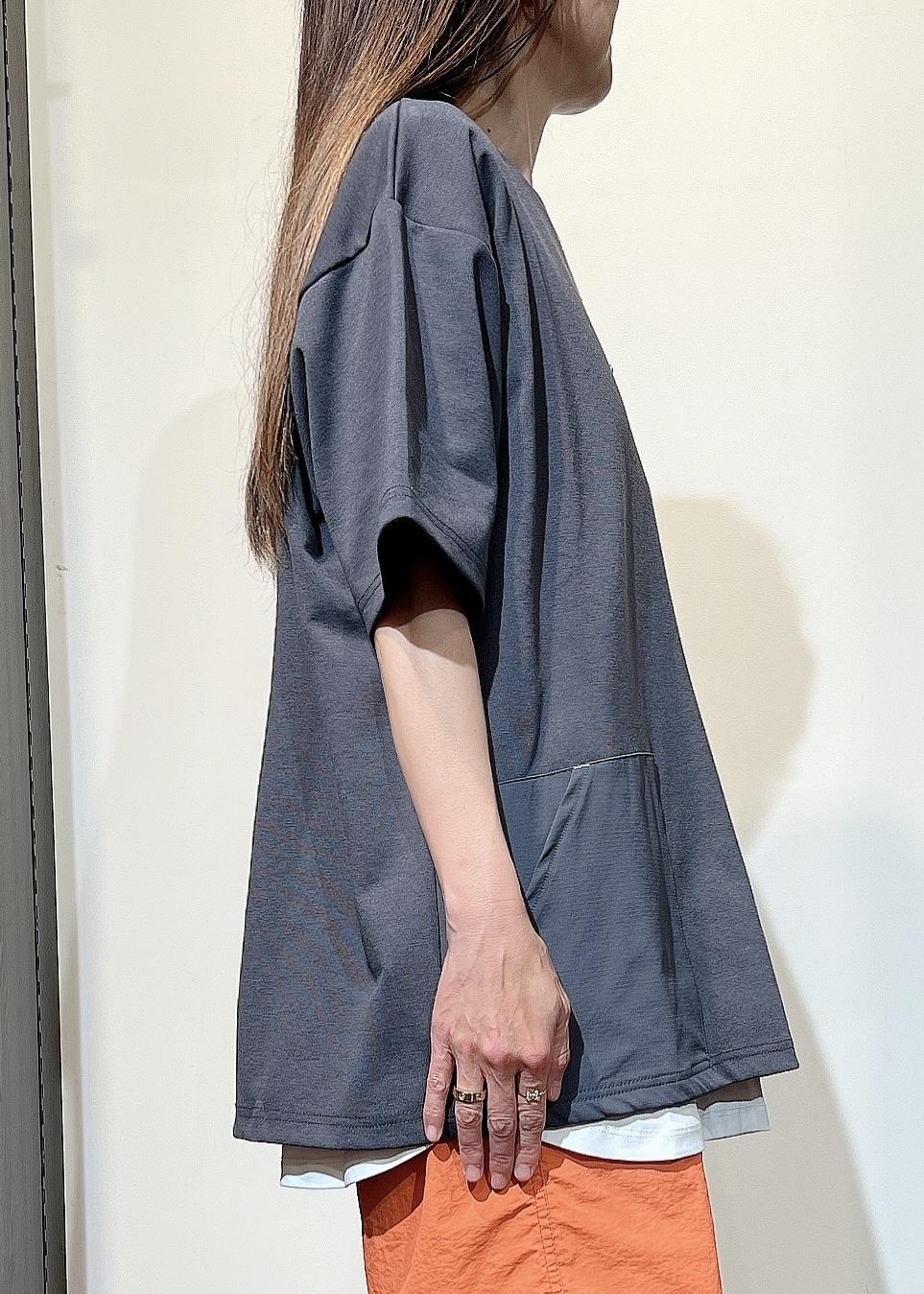 ポケットが左右アシンメトリーデザインになっているのがポイントのTシャツです。