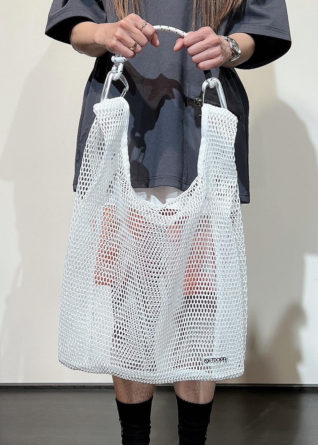 j.n.r.d【 OUTDOOR / アウトドアプロダクツ】j.n.r.d / メッシュショッパーバッグホワイト / F¥5,500レビュー張り感もあり、荷物をたくさん入れても丈夫な生地です。
