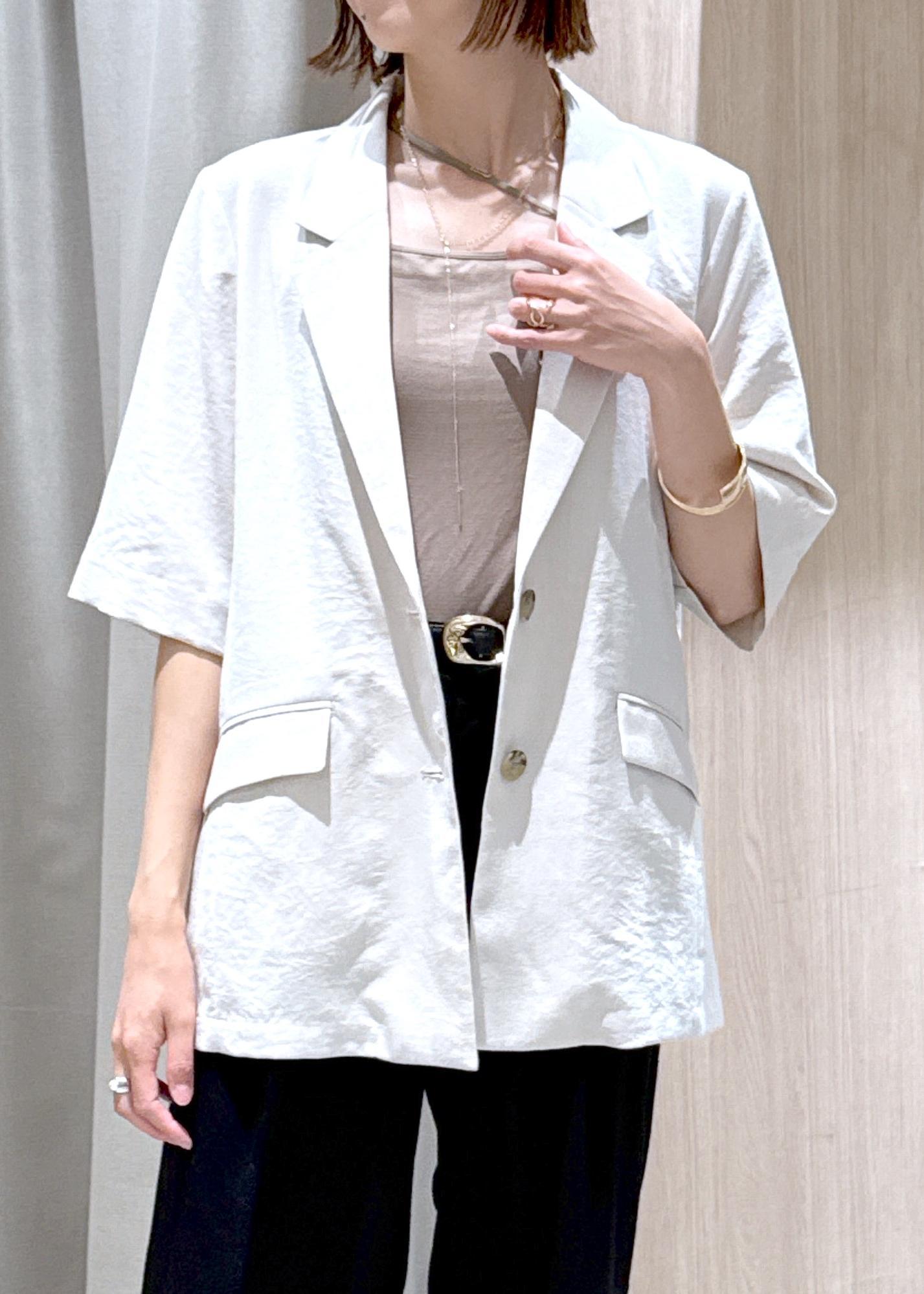 袖はゆったりした5部袖なのでラフさがあり、ON/OFF羽織りやすいデザインです。