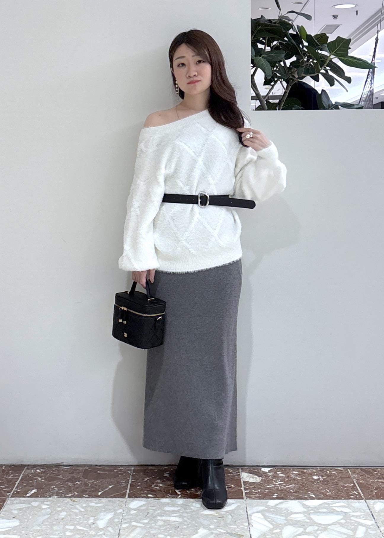 ハイウエストのバックレースアップがポイントで、ウエストが自由に調整できて、薄手のニットやTシャツはインできます◎ -