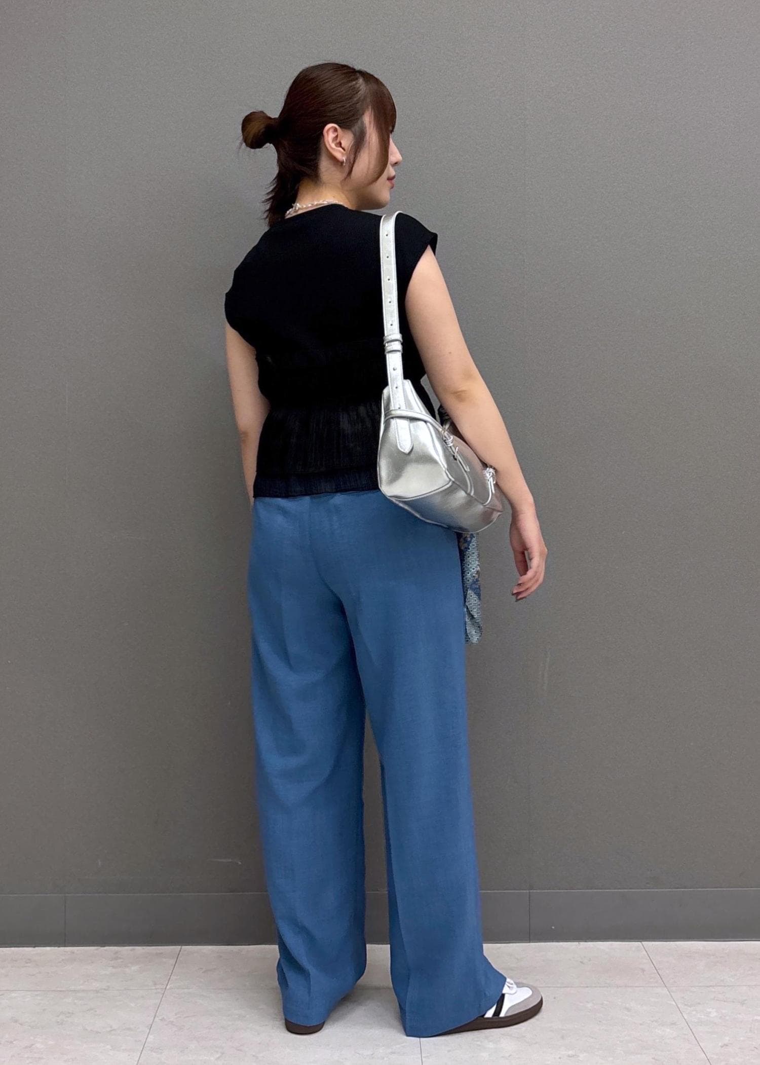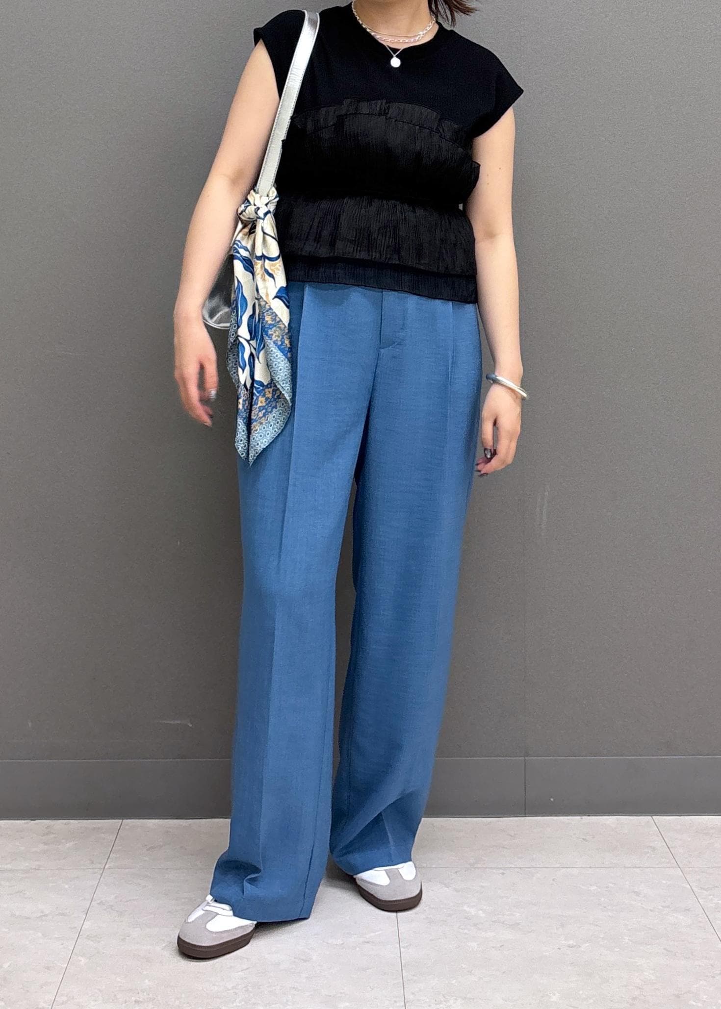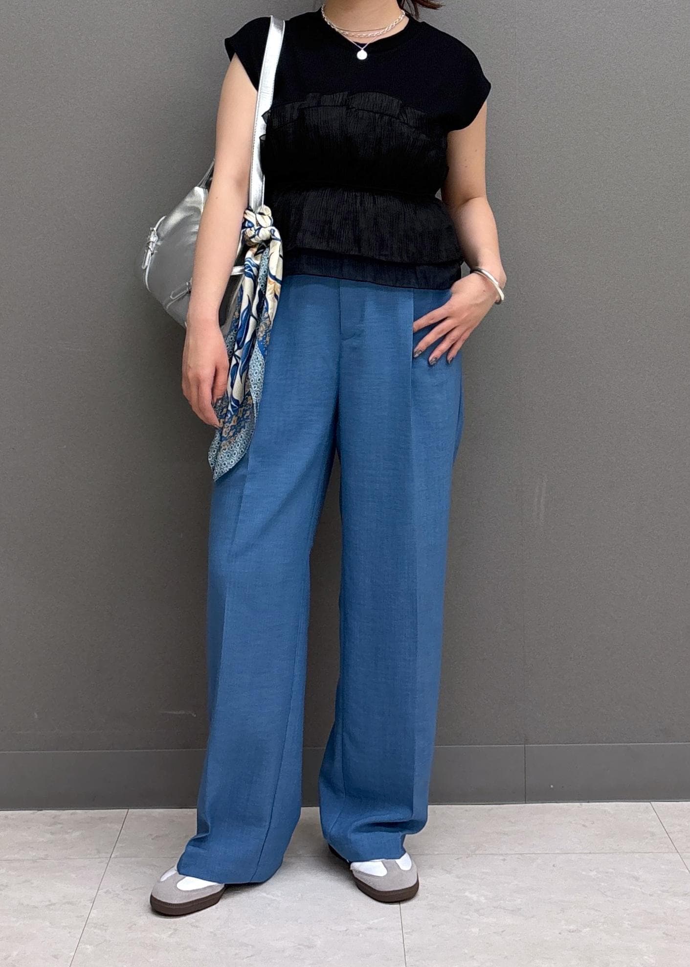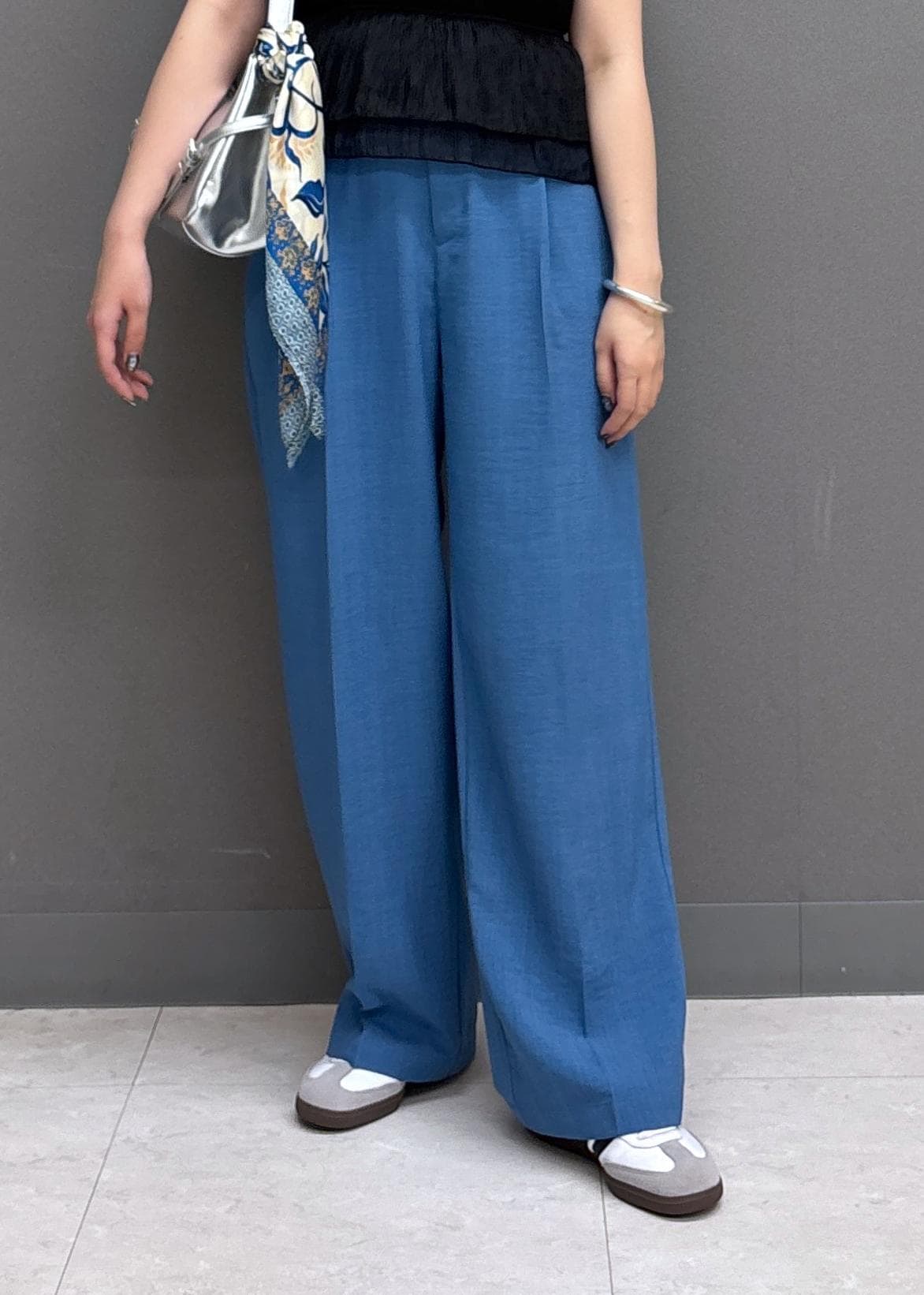 VIS【美easy】ワンタックワイドスラックスパンツ/洗えるブルー / M¥5,489レビュー160㎝でMサイズ着用だと足首が隠れる着丈です。太ももまわりもゆったりしていて、脚のラインを拾いにくいです。リネンライクの生地でさらっとした肌触りなので春夏通して使えます!