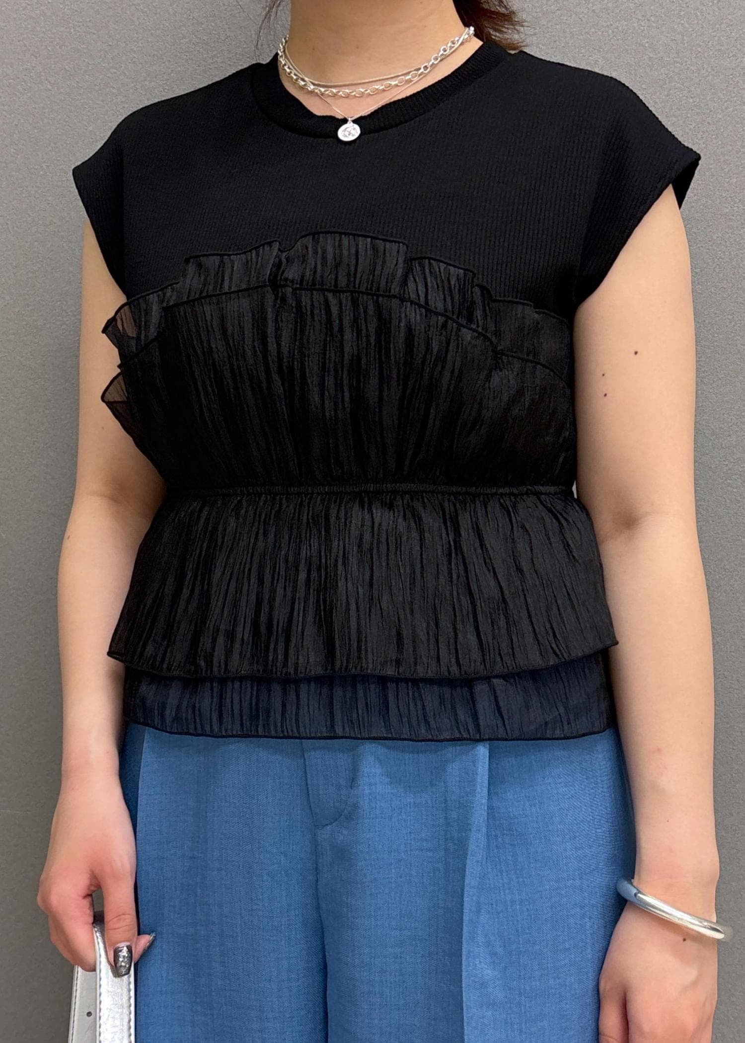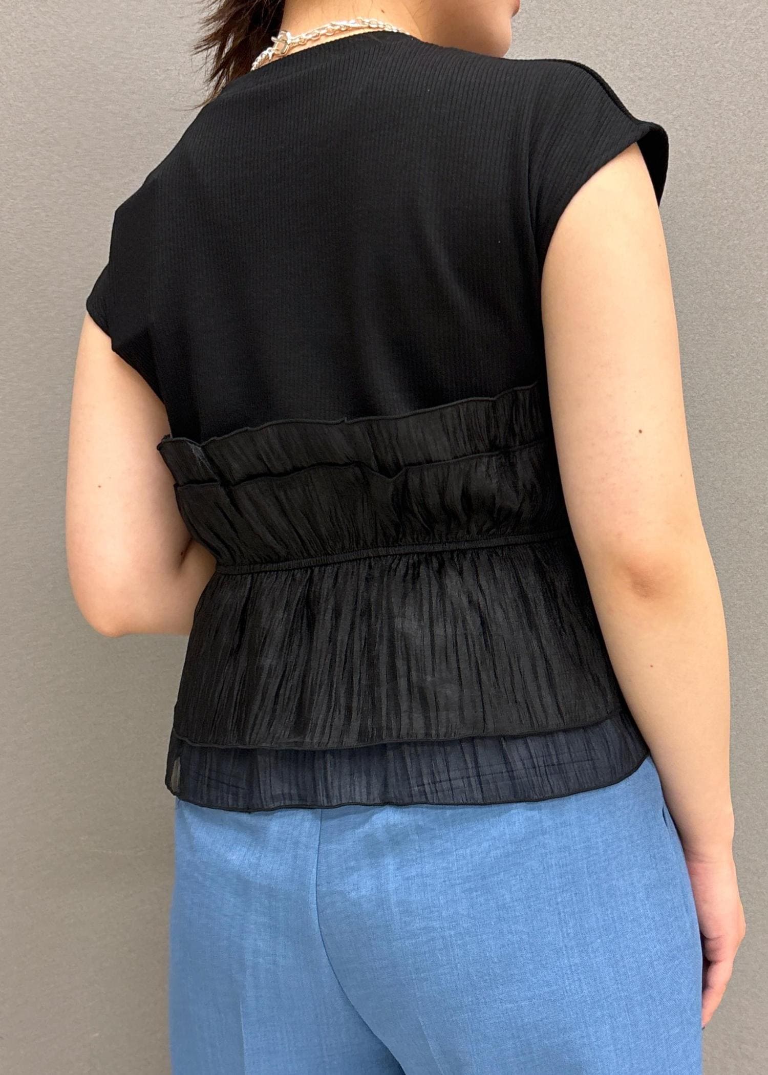 VIS旬なレイヤードスタイルが叶う!ビスチェドッキングフレンチスリーブプルオーバー【洗える】ブラック系 / F¥5,489レビューさらっとした肌触りで着心地抜群◎伸縮性があるので締めつけなく、着脱も楽ちんです!肩が隠れるフレンチスリーブなので1枚でも安心して着られました!