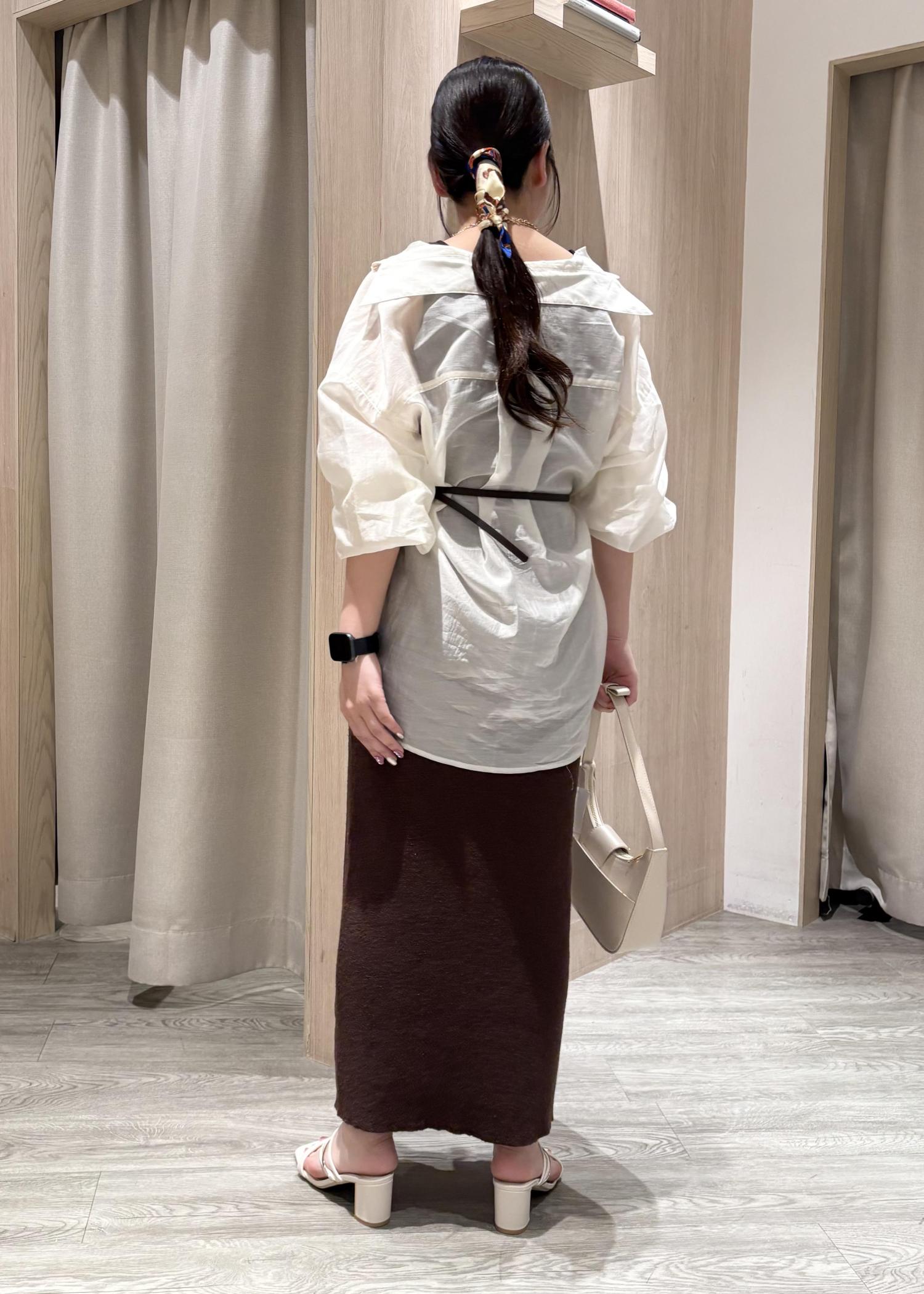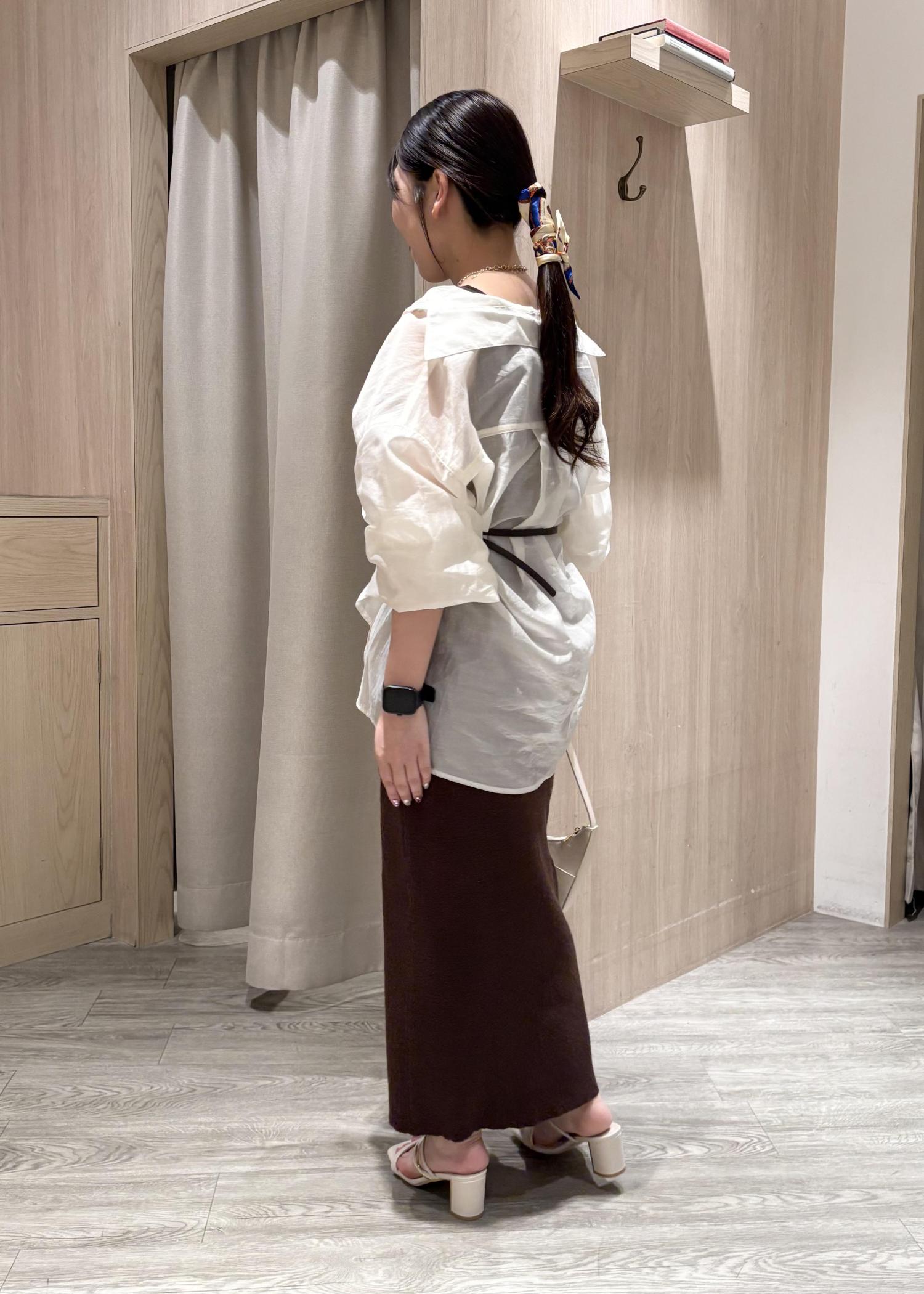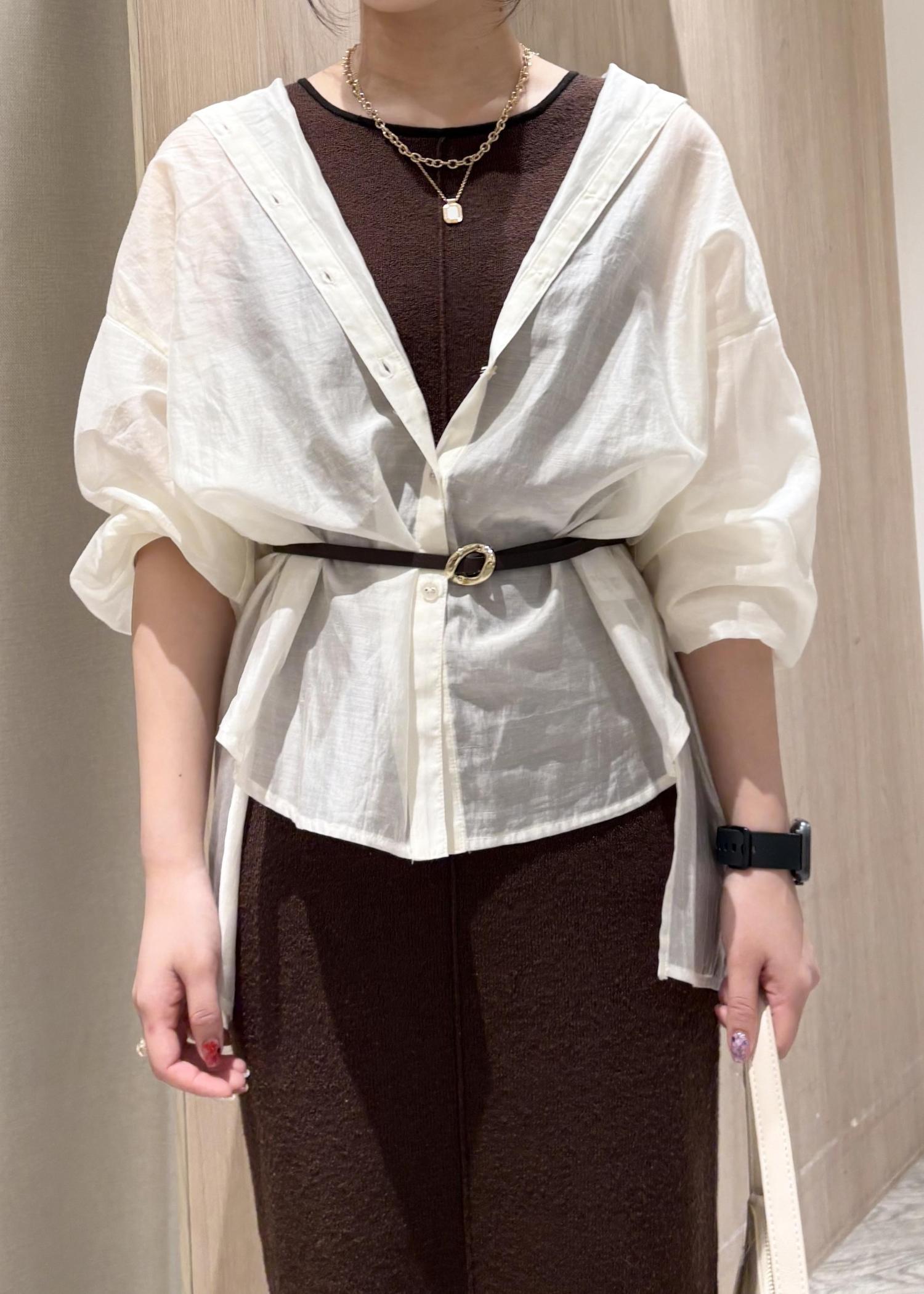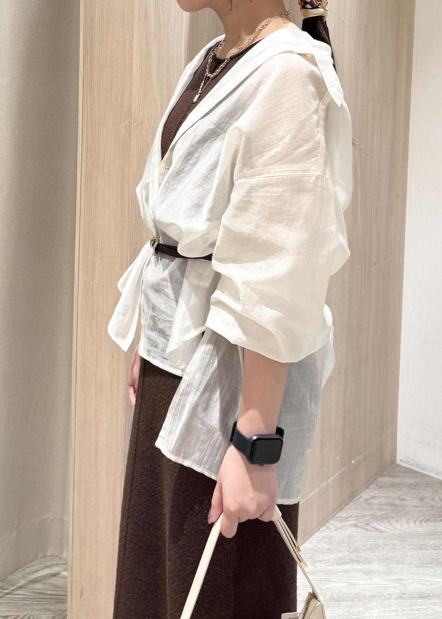 穴がなく巻きつけるタイプでボトムに使用したり、ウエストマークにしたりすることもオススメですよ。 -
