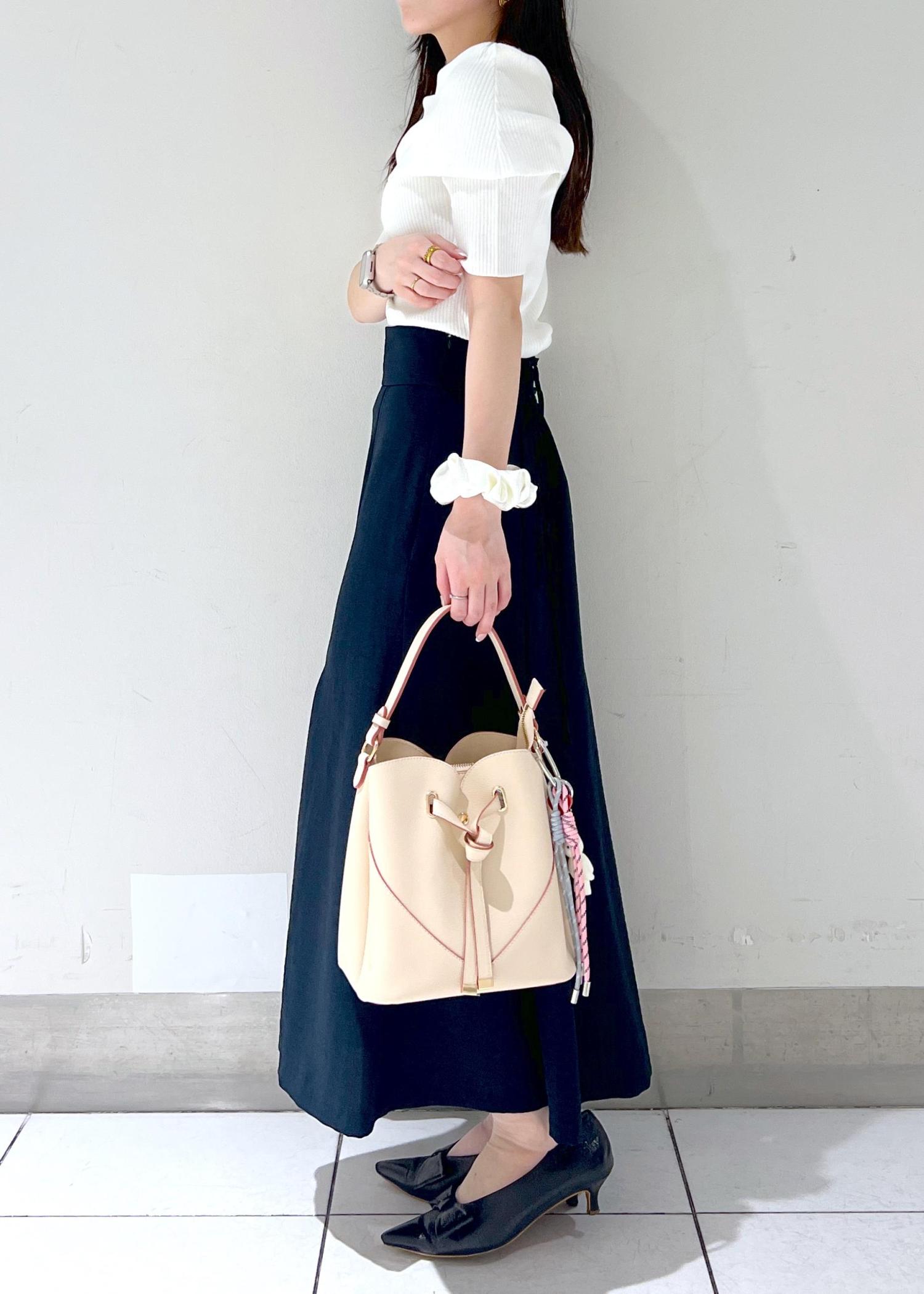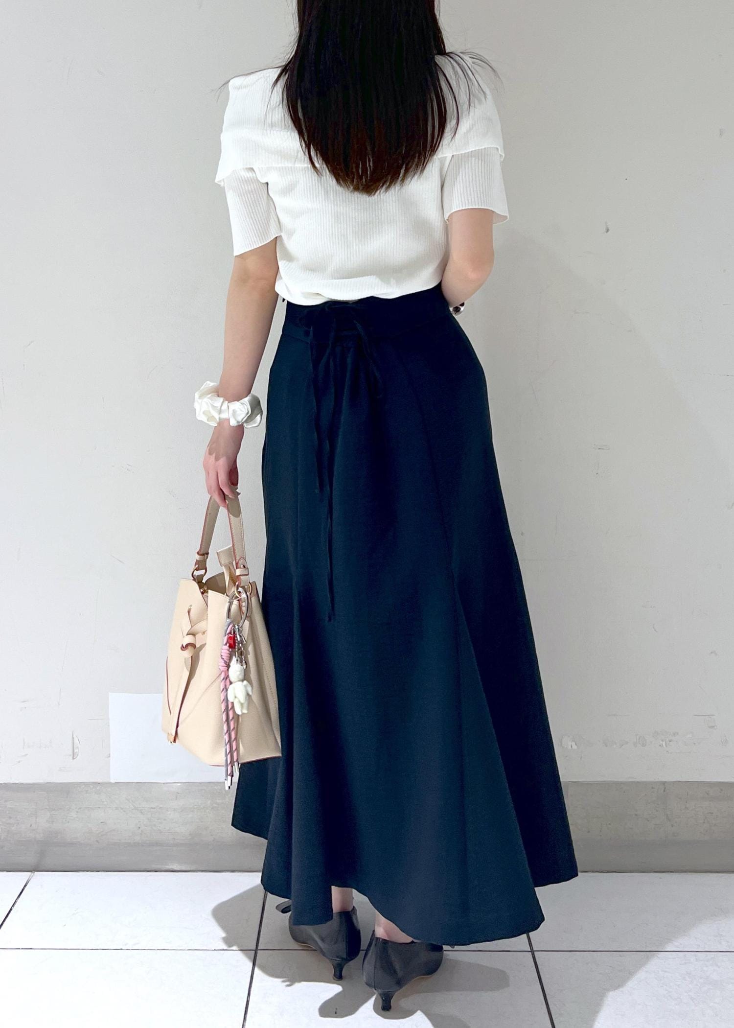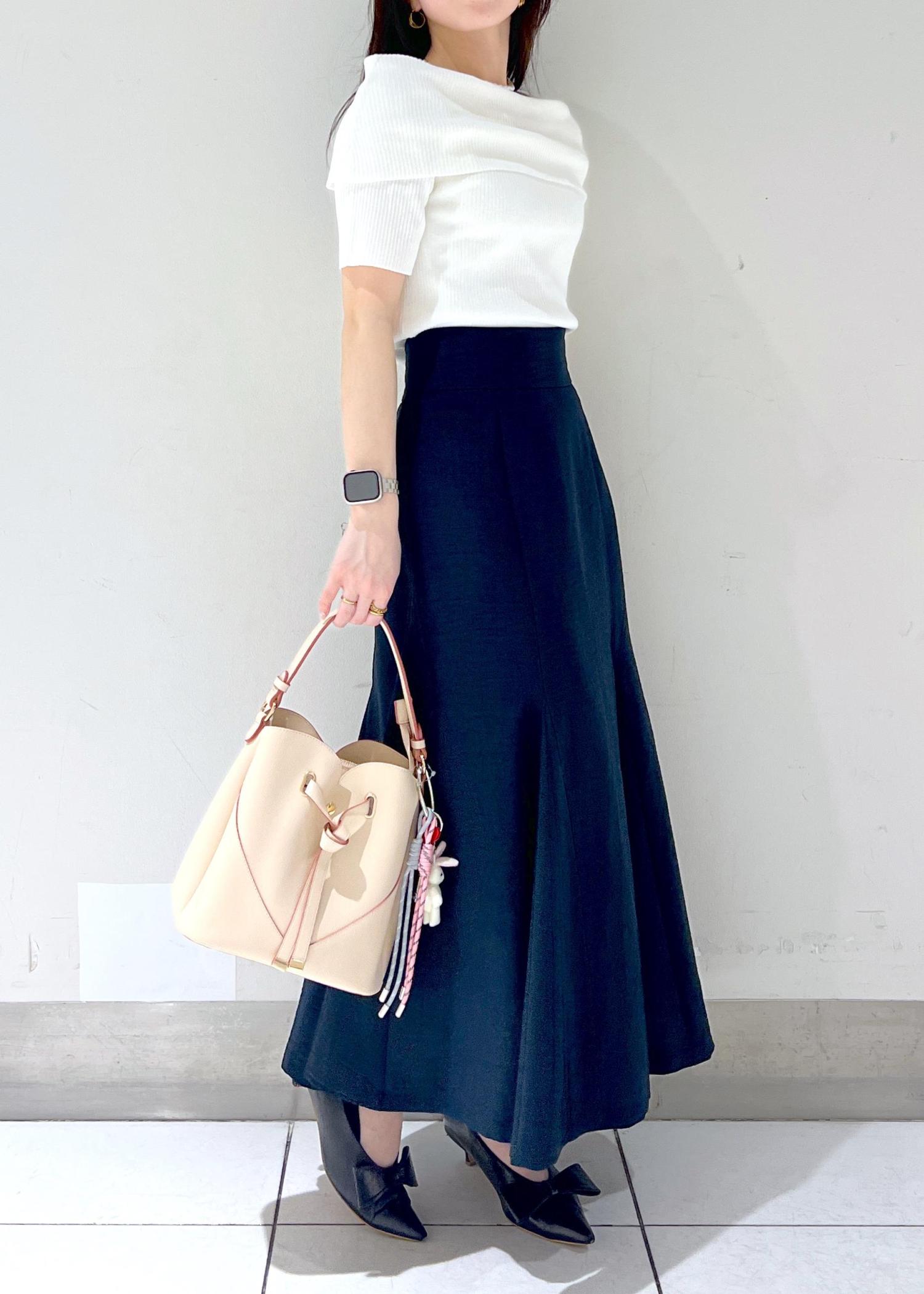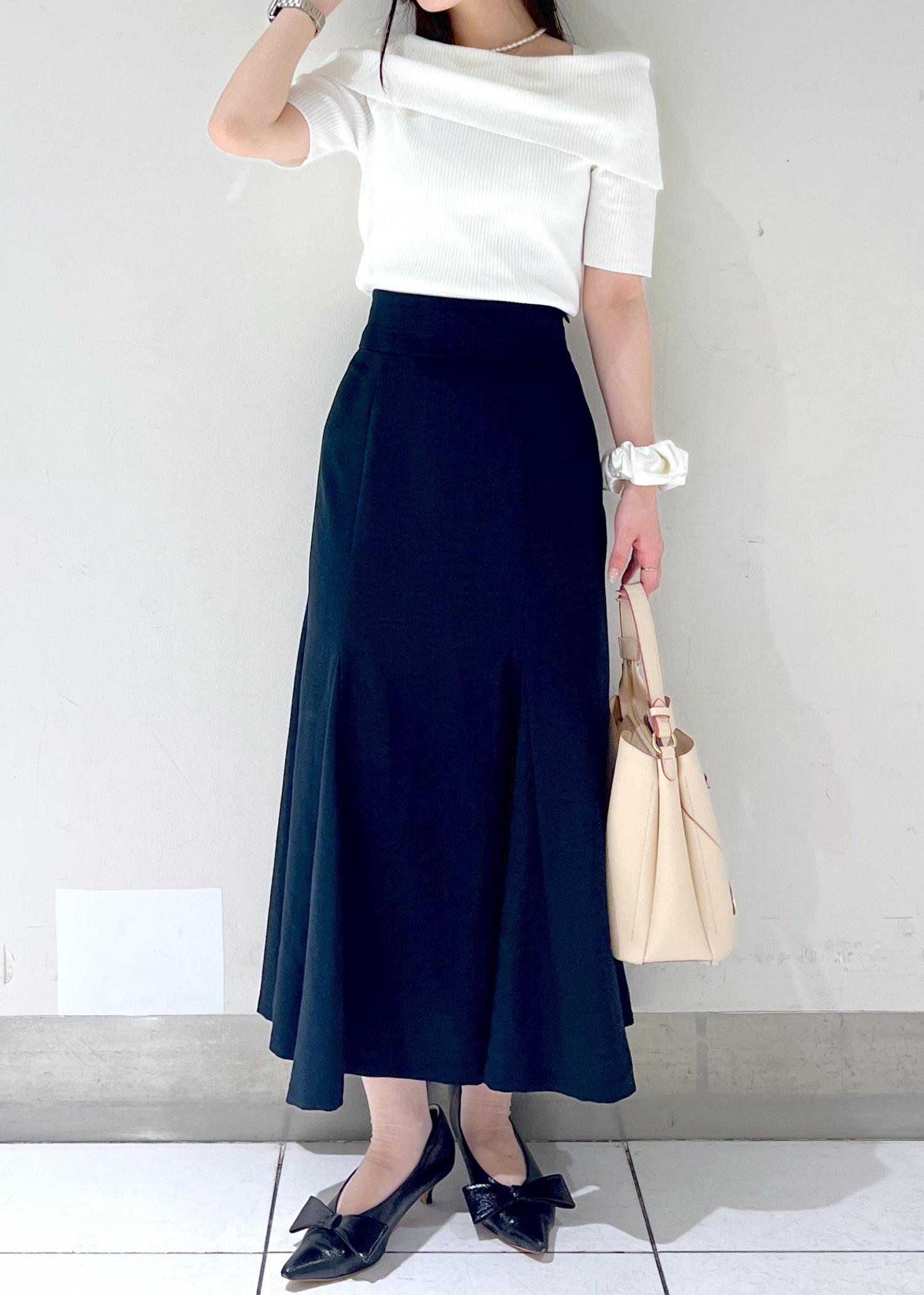 同じシリーズの『リネンライクワンタックワイドスラックスパンツ』(BVS35100)はSS〜Sサイズを着用しているのですが、私は骨格ウェーブで腰の張りが気になるのでマーメイドスカートはSサイズにしました! -