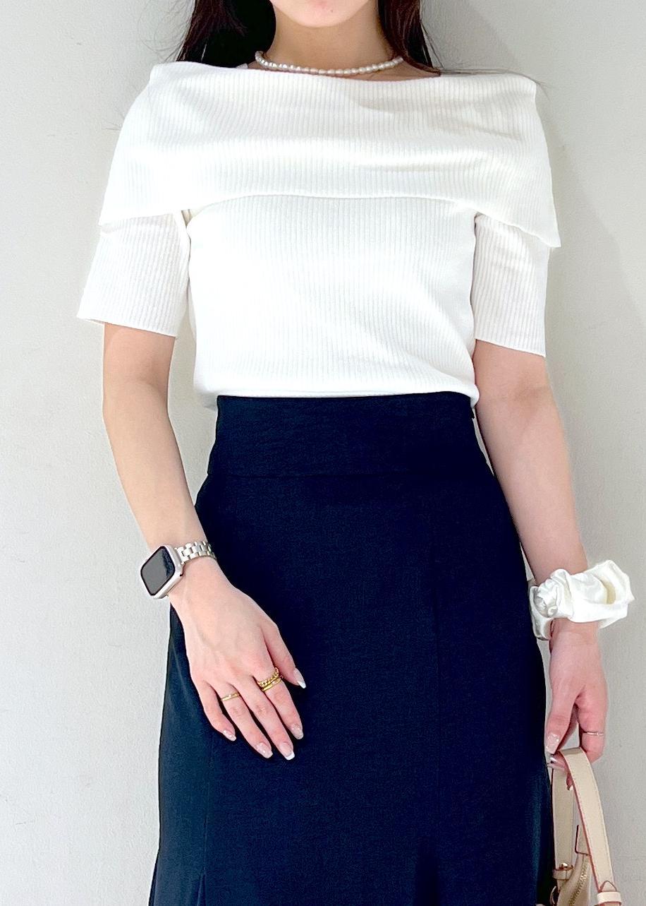 VIS【アンチピリング/UVケア/洗える】オフショルハーフスリーブニットオフホワイト / F¥4,939レビューオフショル風のデザインですが、肩にマチがついているのでインナーの紐などが見えないデザインです◎