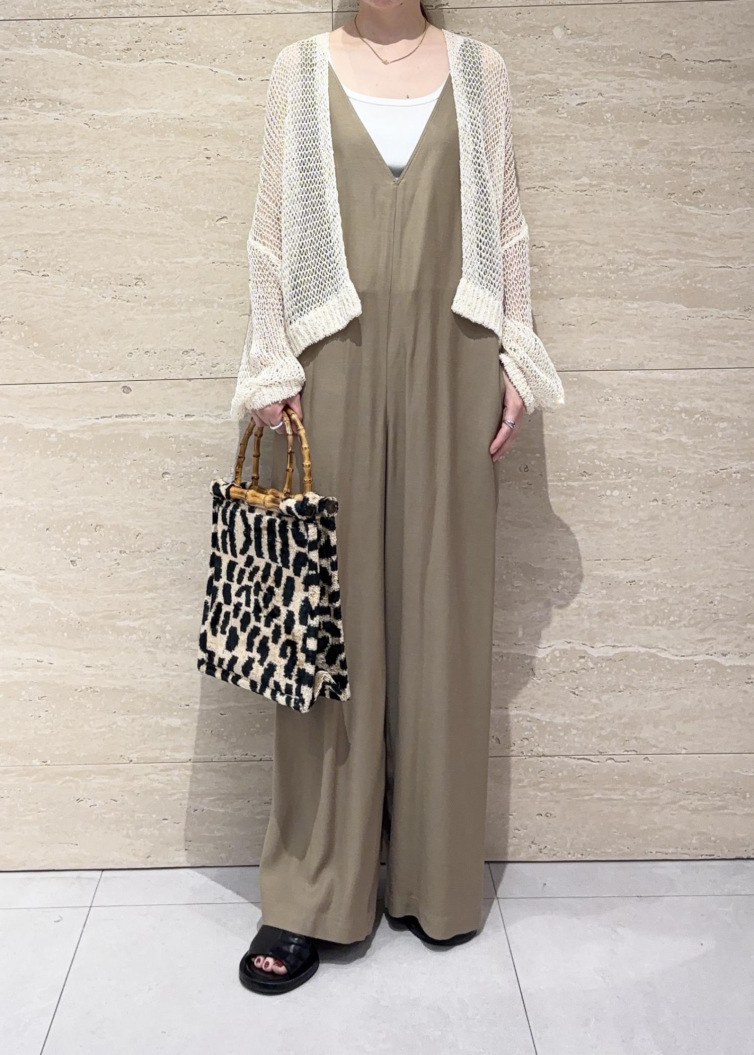 キラキラとしたスパンコールのついたカーディガン合わせで夏のお出かけにぴったりです!!