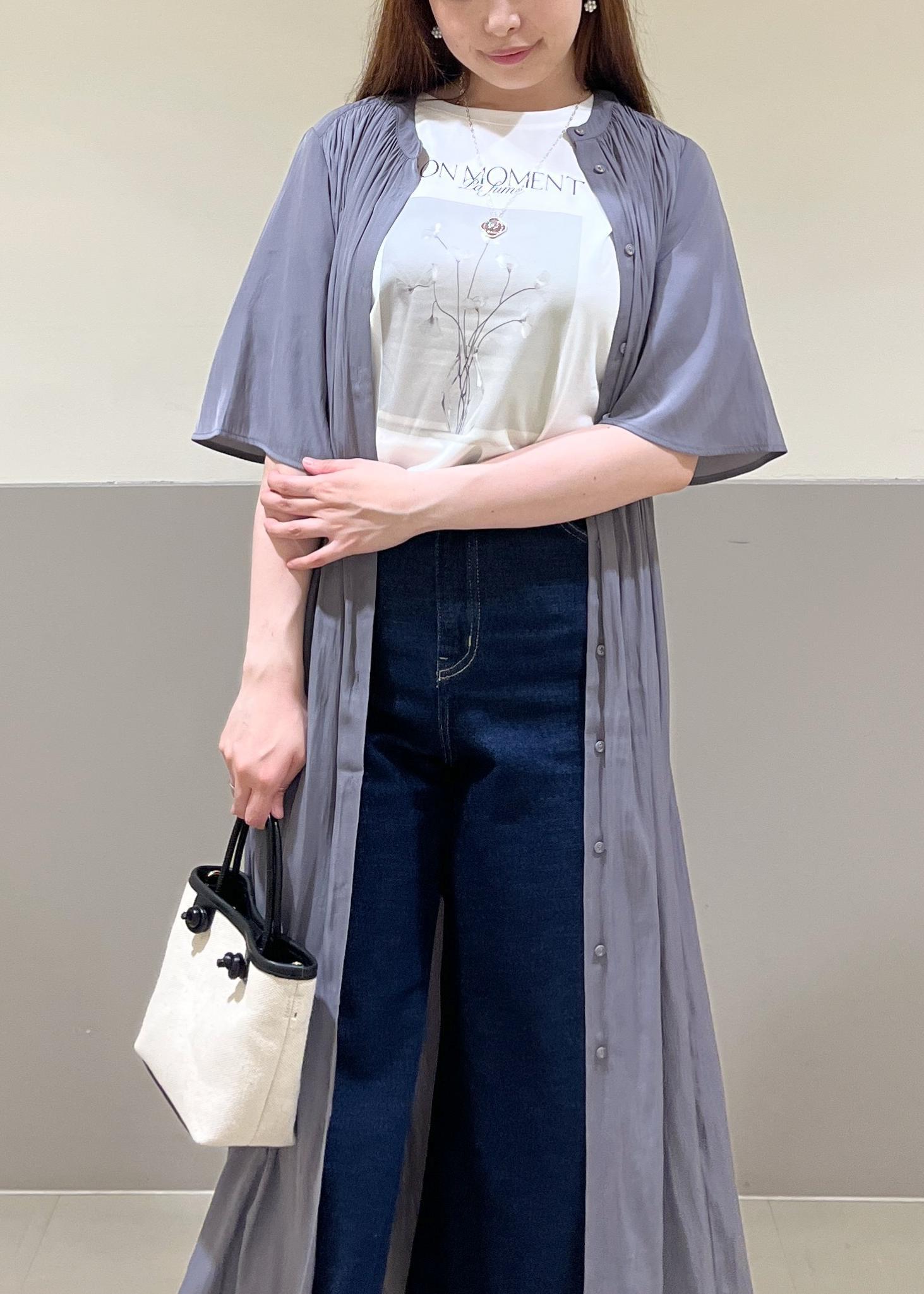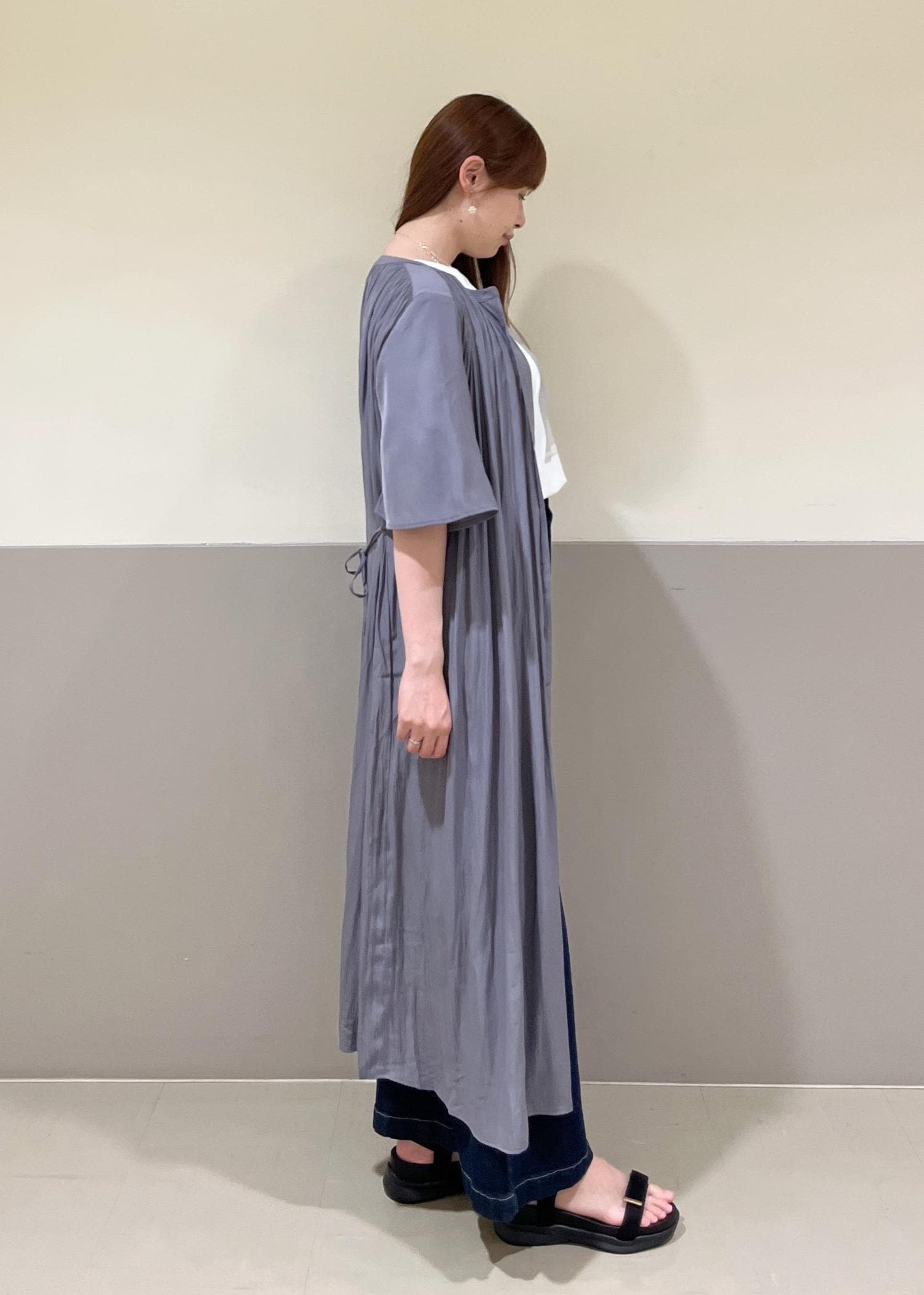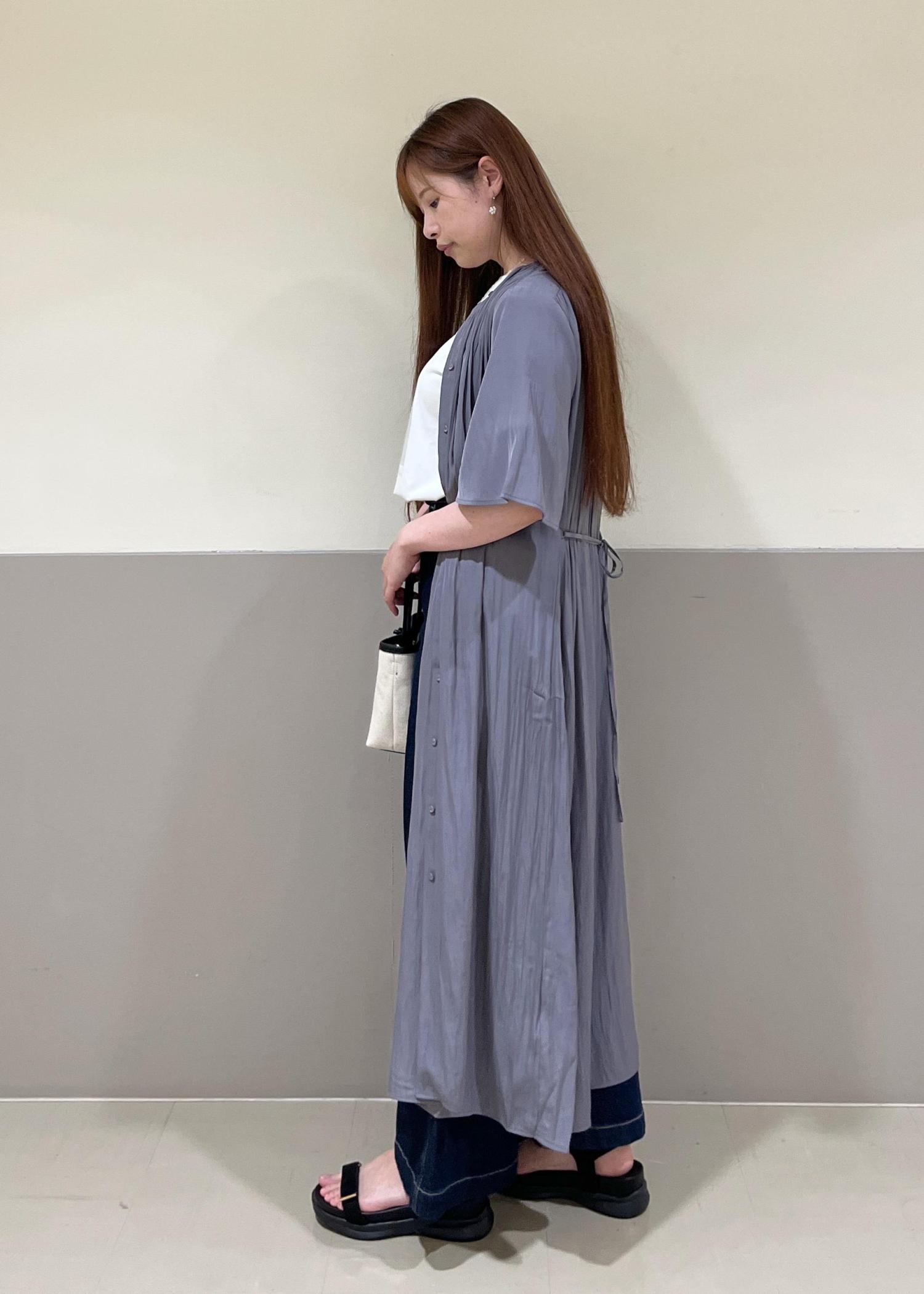 さらっとしたワンピース×ワイドデニムを合わせたカジュアルコーデ。着丈が選べ、羽織にもワンピースにもなる便利アイテムを使ってコーディネートしてみました!