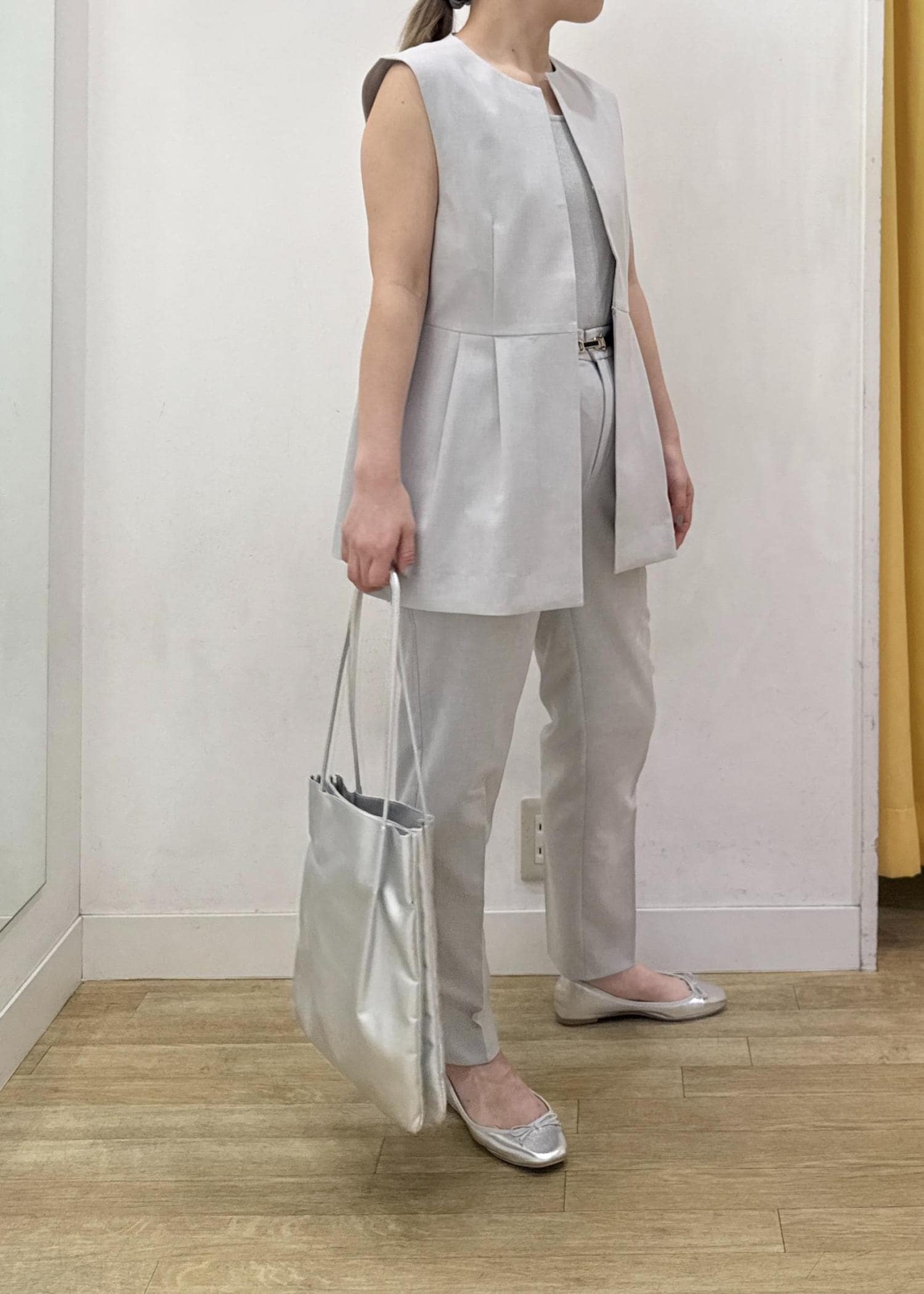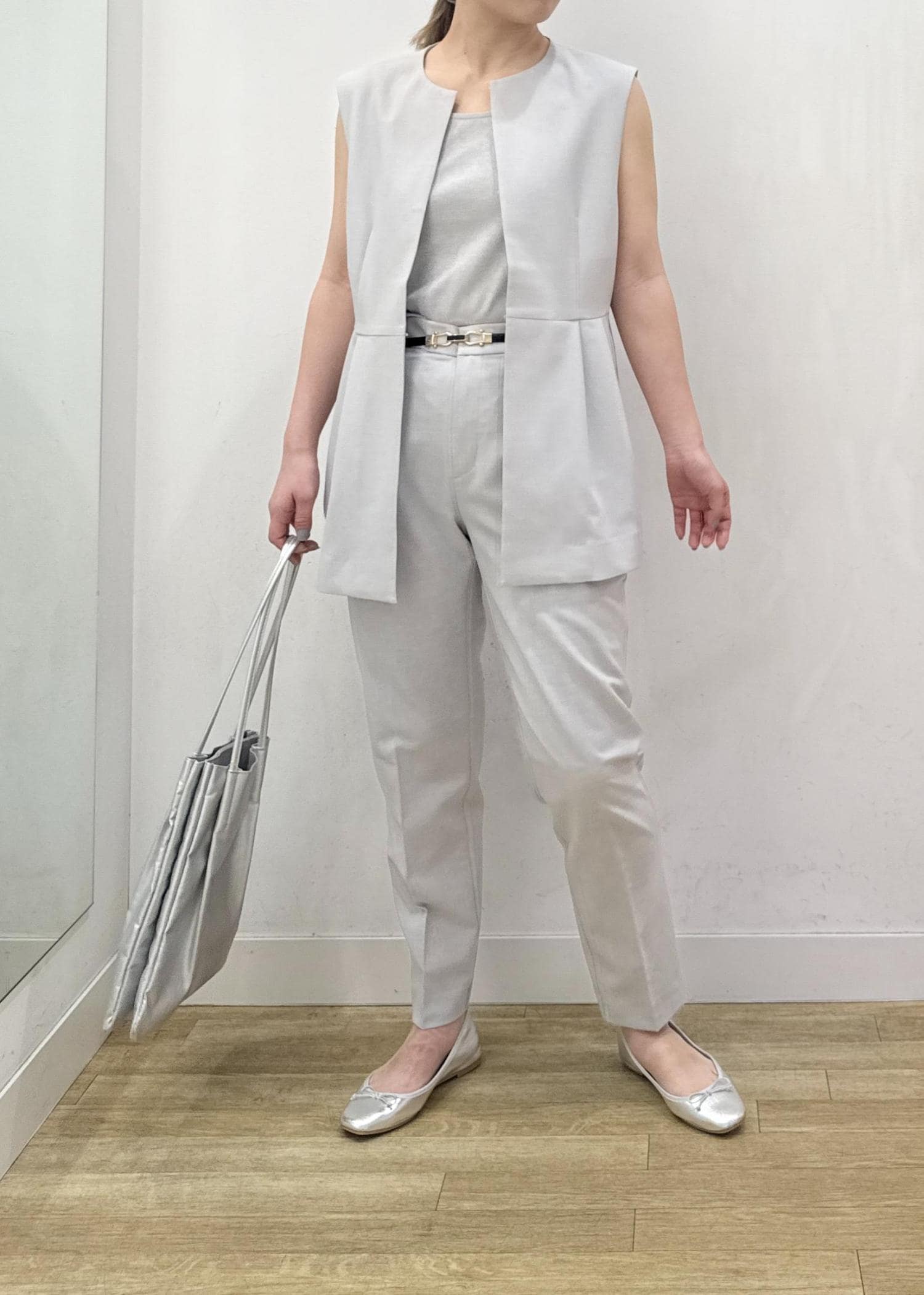 ペプラムシルエットがポイントのセットアップコーディネートです☺︎