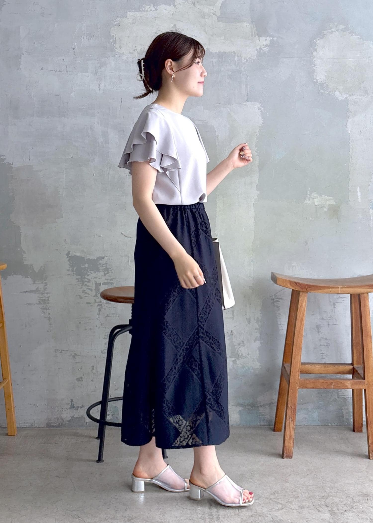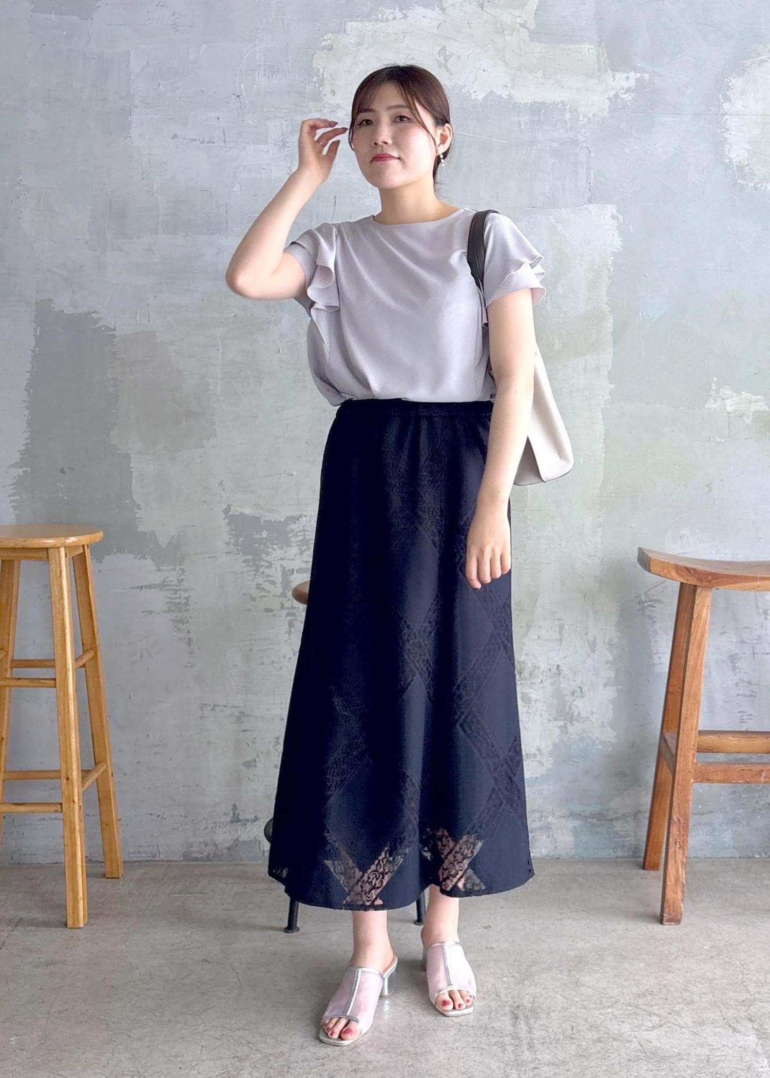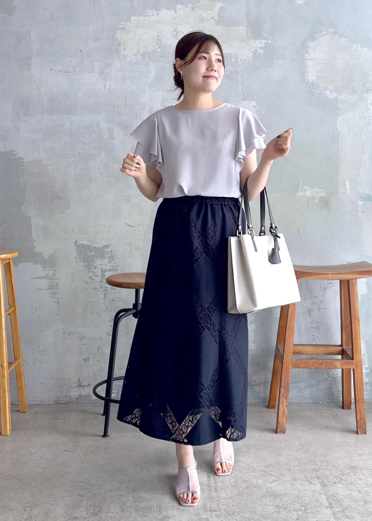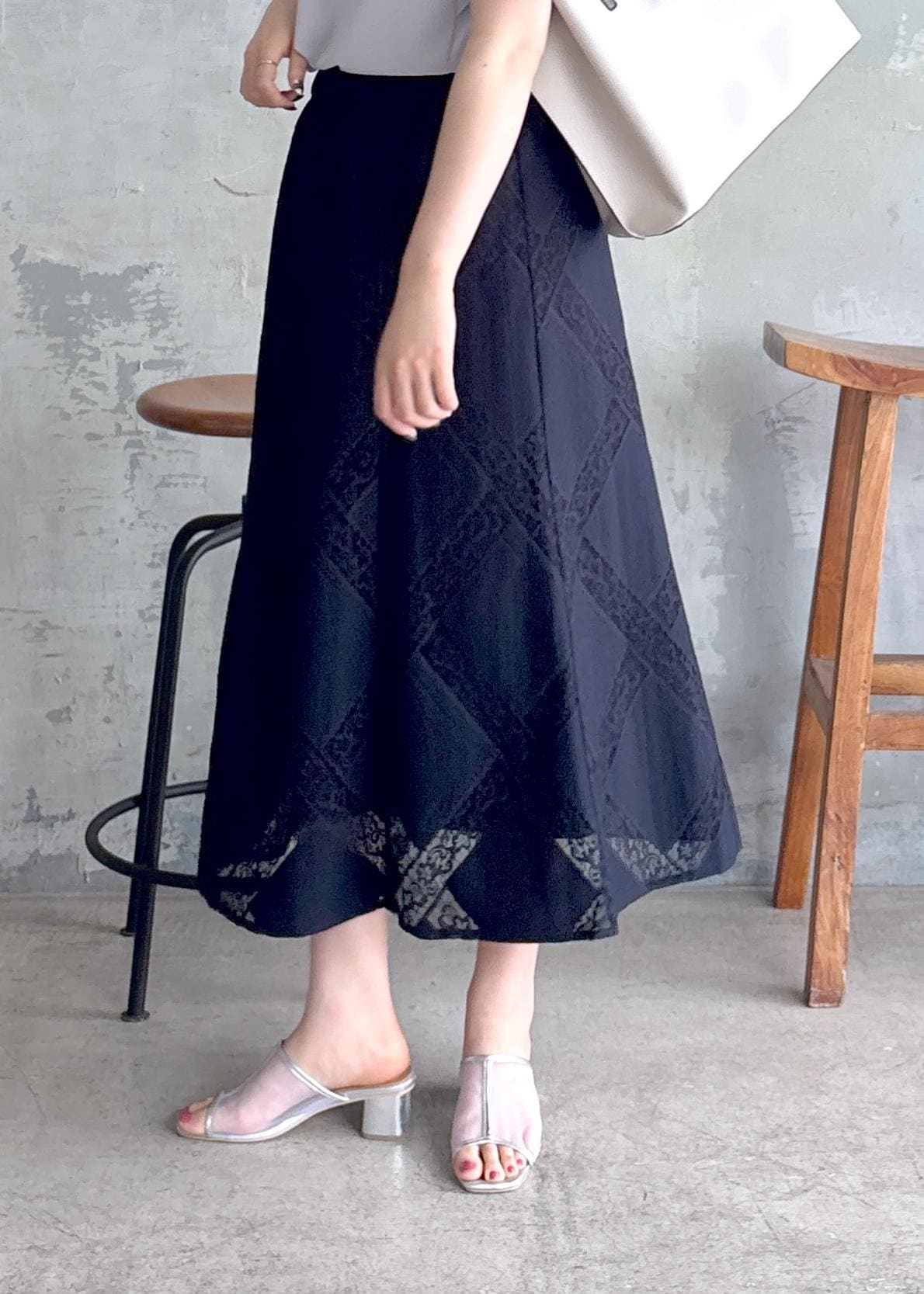 アウトレットROPÉ PICNICダイアゴナルレーシースカートネイビー / 38¥3,245レビューウエストゴムで楽な履き心地です。レース素材で軽やかな印象で夏におすすめです。着丈は長めでくるぶしが見えるくらいです。スカートのシルエットは広がりすぎず、エレガントな印象です。