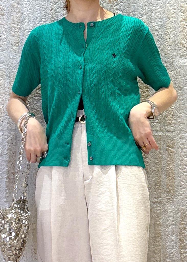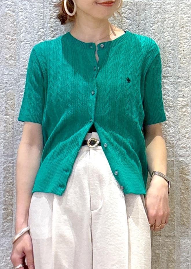 VIS【POLO BCS】VIS別注ハーフスリーブミニケーブルカーディガングリーン / F¥6,600レビューPOLO BCS | VIS別注カーディガン♪ミニケーブル仕様で優しい印象、程よい立体感と胸元のロゴがポイントで、トップスとしても羽織りとしても着回せる優秀アイテム♪とても柔らかくて伸縮性があり着やすい◎全体的に程よくフィット、着丈は腰が隠れるくらいの長さでした。