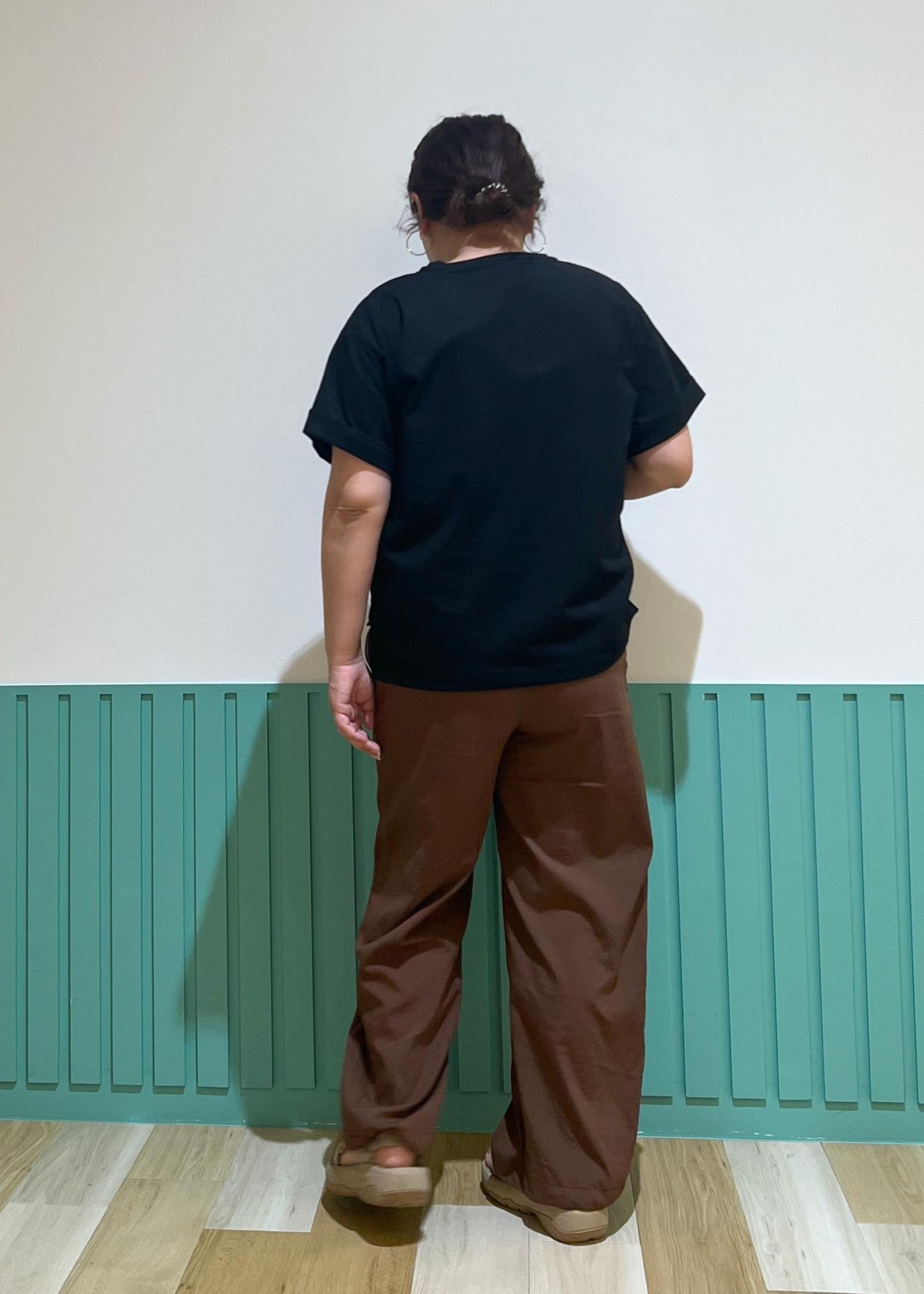 Tシャツとワイドパンツのシンプルコーデですが