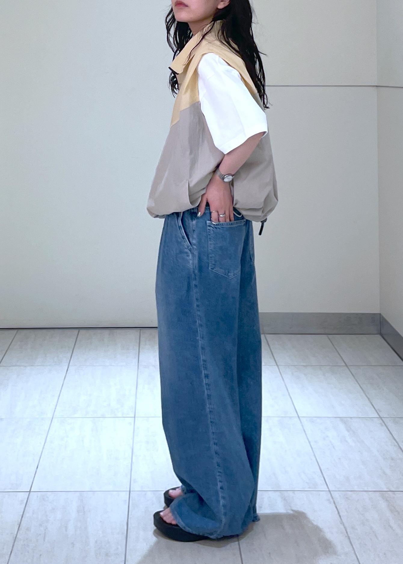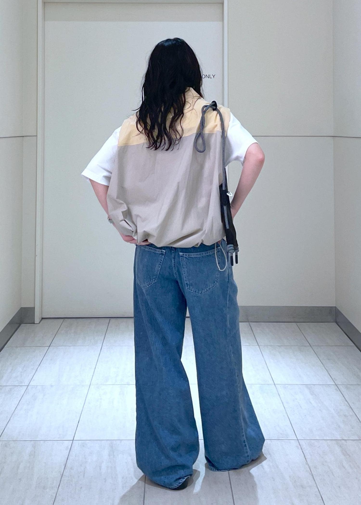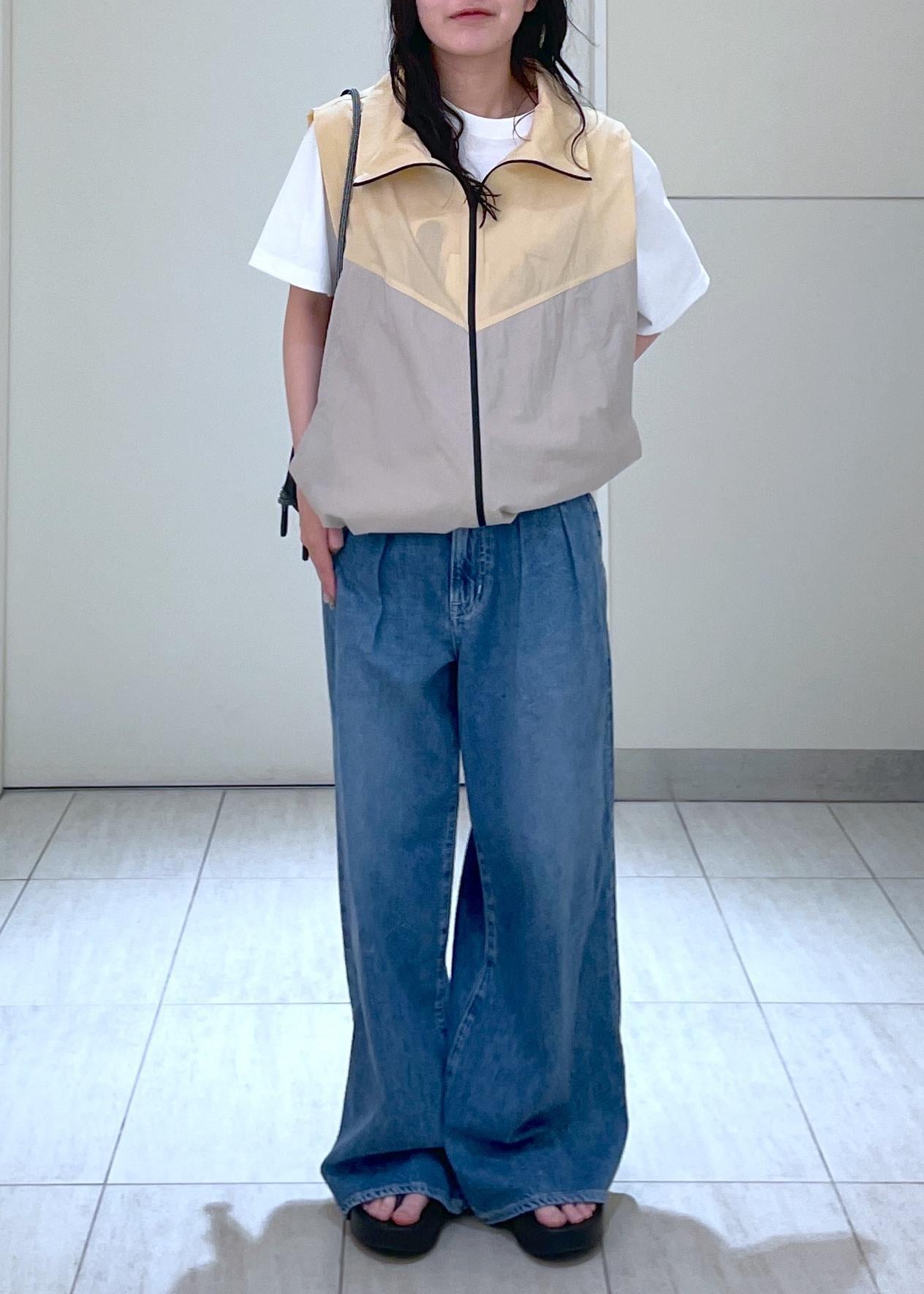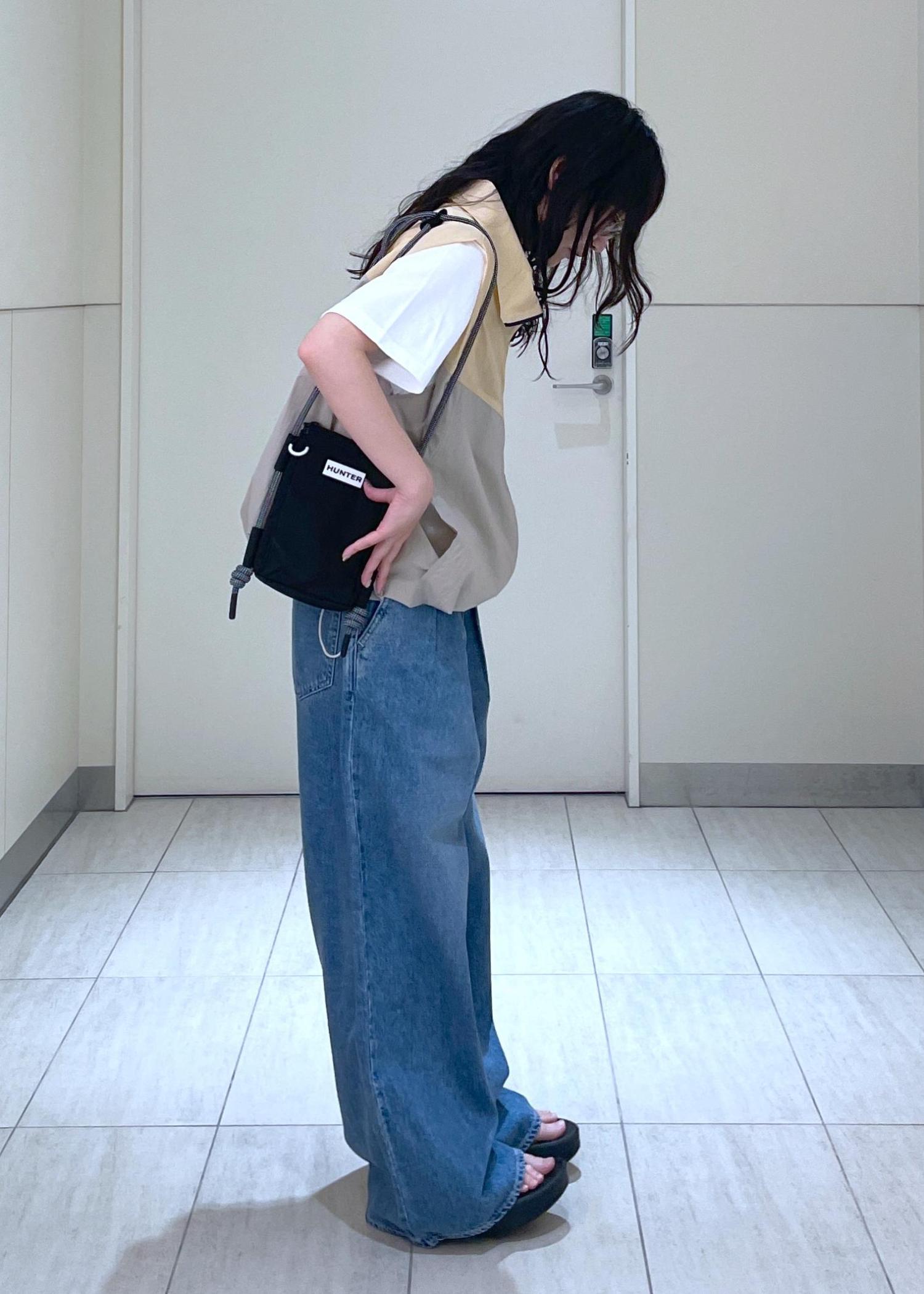 ベストは明るめのカラーなのでバッグとシューズは黒色でまとめました◎