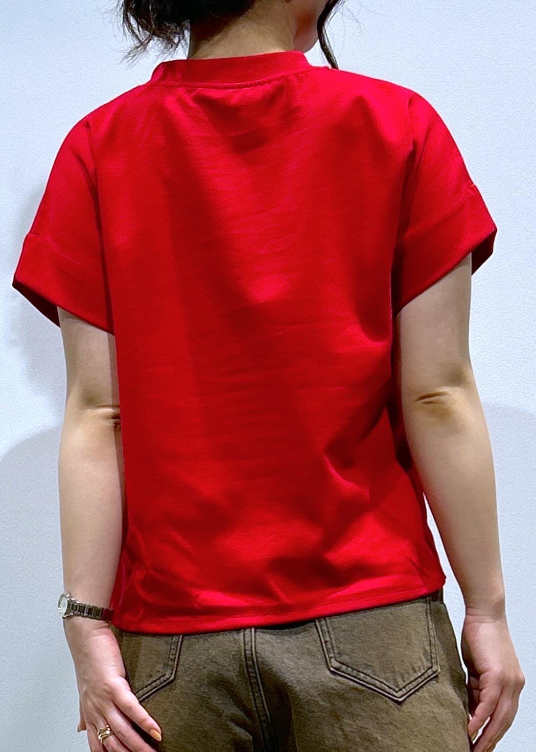 LE CERCLE par ropé新色追加【UVケア/接触冷感】ボトルネックTシャツレッド系 / F¥4,290レビュー長すぎず短すぎない腰が隠れる丈感で、袖は肩と肘の真ん中あたりです。