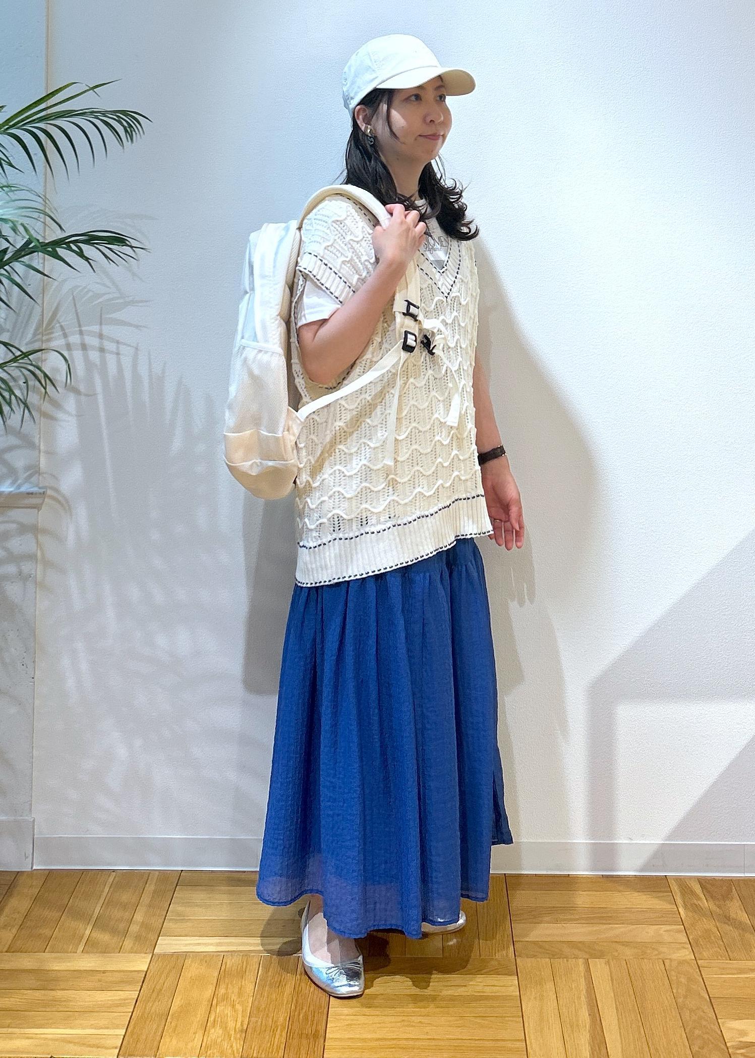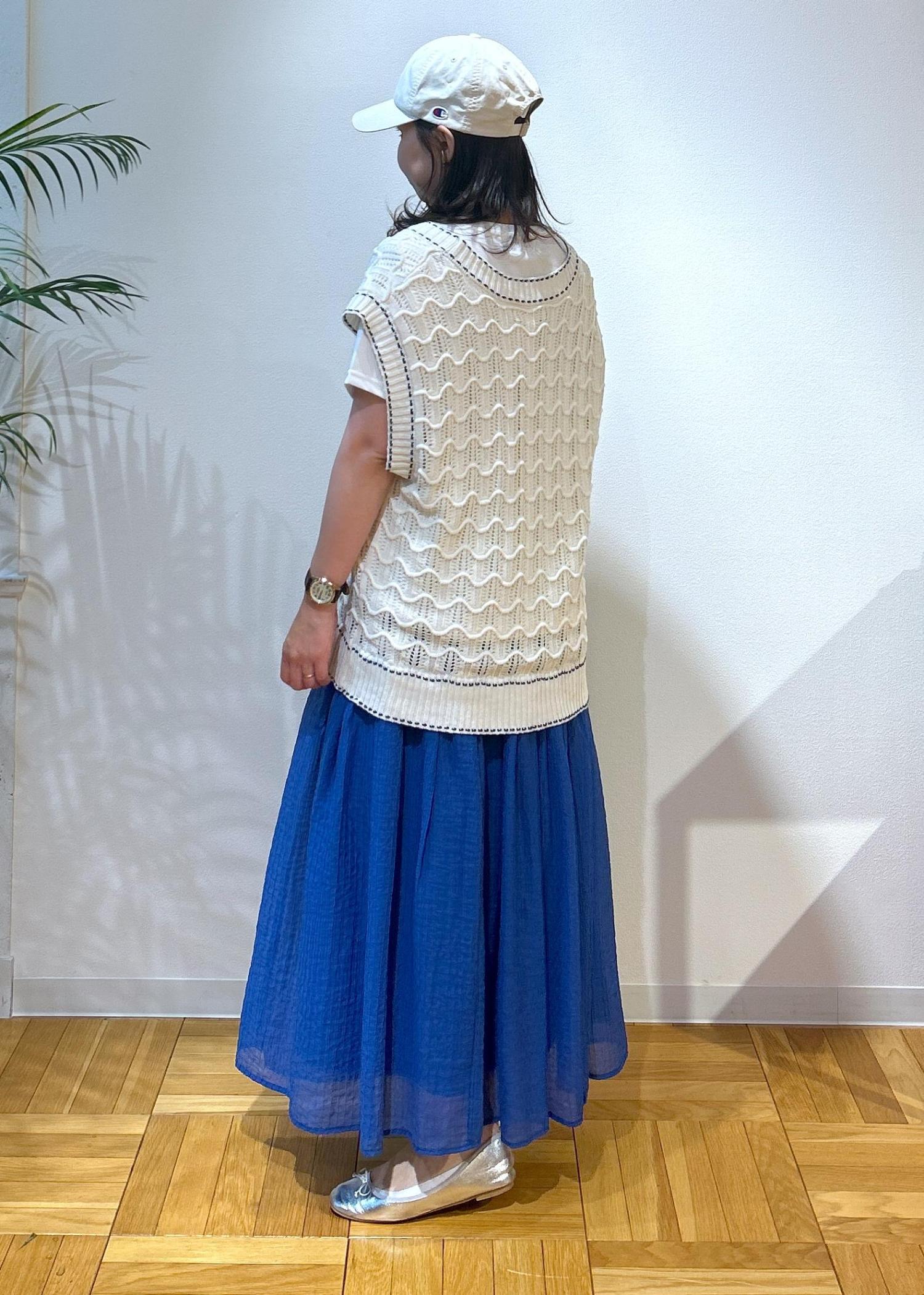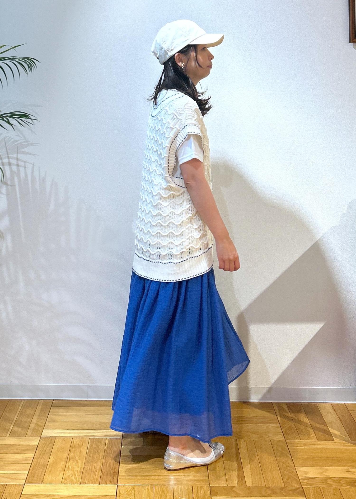 さらにベストにはステッチの部分がブルーのカラーが入っているのでスカートと合わせると統一感が出てコーディネートがまとまります。