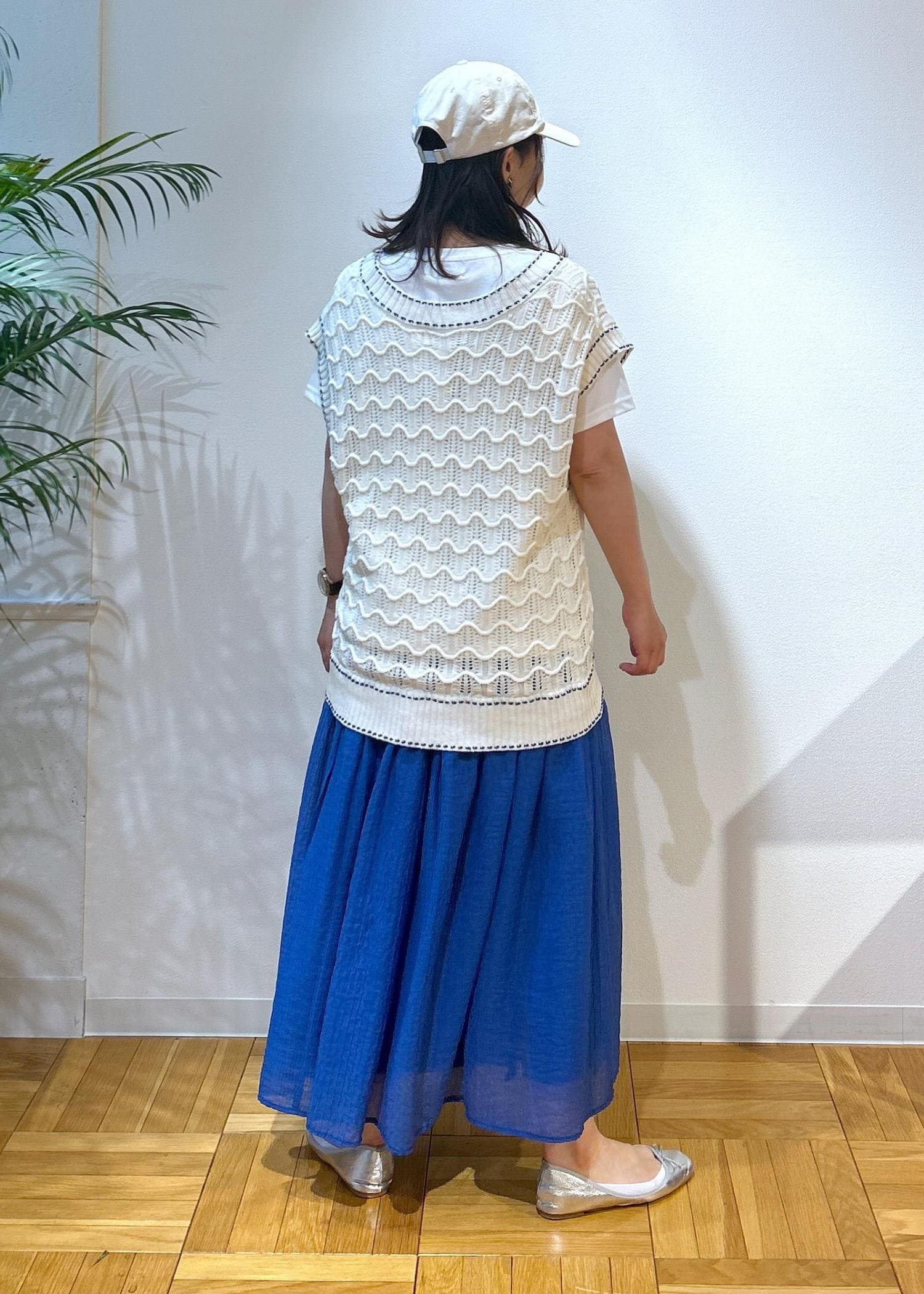 ブルーのカラーを入れて涼しげなコーディネートにしてみました。これから暑くなる時期にはこのブルーで気持ちも涼やかになるかと思います。