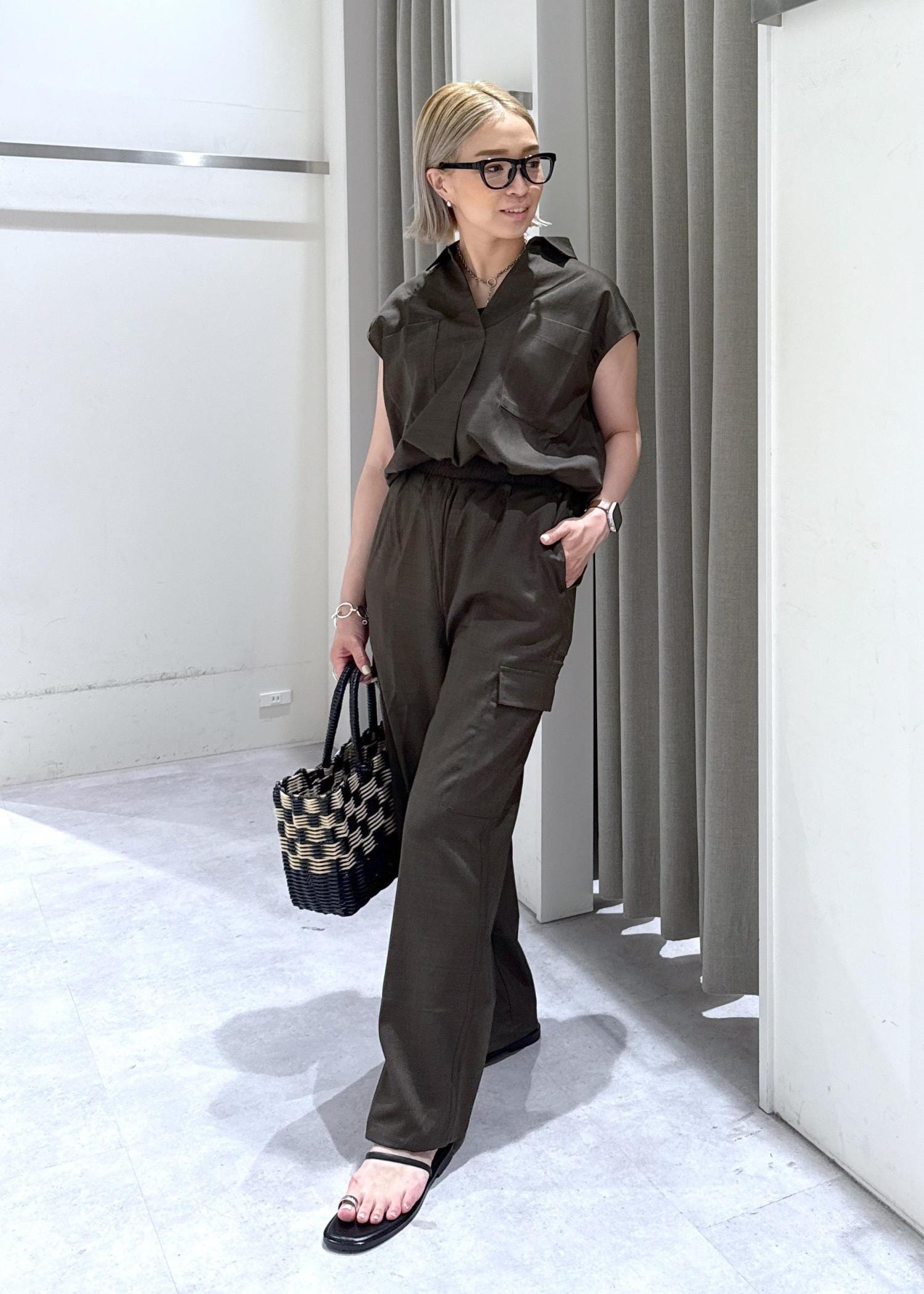 同じ生地のパンツもあり、セットアップコーデができます。 -