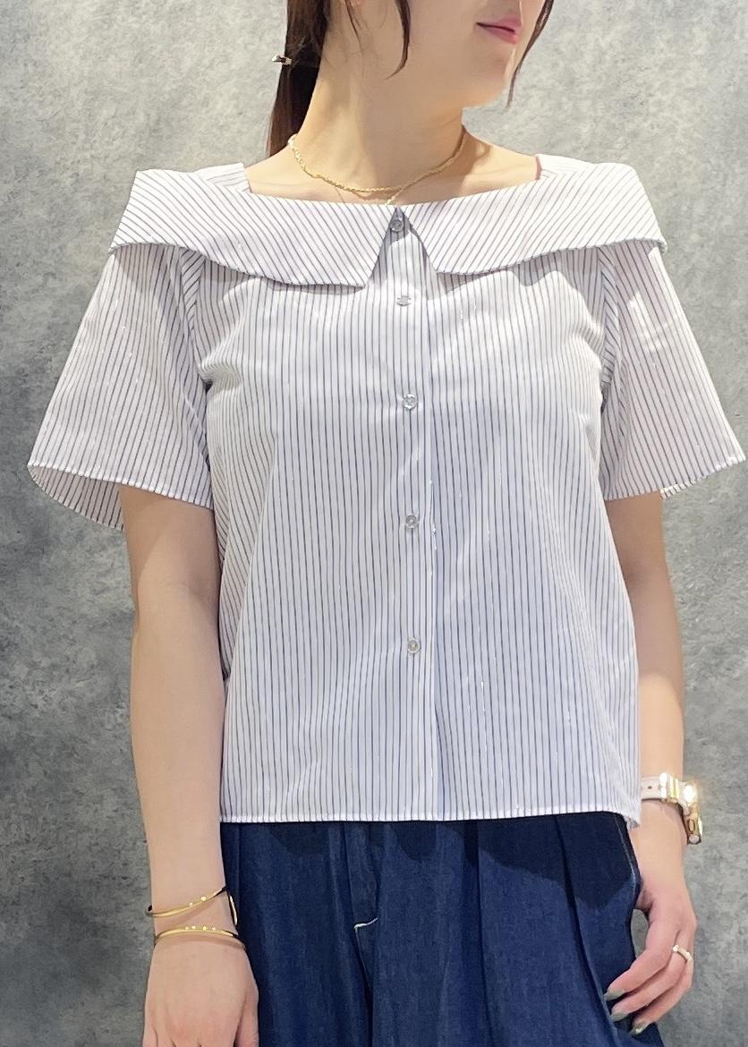 VIS【新色追加】【防シワ】ラメミックスオフショルダー風ストライプシャツホワイト系 / F¥5,489レビュー肩幅が広い私でも窮屈感なく着用出来ました!