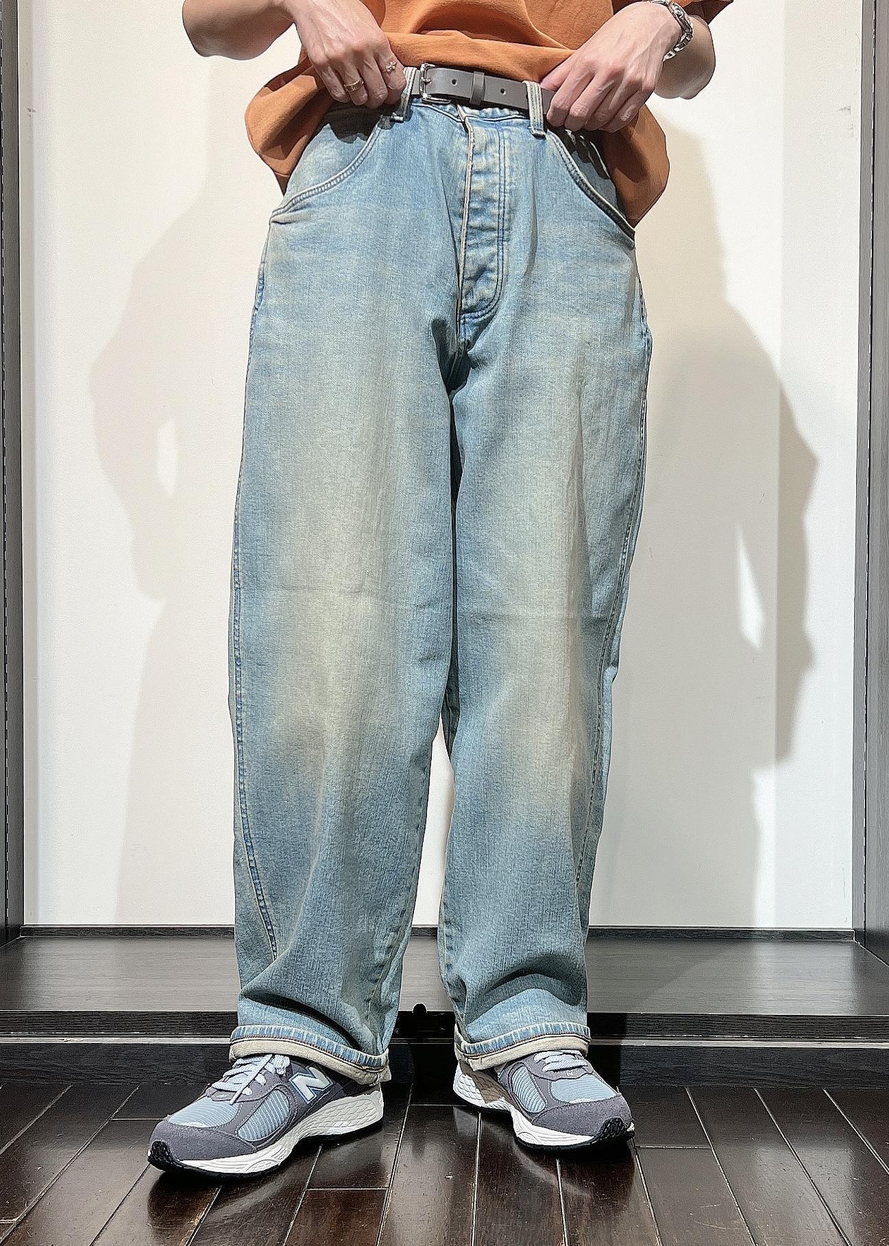 j.n.r.d【Wrangler meet j.n.r.d】別注/カーブデニムサックス / M¥8,360レビューしっかりした生地感ながらも柔らかくストレッチ性があり履き心地抜群なカーブシルエットのデニムです。