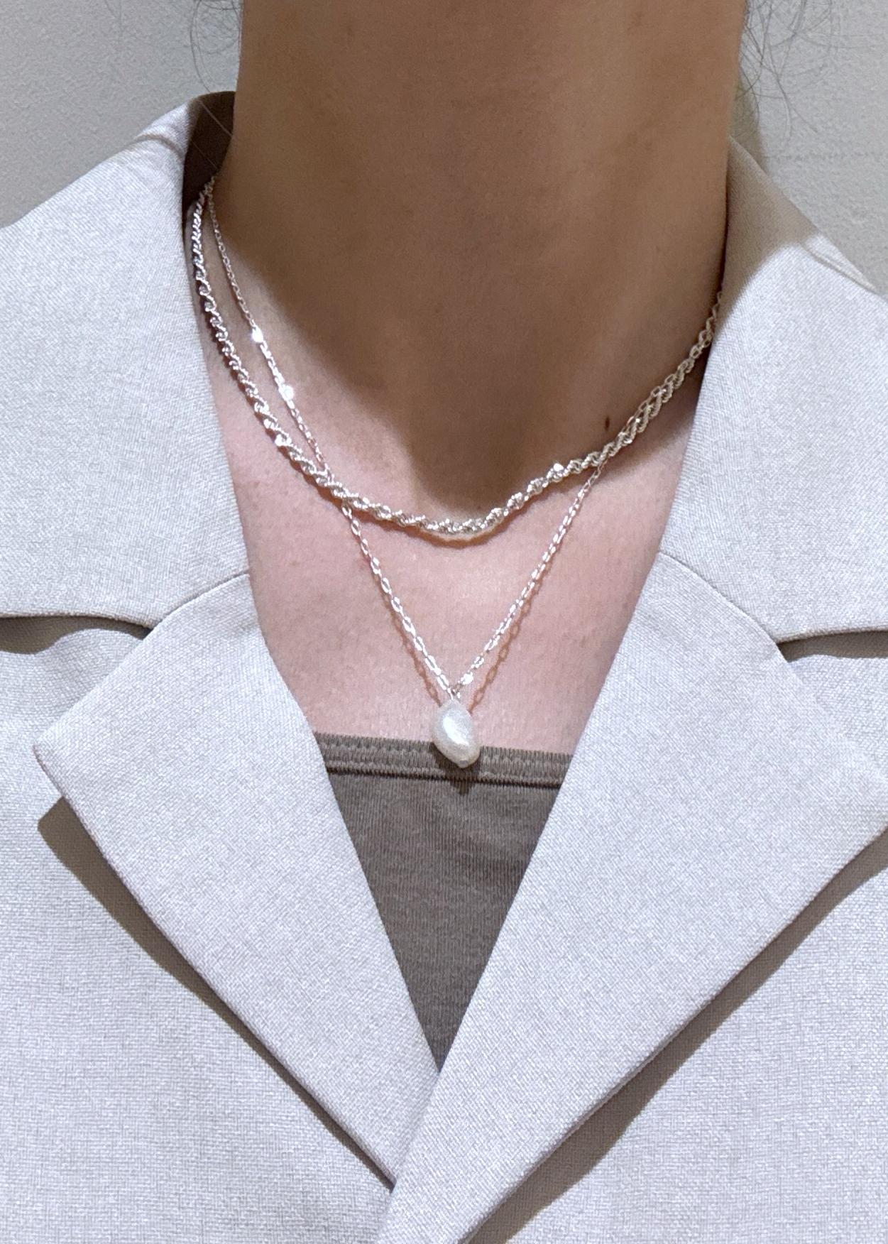 VISレイヤード淡水パールネックレスシルバー / F¥2,497レビュー一個で重ね付けのデザインなのでコーデが寂しい時に便利でした☺︎