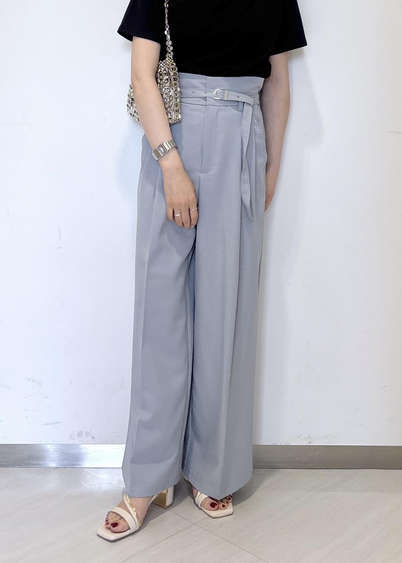 VIS【新色追加】【防シワ/接触冷感】ベルトディテールタックワイドスラックスパンツサックス / S¥6,589レビューベルト付きのスラックス。