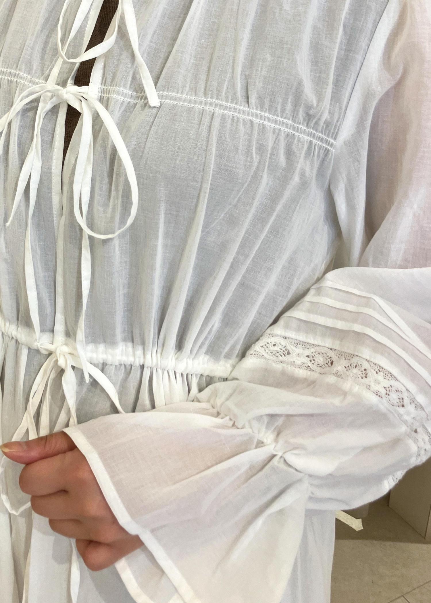 フロントのリボンや袖のレースを見せるとガーリーに、羽織として着ると甘さを抑えた印象になり、様々なテイストでお召しいただけます。 -