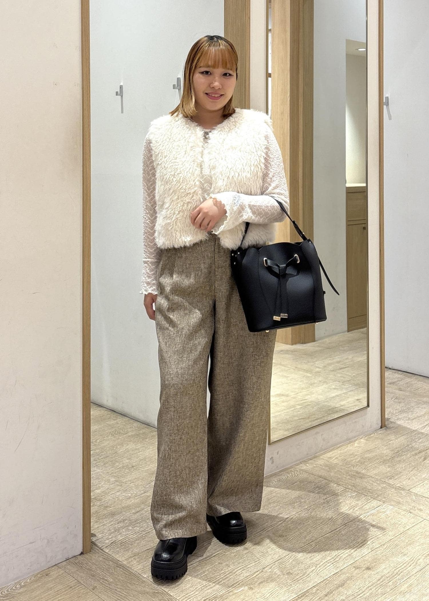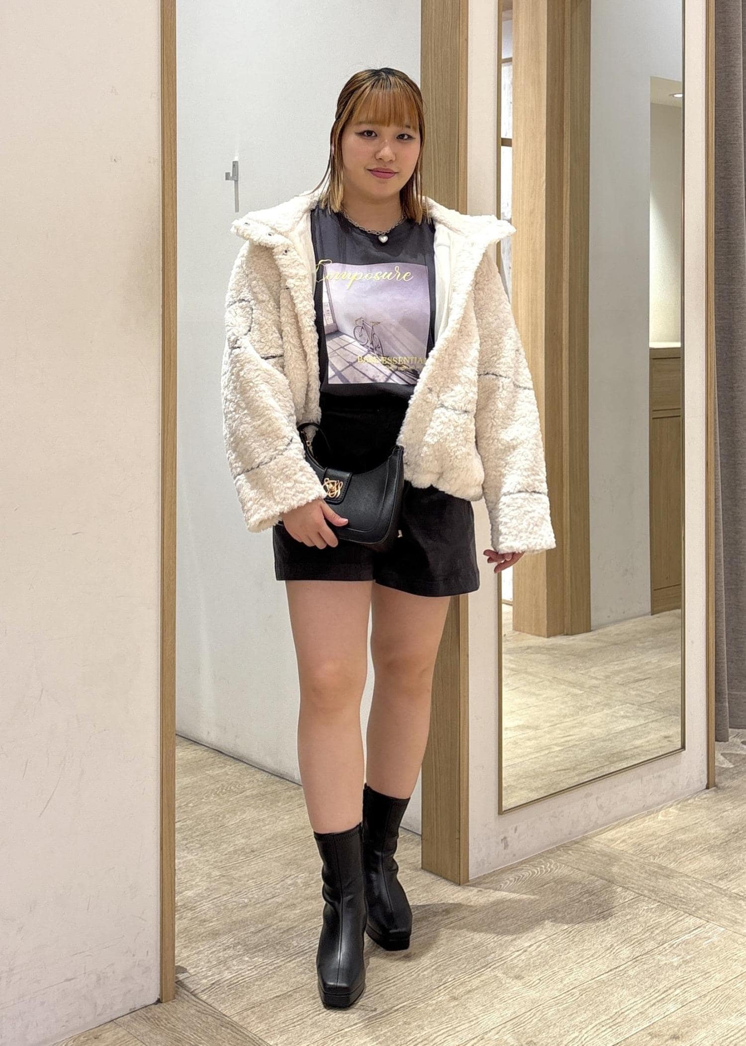 トップスも丈の短いものきにする事でスッキリして重たくならないので、低身長さんには特にオススメです!