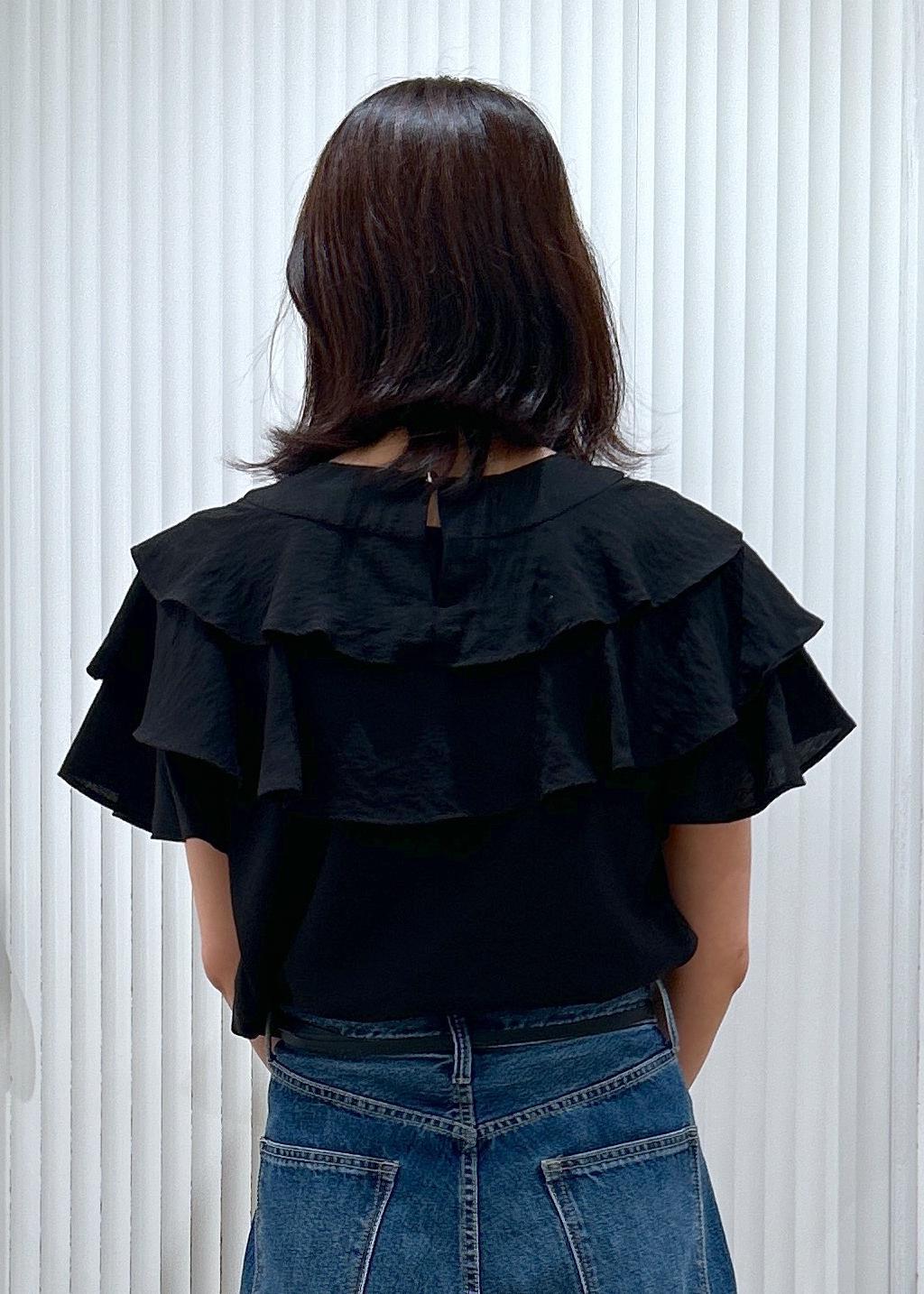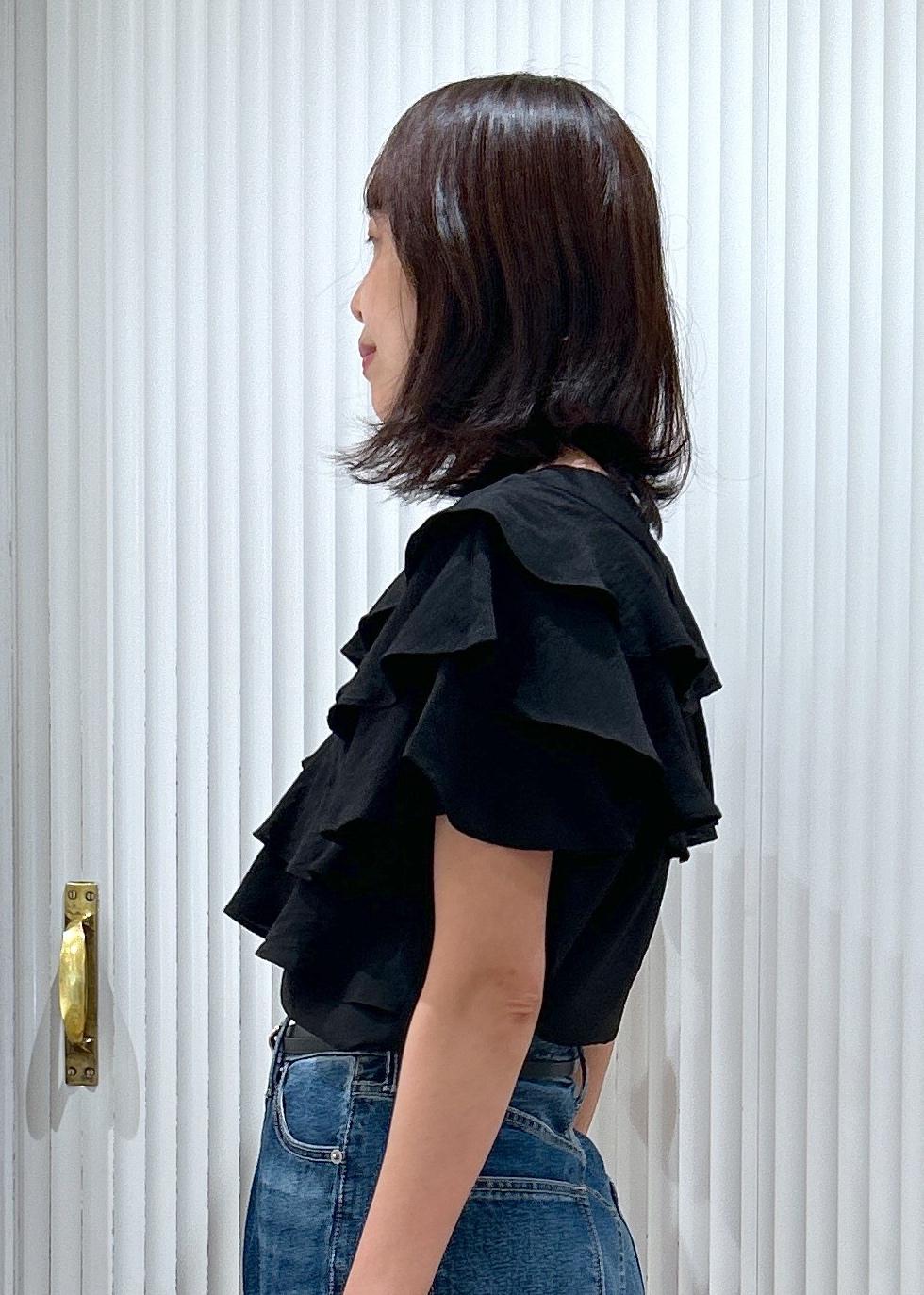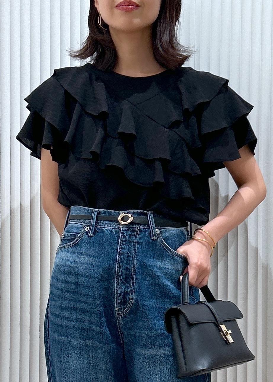 アウトレットVISフリルティアードブラウスブラック / F¥4,391レビュー身長164センチでもイン出来る着丈。