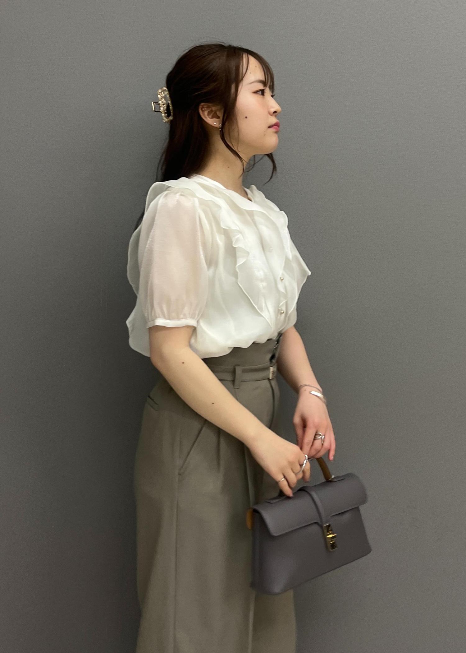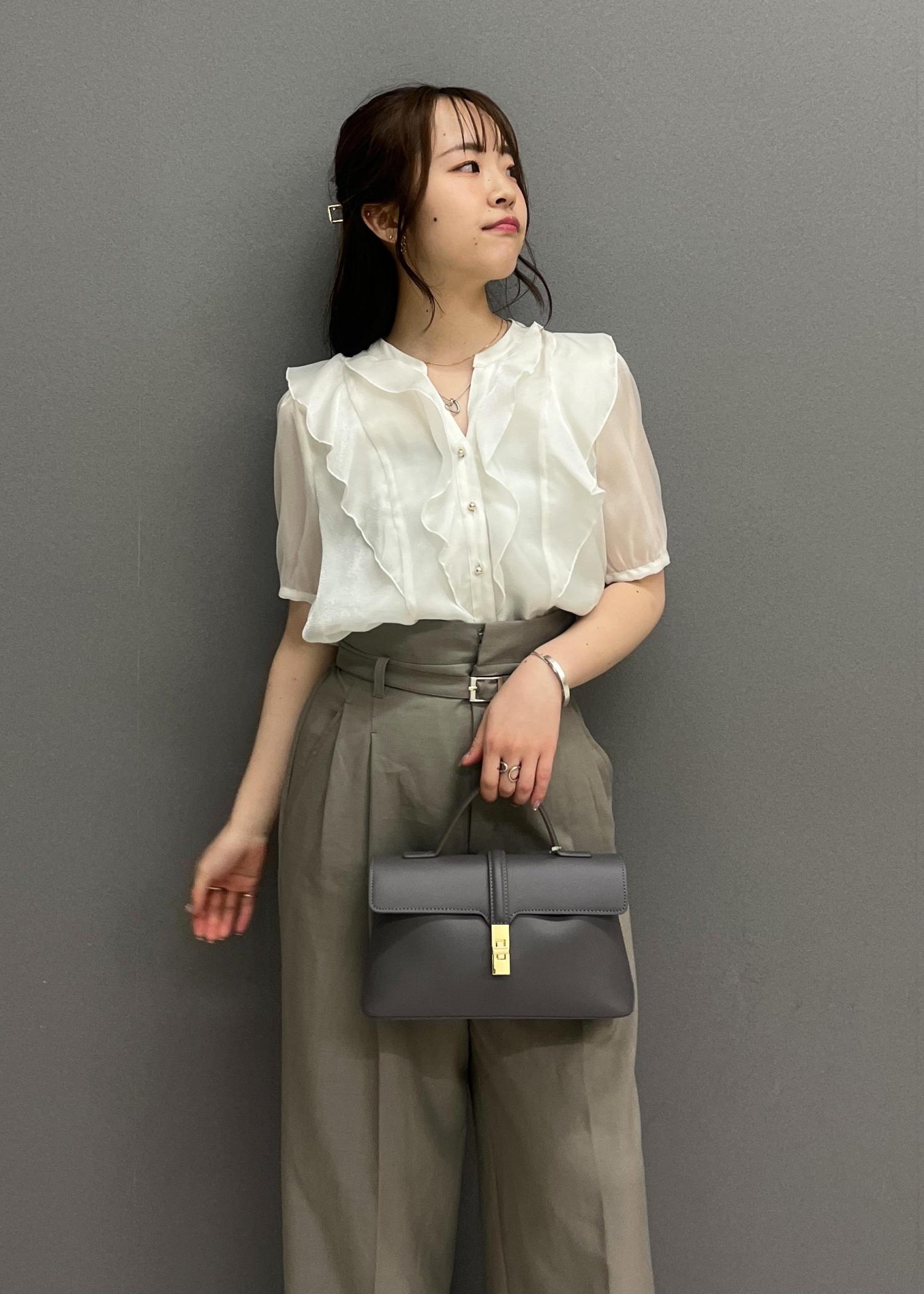アウトレットVIS【洗える】シアーラッフルフリル半袖ブラウスキナリ / F¥4,391レビュー大人気だったブラウスの半袖バージョン!!