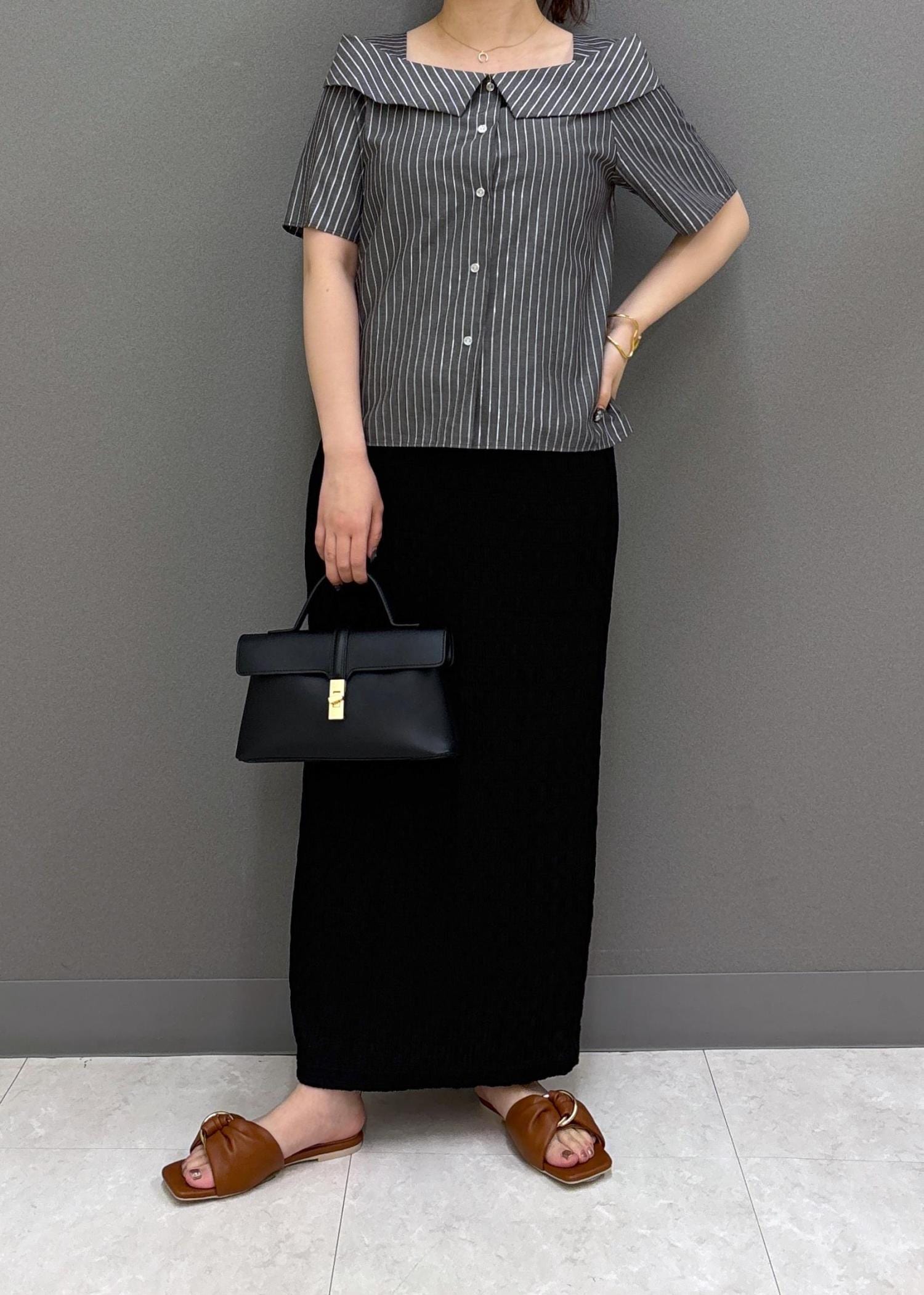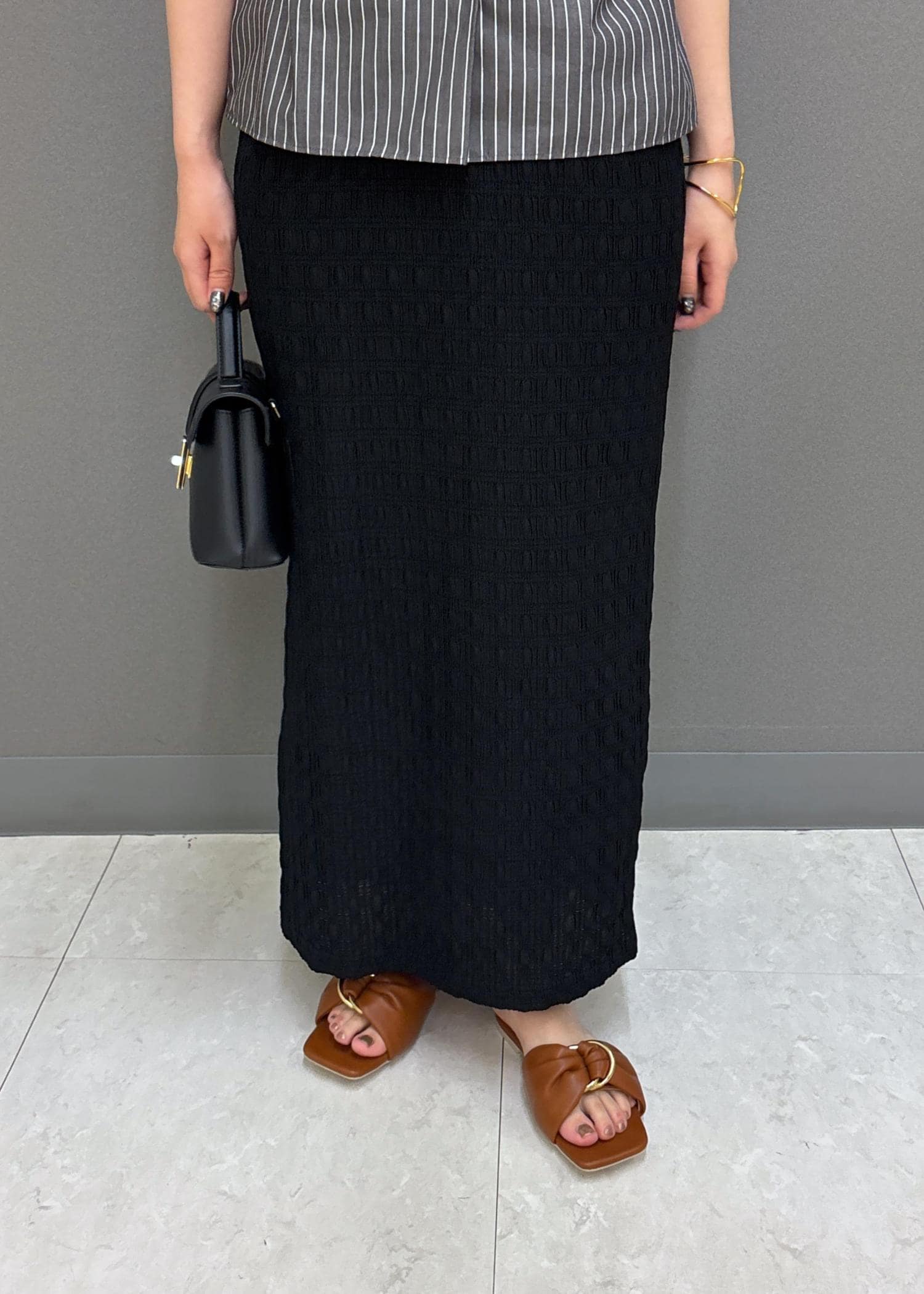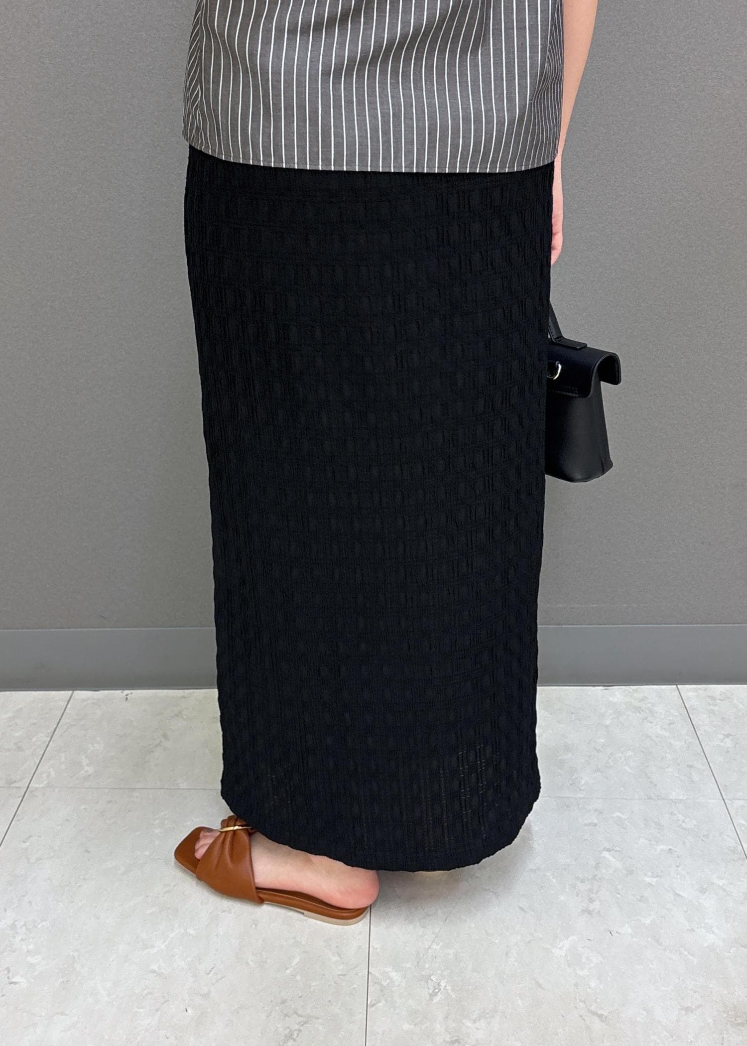 アウトレットVIS【新色追加】【接触冷感】膨れジャガードナロースカートブラック / F¥3,293レビュー160㎝だと足首が見える着丈でフラットシューズでも合わせられます!タイトスカートですが伸縮性があるのでピタッとしすぎず歩きやすかったです◎腰まわりが気になる骨格ですがラインを拾いにくく後ろも安心です、、!