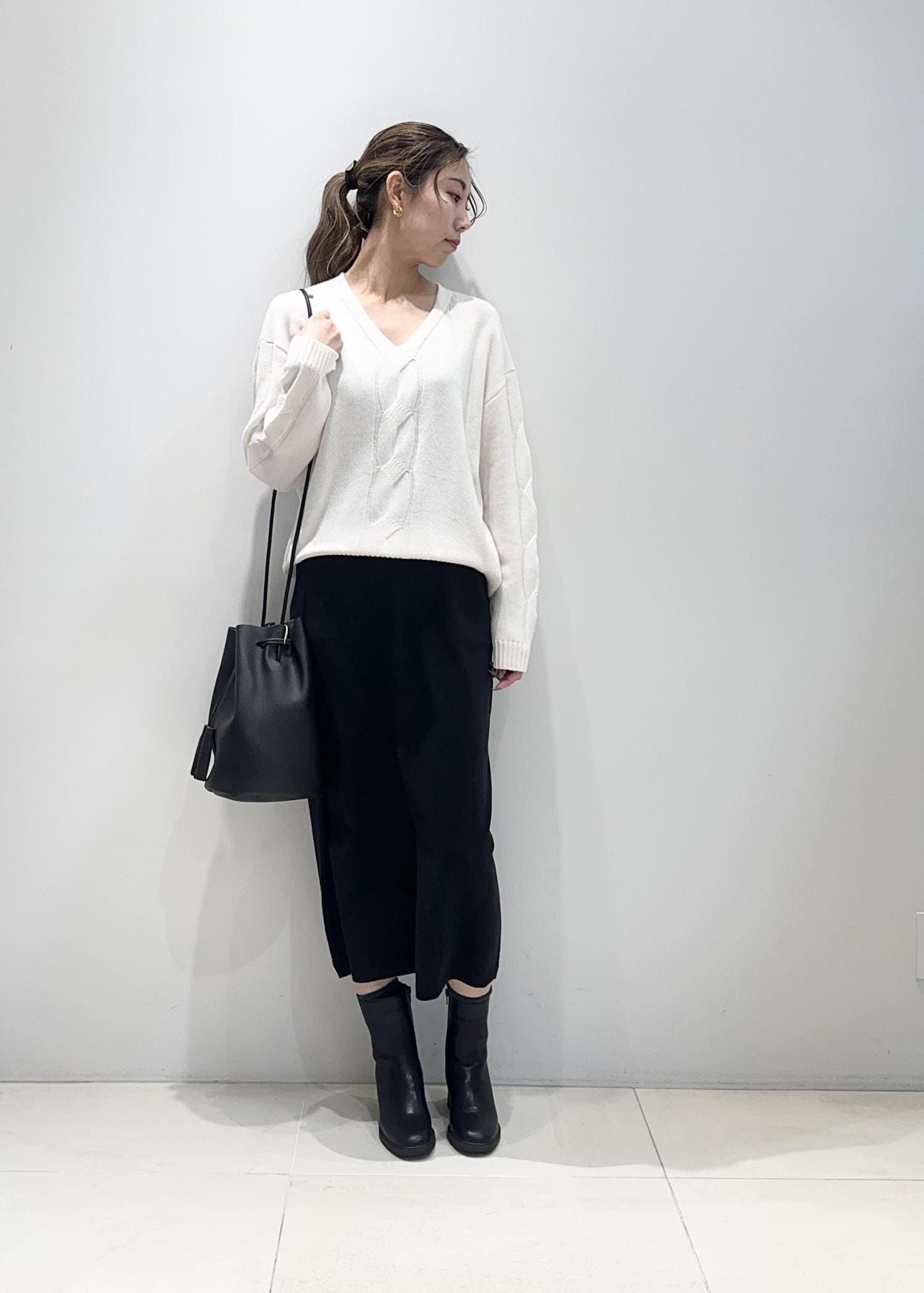 LE CERCLE par ropé【UVケア】タックVネックTシャツブラック / F¥1,595レビュー【着用感】