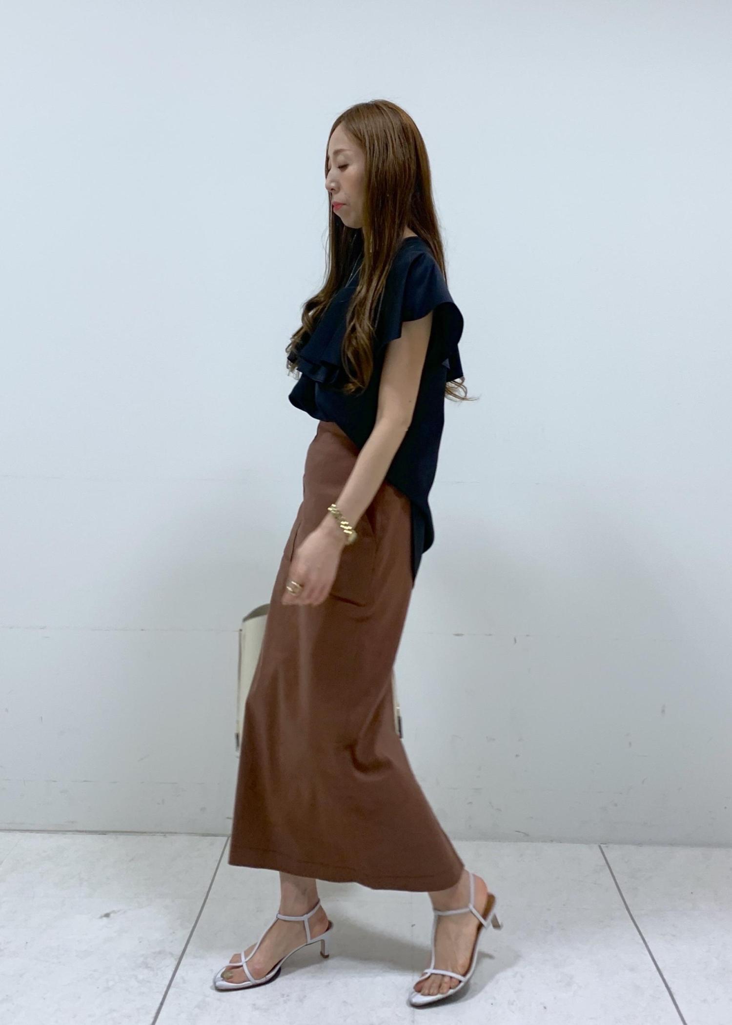 タイトスカートや、マニッシュなテーパードパンツに合わせるのもお勧めです。