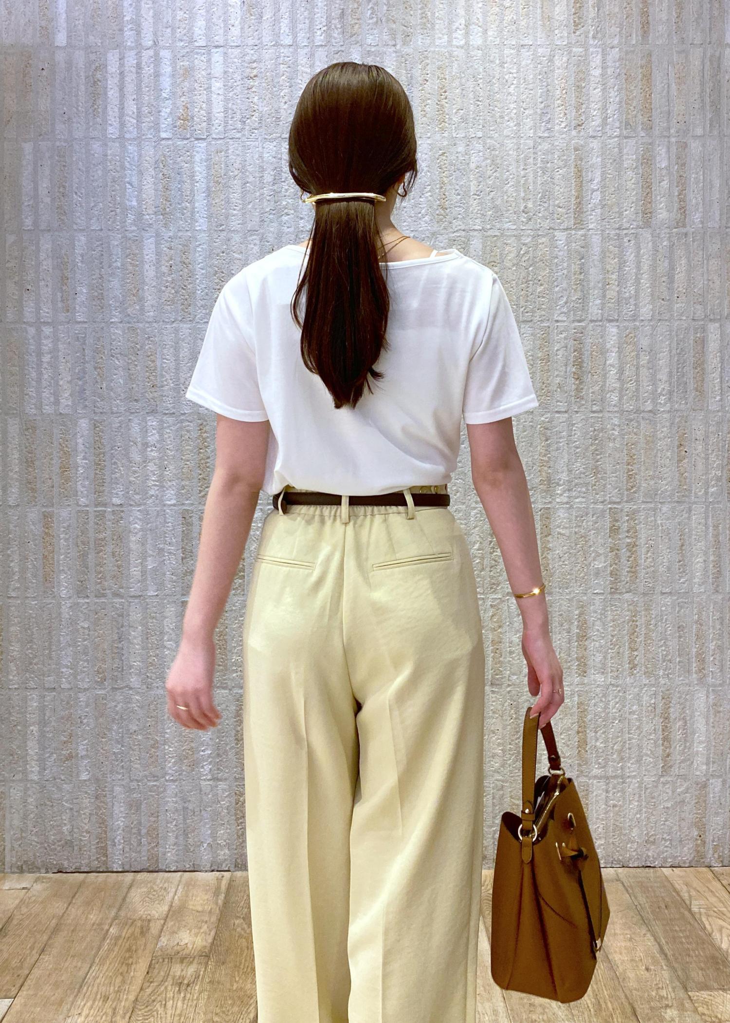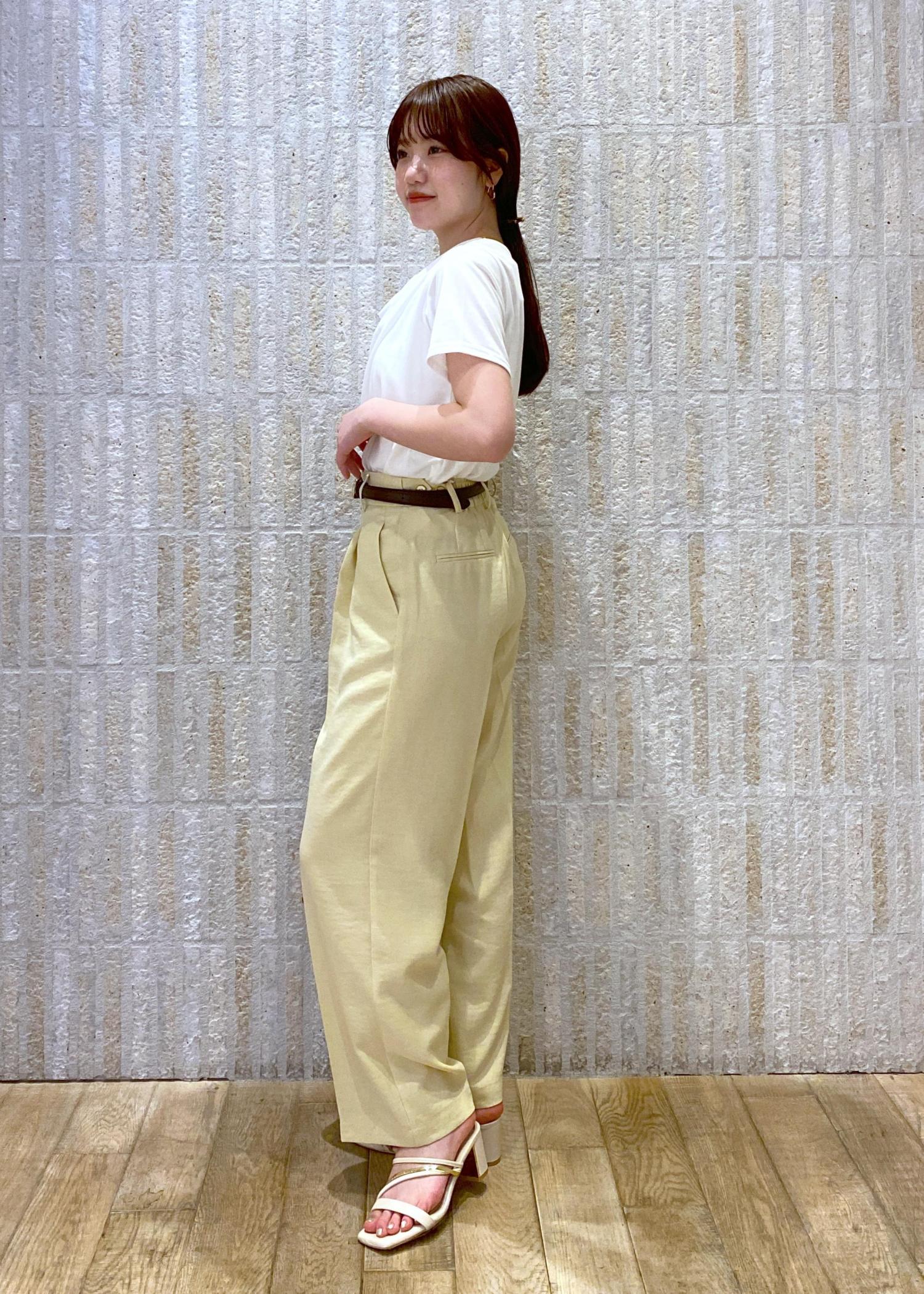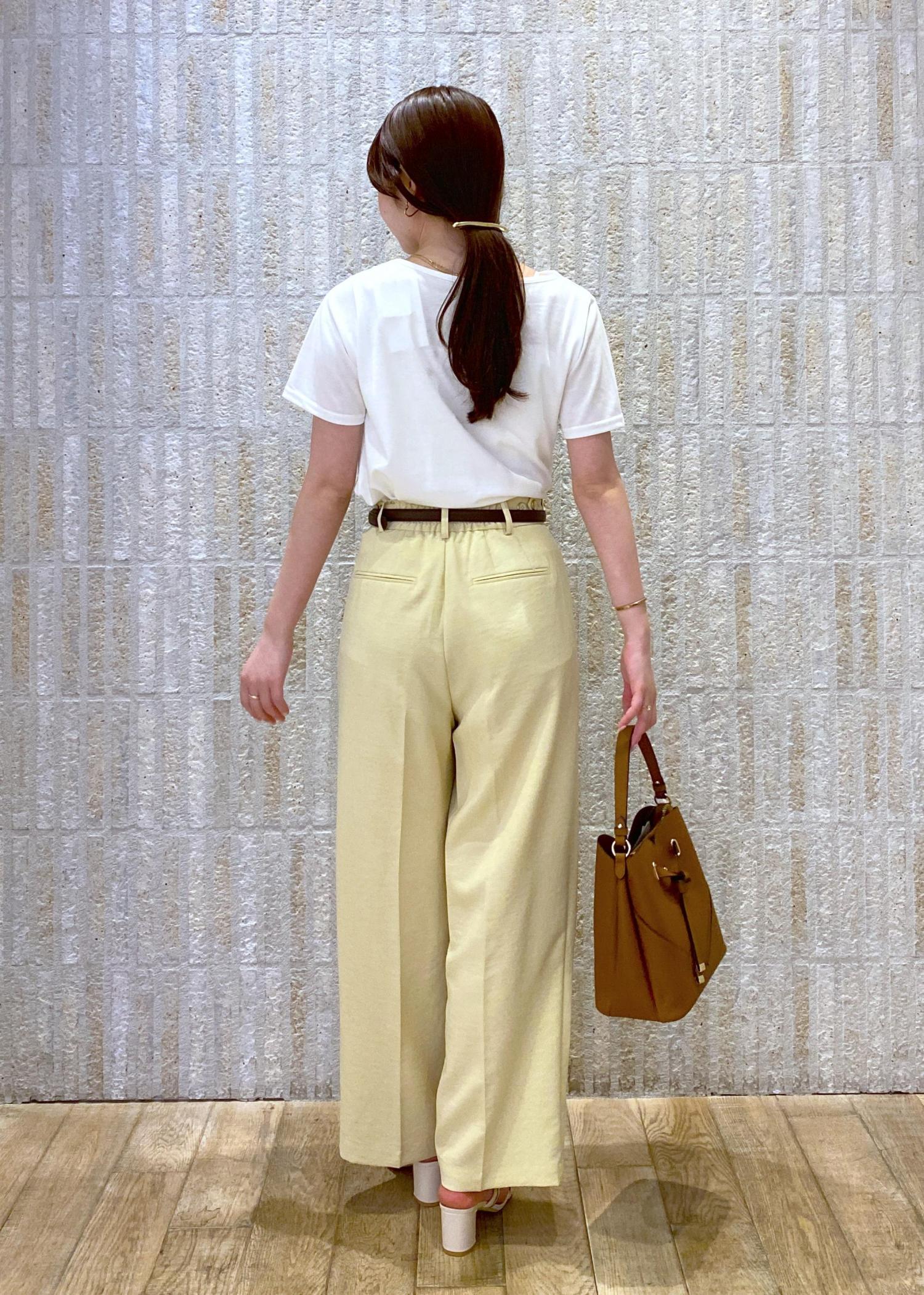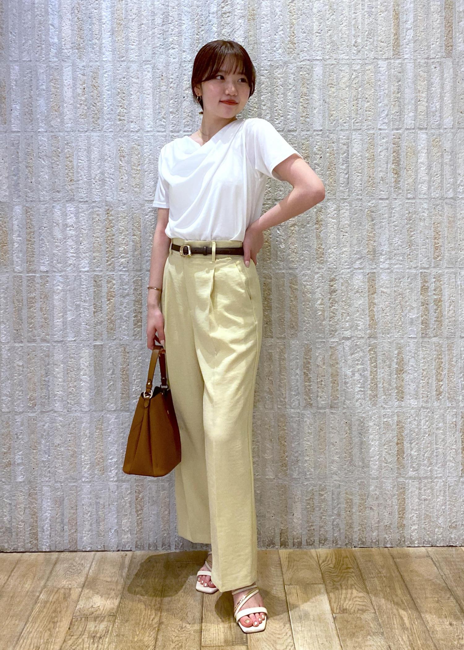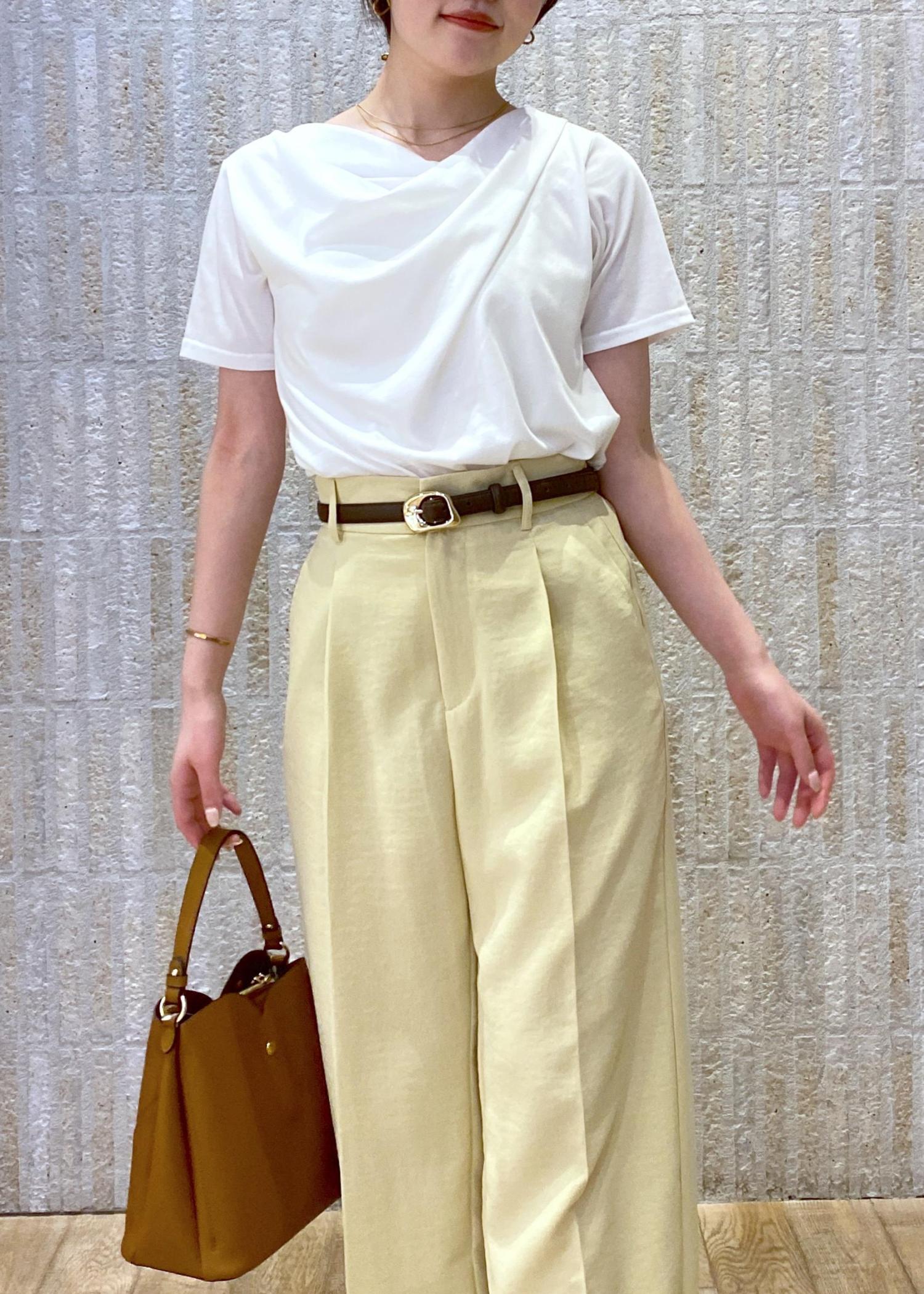 トレンド!ドレープデザインTシャツ×イエローパンツスタイル!