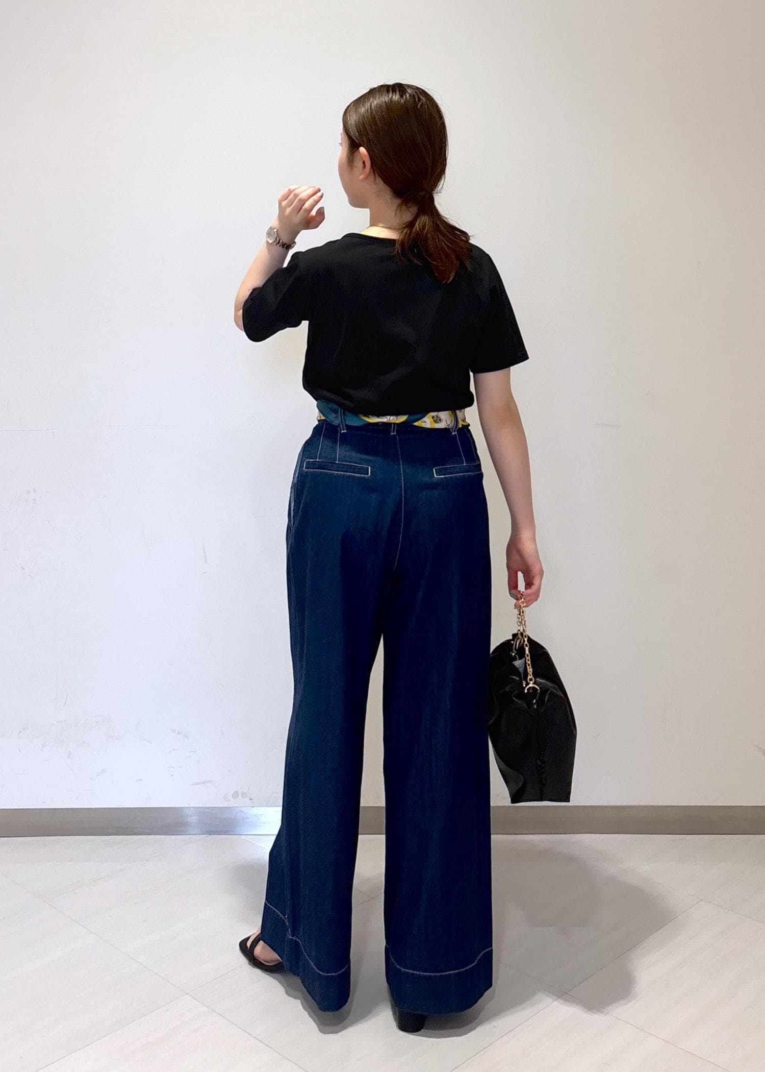 薄手のデニム生地の為、真夏でも重たくならずサラッと履いて頂けます。 -