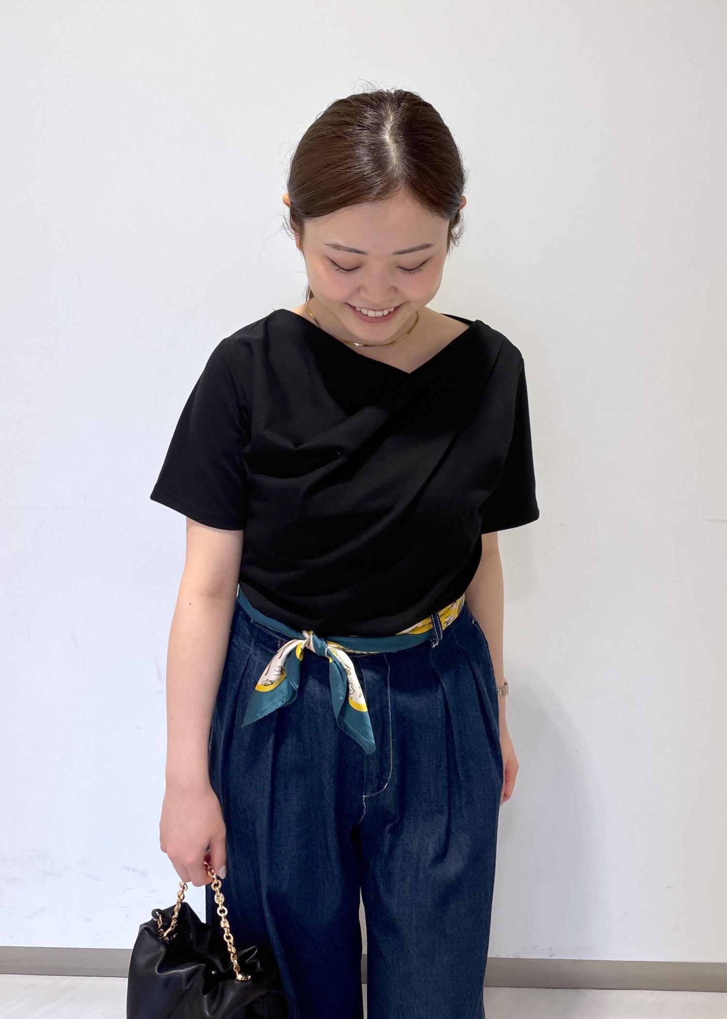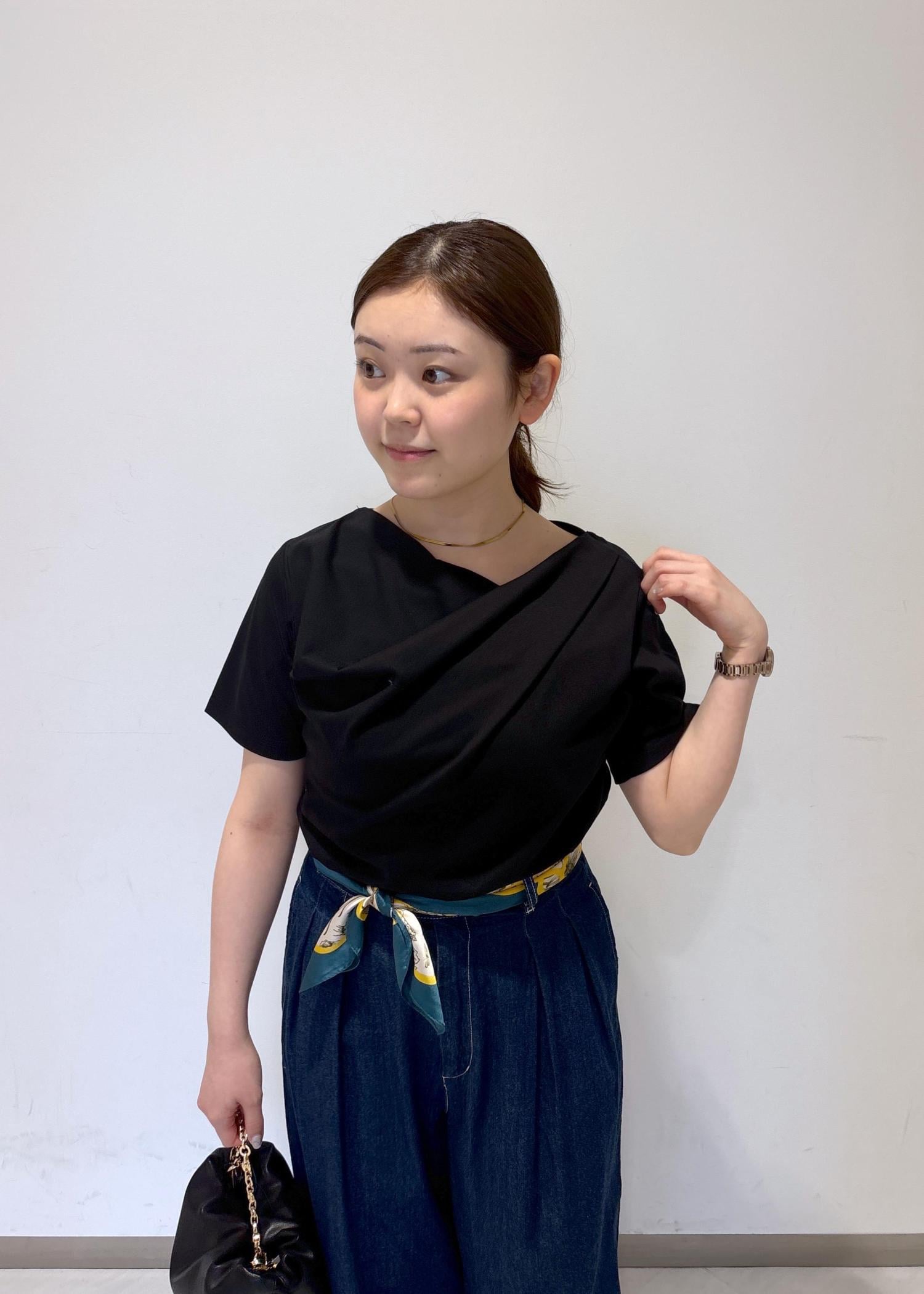 アウトレットVIS半袖ドレープカットソー/WEB限定カラーブラック / F¥2,764レビュー首元あたりは、デコルテがチラ見えする着用感