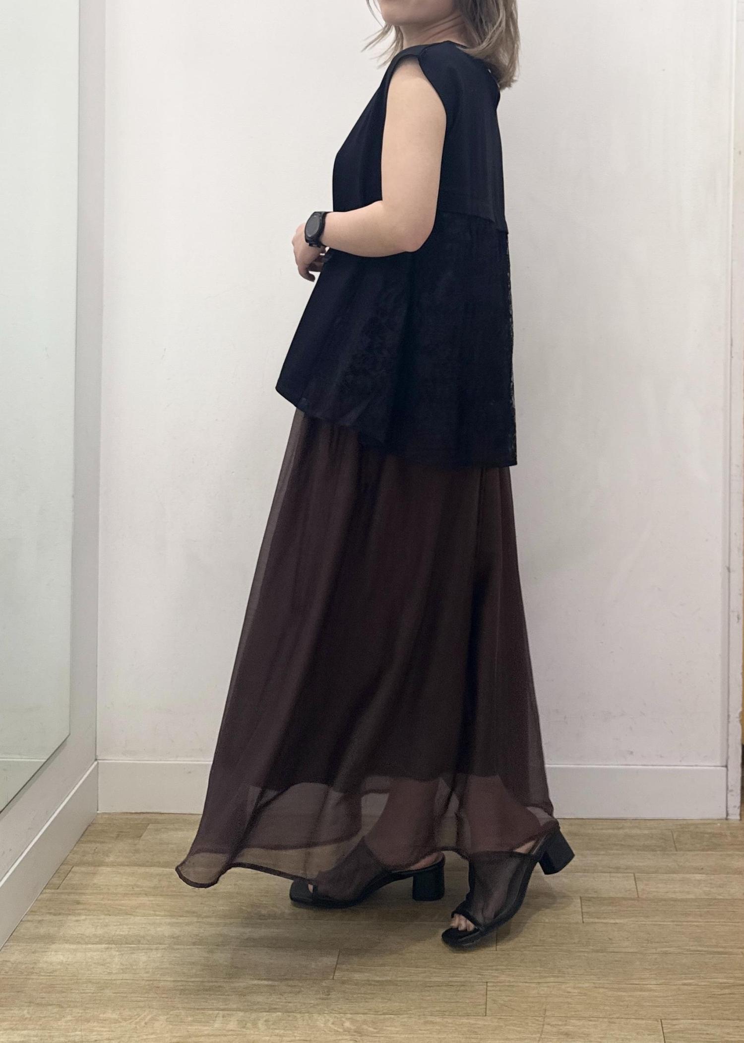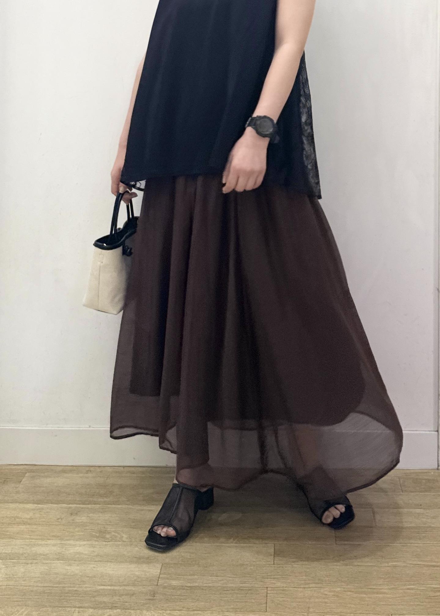 ROPÉ PICNICエアリーシアーギャザーロングスカートダークブラウン / 38¥6,490レビューウエストはオールゴムでゆったりとしたラクな穿き心地。